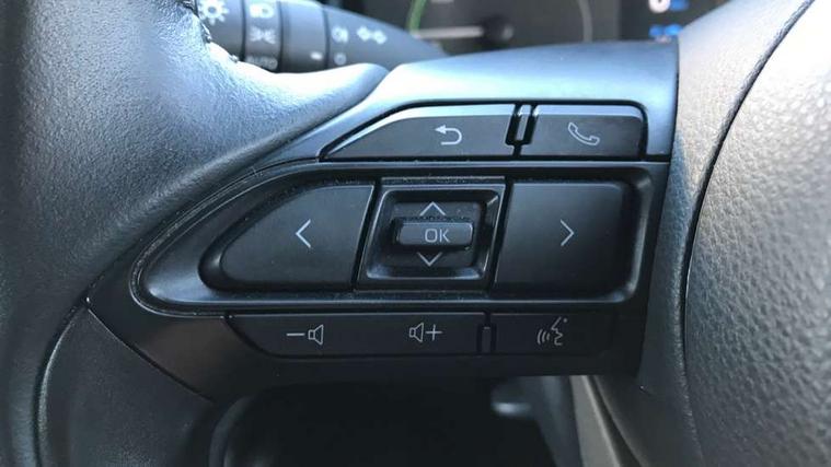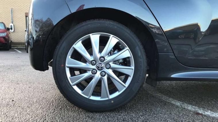 4.2" coloured TFT multi information display with analogue speedometer, Adaptive cruise control, Adjustable speed limit with speed warning, Bluetooth connectivity, E-call, Electric power steering, Hybrid energy display, Multi information display switches on steering wheel, Reversing camera, Smartphone integration with Apple CarPlay and Android auto, Tailgate, Voice recognition, Vehicle Stability Control (VSC), 4 speakers, 7" Multimedia display touch screen, Toyota Touch 2 with DAB, USB connection, Acoustic windscreen glass, Auto windscreen wipers, Automatic headlights, Body coloured door mirrors, Bulb indicators, Chequered front grille, Daytime running lights, Electric adjustable heated door mirrors, Follow me home headlights, Front auto power windows with anti jam protection, Halogen projector headlights, LED High mounted stop lamp, Manual headlight levelling, Rain sensor, Rear side wing doors, Rear spoiler, Rear wiper, Shark fin antenna, Turning signal integrated indicators in door mirrors, Variable front intermittent wipers, 3 adjustable rear headrests, 3 seat bench in 2nd row, 3 spoke leather steering wheel, 60/40 split folding rear seat, Active headrests, Adjustable boot height, Auto air conditioning, Coat hooks in rear grab handles, Cup holders (2 front & door), Data Communication Module (DCM) connected services, Fabric upholstery, Front armrest, Glovebox, Grey roof lining, Height adjustable driver's seat, Isofix seat fixing, Leather gearshift, Pollen filter, Shopping bag hooks, Single front passenger seat, Tilt/telescopic steering column, 3 point seatbelts on all rear seats, ABS+EBD+Brake assist, Electronic parking brake, Emergency brake light system (EBS), Front passenger airbag on/off switch, Front seatbelt reminder, Hill start assist control (HAC), Rear child proof door locks, Rear seat belt reminder, Supplemental Restraint System (SRS) 8 airbags: Driver & passenger's airbags, dual side curtain airbags, side impact airbags, front centre airbag, Toyota Safety Sense 2, Precollison + Night time Pedestrian & Cyclist Detection, Lane Trace Assist, Auto High Beam, Intelligent ACC & Road Sign Assist, Tyre pressure warning system, 2x Master key, Alarm/immobiliser, Remote powered central double locking doors, Soft touch instrument panel, Space saver spare wheel,