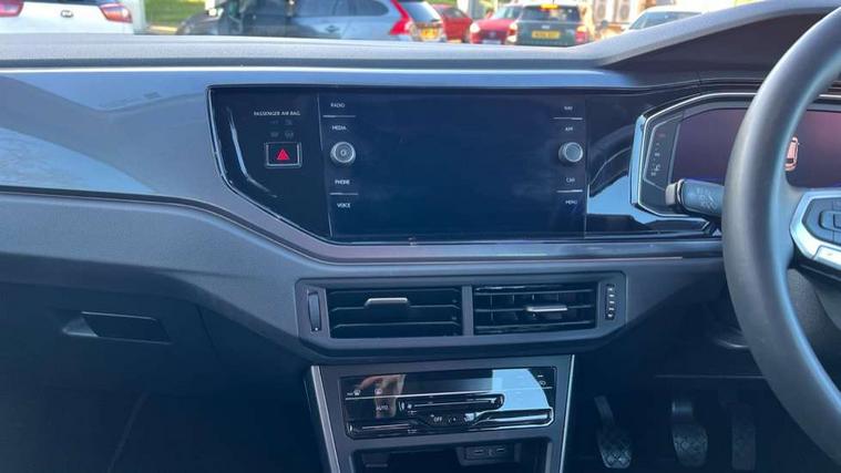 Adaptive cruise control without follow-to-stop and speed limiter, Bluetooth mobile phone interface, Digital Cockpit Pro with 10.25" Display, Driver alert system, Dynamic road sign display, Emergency call service, Power assisted speed sensitive steering, Preparation for We connect and We connect plus, Speedo and rev counter, electronic odometer, trip, service interval display and fuel gauge, Standard rear axle, Travel Assist - Lane keeping system and traffic jam assist, Travel assist including emergency assist, Trip computer, Warning signal and warning light for front and rear seatbelts not fastened, Washer fluid level indicator, Wireless app connect, Front wheel drive, Rear shock absorpion, Start-stop system with battery regeneration (recuperation - energy recovery during braking), DAB Digital radio, Diversity antenna for FM reception, Front and rear 6 speakers, Automatic dimming interior rear view mirror, Automatic headlights, Body colour door handles, Body coloured bumpers and radiator grille with chrome trims, Electric front windows, Heat insulating darkened glass in side and rear windows, Heat insulating glass windscreen, LED separate daytime running lights with coming/leaving home function, Power folding adjustable/heated exterior mirrors and front passenger exterior mirror lowering function, Rain sensor, Rear electric windows, Rear fog light, Rear side wing doors, Rear windscreen washer and wiper with interval delay, Third brake light, 12V power socket in centre console, 2 USB-C ports in the front, 2 USB-C charging sockets on the center console in the rear, 3 rear head restraints, 60/40 split folding rear seat and rear seat bench not split, Air care climatronic air conditoning system with active combination filter and 2-zone temperature control, Ambient lighting, Ceramique headliner, Chrome plated radiator grille inserts, air vent surrounds and light switch surrounds, Door and side trim panel, Driver and front passenger seat height adjustment, Driver/passenger sunvisors with illuminated vanity mirrors, Front + rear carpet mats, Front centre armrest, Front footwell illumination, Front seat backrest storage pockets, Front sports comfort seats, Handbrake lever handle in leather, Isofix child seat preparation easy-fit (for two outer rear seats, and front passenger seat) compatible with I-size, Leather trimmed gear knob, LED interior light with switch off delay and dimmer, 2 reading lights front and rear, Luggage compartment cover, Luggage compartment floor, Luggage compartment lighting, Lumbar adjustment for front seats, Multifunction steering wheel, Single front passenger seat, Standard pedal cluster, IQ LED matrix headlights pack - Polo, Light and vision pack - Polo, 3 point height adj front seatbelts + pretensioners, 3x3 point rear seatbelts, ABS, Driver and front passenger airbag with front passenger airbag deactivation, Drivers and front passengers safety optimised head restraints, ESC (Electronic stability control) + EDL (Electronic Differntial lock) and ASR (Traction control), Extended and predictive pedestrian/ cyclist protection, Front curtain and side airbags with center airbag, Front disc brakes, Hill hold control, Manual child lock in rear doors, Rear drum brakes, Single tone horn, Tyre pressure loss indicator, Alarm with interior protection, Anti-theft alarm system with interior monitoring, backup horn, and towing protection, Anti-theft wheel bolts, Electronic engine immobiliser, Chrome applications on rotary light, mirror adjustment, window regulator switches, outlet with frame in black, Deep iron gloss decorative inserts in dash and front door panels, Low rolling resistance tyres,