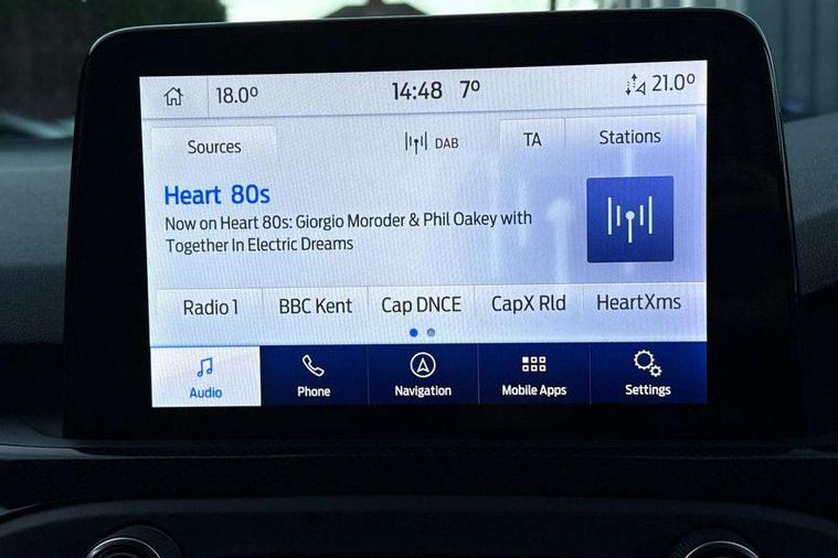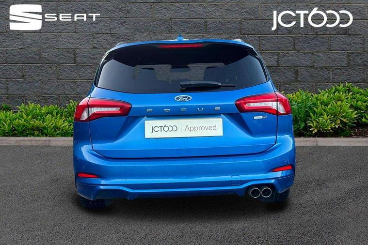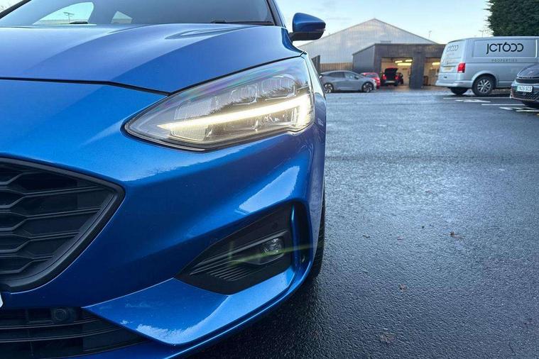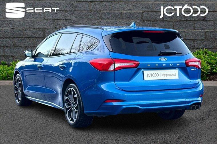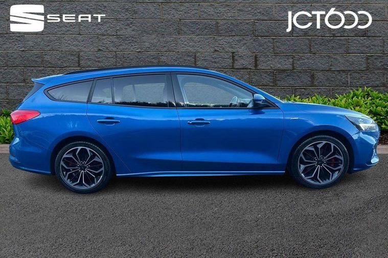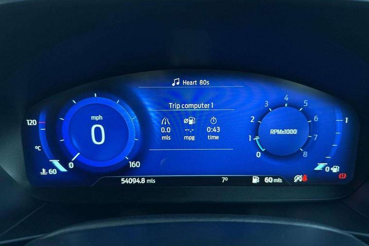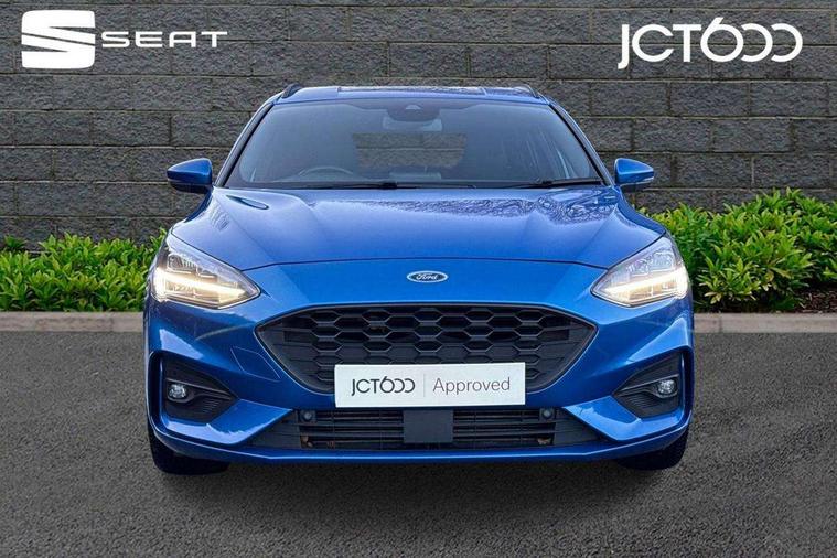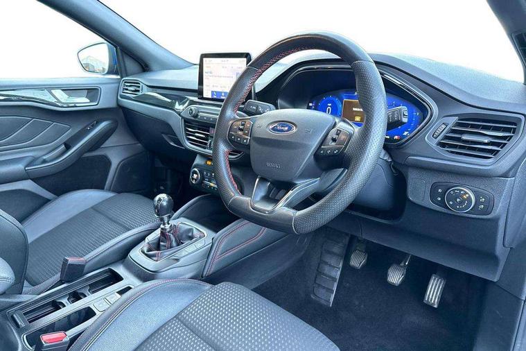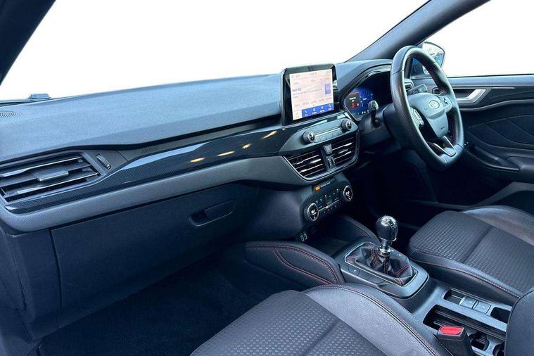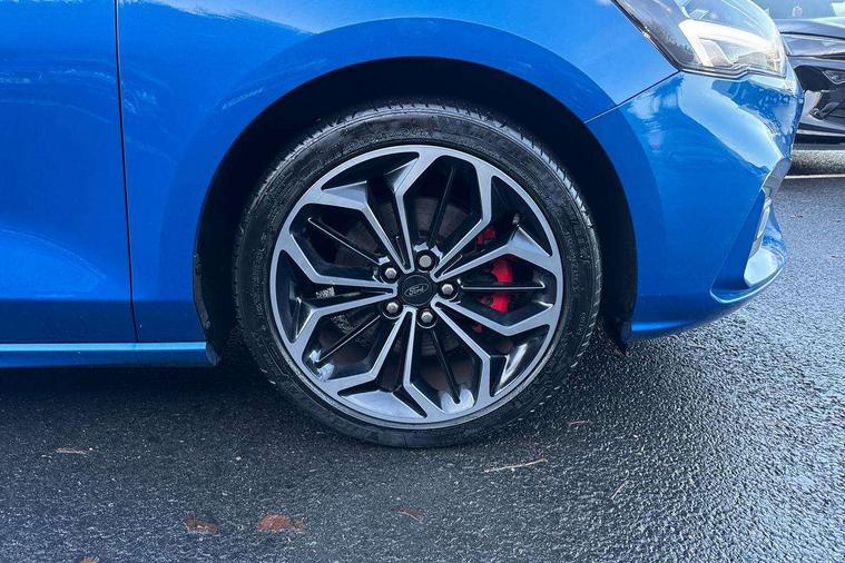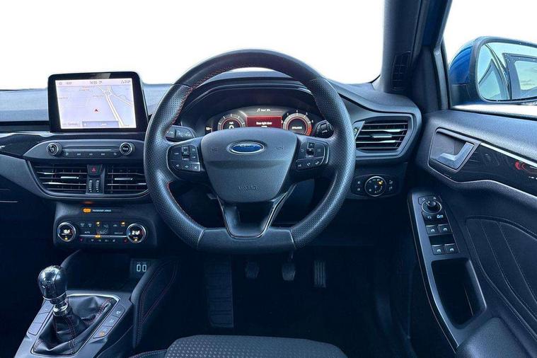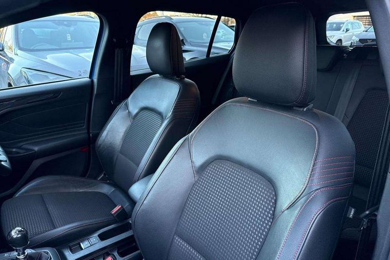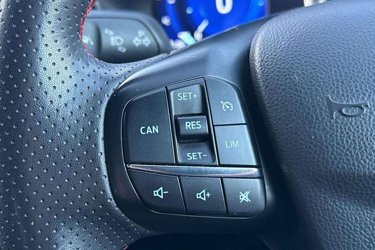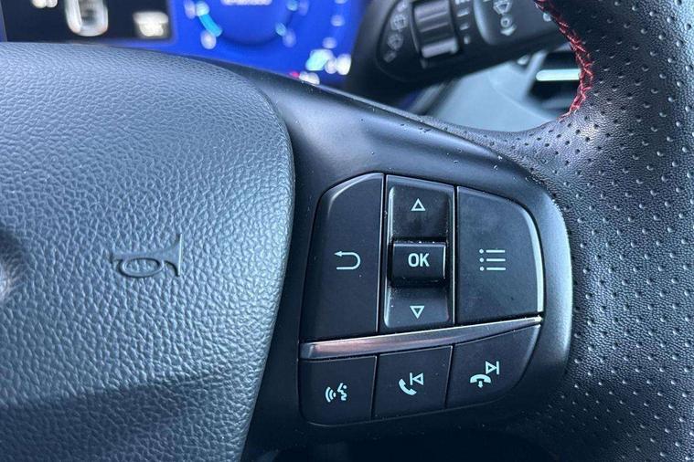 12.3" Digital instrument cluster, Bluetooth system, Digital clock, E-call, Easy fuel capless refuelling system, Eco mode, Ford SYNC 3 navigation with 8" TFT touchscreen, DAB radio and app link Android auto/Apple carplay, Intelligent speed assist, Lane keeping system - lane keeping alert and lane keeping aid, PAS, Selectable drive mode, Trip computer, Sports tuned suspension, 2 USB ports, Aux input, Auto dimming rear view mirror, Auto headlamps (on/off), Automatic rain sensing wipers, Body colour large rear spoiler, Body coloured bumpers, Body coloured door handles, Body coloured electrically operated and heated door mirrors with side indicators, Electrically operated front and rear windows with one touch opening and closing, Front variable intermittent wipers with electric wash, Heated rear window, LED daytime running lamp, Polished twin tailpipe, Power folding door mirrors with puddle lights, Quickclear heated windscreen, Rear privacy glass, Rear side wing doors, Roof rails, ST-Line upper and lower grille with full body styling kit and wing badges, Tailgate wash/wipe, Third brake light, Unique door and instrument panel inserts, 2nd Load floor, 3 seat bench in 2nd row, 3 spoke flat bottomed Sensico steering wheel with red stitching, 6 way power adjustable driver seat, Aluminium gear knob, Auto fold rear seats, Dark headliner, Driver's lumbar support, Dual zone electronic air temperature control, Front and rear floor mats with red stitching, Heated driver and front passenger seats, Heating for Sensico steering wheel, Height adjustable front headrests, Isofix child seat preparation, Reach + rake adjustable steering column, Rear centre headrest, Sensico premium upholstery, Single front passenger seat, Soft console knee pads with red stitching, 3x3 point rear seatbelts, ABS+Electronic Brake force Distribution, Auto hold function, Driver airbag, Electronic parking brake, Electronic stability control, Front and rear seatbelt reminder, Front inertia reel height adjustable seatbelts with pre-tensioners, Front passenger airbag, Front side airbags, Hill start assist, Passenger airbag deactivate switch, Post collision braking, Pre collision assist with autonomous emergency braking and pedestrian/cyclist detection, Remote/power child rear door locks, Side curtain airbags, Three rear inertia reel lap/diagonal seatbelts, Tyre pressure monitoring system, Ford keyfree system with Keyless entry and keyless start/sleep mode key fob, MyKey system, Remote central locking & engine immobiliser, Thatcham category 1 alarm, 18" 5x2 spoke gloss black machined finish alloy wheels, Mini steel spare wheel,