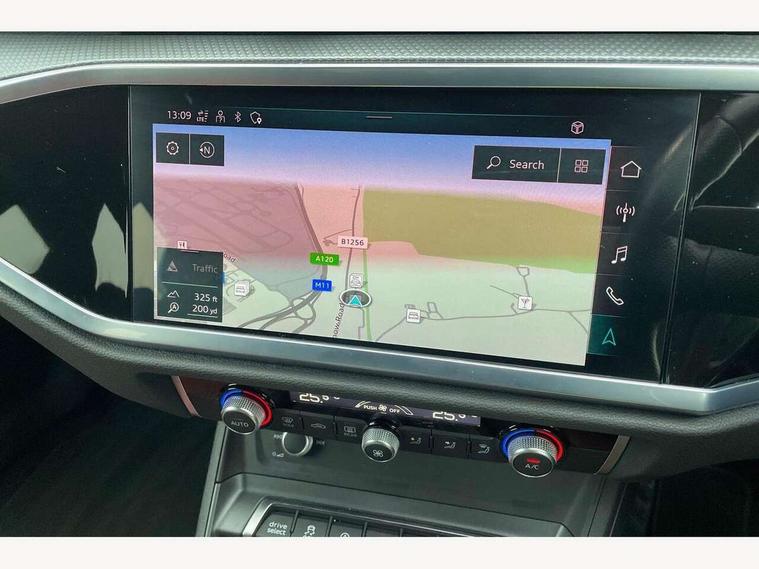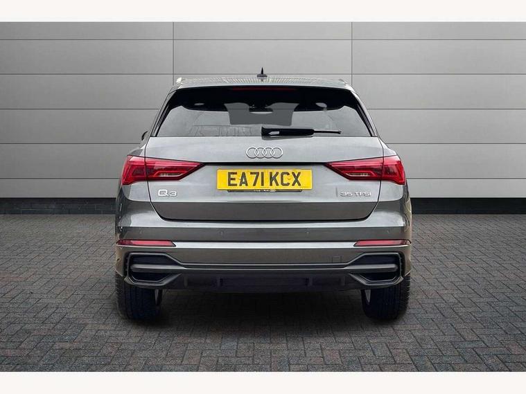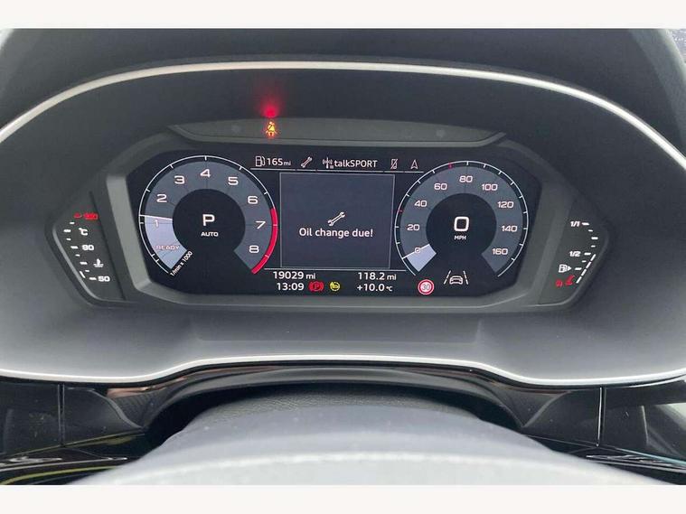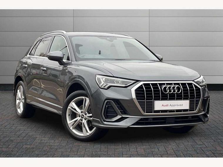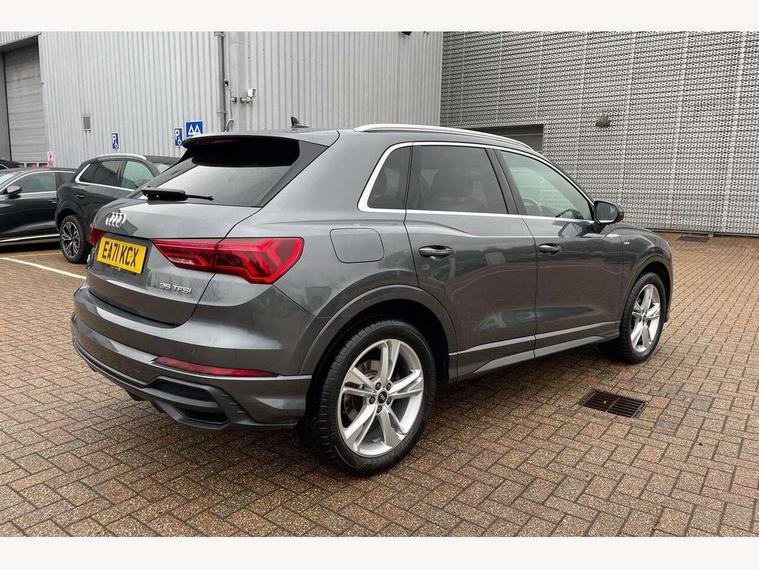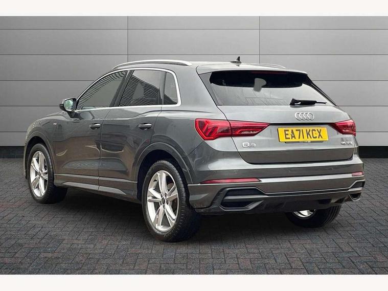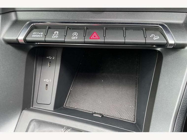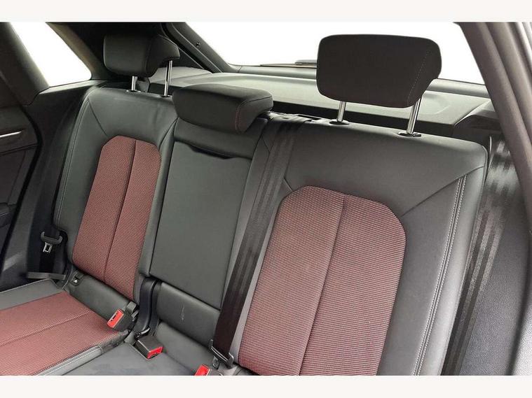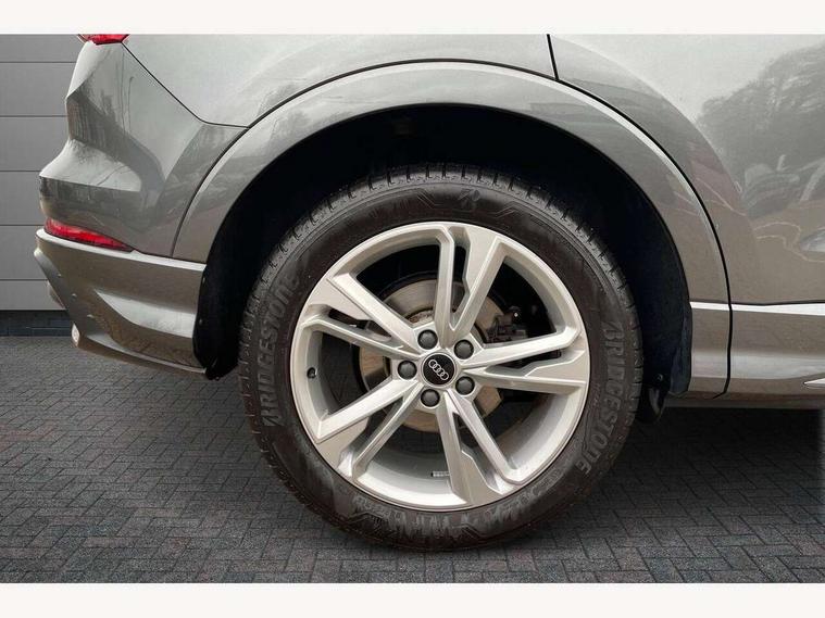 Amazon alexa Integration, Audi connect safety and service (e-call), Audi drive select, Audi lane departure warning, Audi Virtual Cockpit - 10.25" display, Bluetooth interface, Camera based traffic sign recognition, MMI Navigation Plus with high resolution 10.1 inch touchscreen colour display, Power operated tailgate, Progressive steering, Service interval indicator, Smartphone interface includes wireless Apple carplay/Android Auto, Start stop system with recuperation, Voice control system with natural language interaction, 48V Mild hybrid technology, Sports suspension, 2 USB-C ports with charge and data functions, 6 passive loudspeakers, DAB digital radio module, Acoustic windscreen, Aluminium roof rails, Aluminium window trim, Auto dimming frameless rear view mirror, Body coloured bumpers, Electrically folding, adjustable and heated door mirrors with integrated LED side indicators and kerb view function for passenger side, Front and rear electric windows, Front fog lights, Front side air inlets in matt platinum grey, Front spoiler blade in matt platinum grey, Grille vertical bars in aluminium silver/Matt, High gloss black finish B and C pillars, LED headlights with LED daytime running lights and dynamic rear indicator, LED rear lights, Privacy glass dark tinted rear and rear-side windows (from B-pillar backwards), Rain and light sensors, Rear diffuser strip in matt titanium black, S line badges on front wings, S Line front and rear bumpers, Side skirt insert in matt Platinium grey, Silver chrome grille surround, Titanium black radiator grille, 12V socket in rear centre console, 40:20:40 folding with manual adjustment for 60:40 forwards/backwards position and backrest angle, Adjustable rear seat bench/backrest with centre armrest and cupholder, Black cloth headlining, Dual zone electronic climate control, Front and rear black floor mats with contrast stitching in rock grey, Front and rear headrests, Front and rear roof module including reading lights, Front centre armrest, Glove compartment lighting, Height and reach adjustable steering wheel, Illuminated door sill trims with S logo, ISOFIX child seat mounting for front passenger with airbag deactivation and outer rear seat including top tether attachment point for outer rear seats, Luggage compartment light, Manual front seats with height adjustment, Perforated leather gearknob, Stainless steel luggage compartment sill finisher, Stainless steel pedals, Non smoking pack - Q3, 3x3 point rear seatbelts, 6 airbags - Driver, front passenger, curtain and side windows, Audi pre-sense front with pedestrain and cyclist recognition, Electrically operated child locks on rear doors, Electromechanical parking brake, Electronic stabilisation control including ABS, ASR and EDL, Hill descent control, Hill hold assist, Pre sense basic, Seatbelt monitoring, Tyre pressure warning, Warning triangle and first aid kit, Anti theft alarm, Anti theft wheel bolts, Remote central locking, Dark matt brushed aluminium inlay, Detail dashboard around MMI touch colour display in glass look, black with surround in aluminium look, Leatherette door armrest, Tool kit, Tyre repair kit,