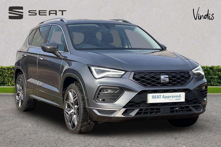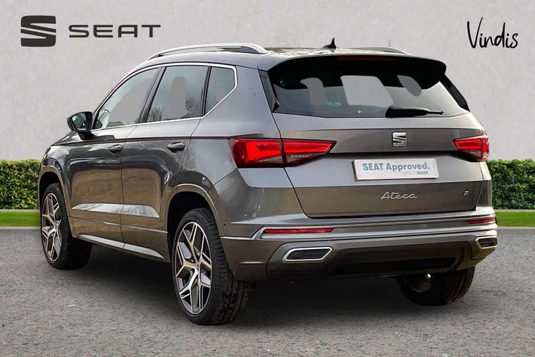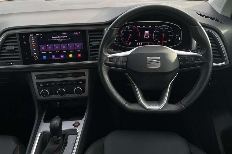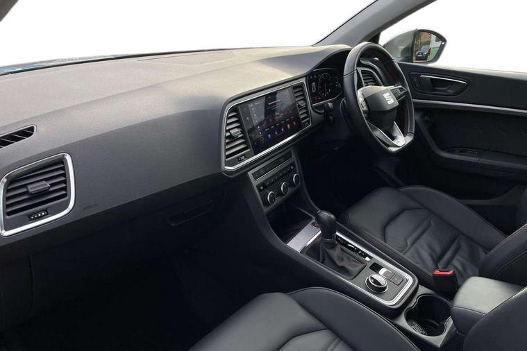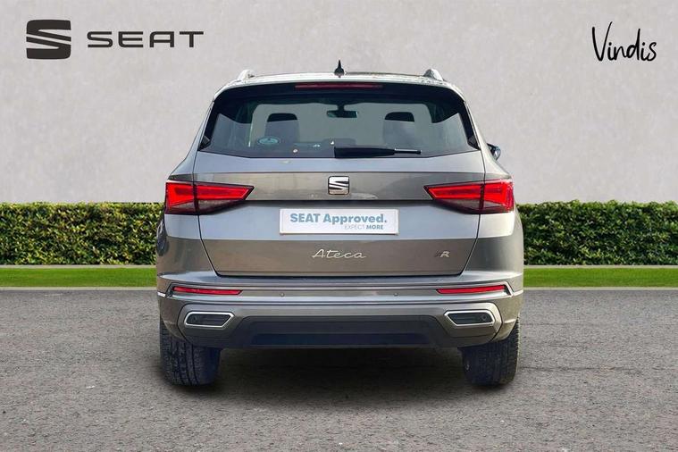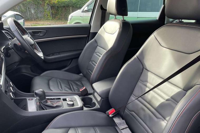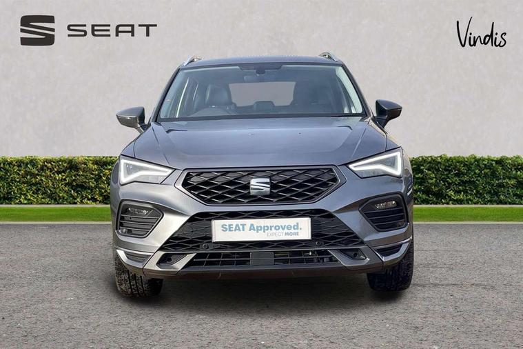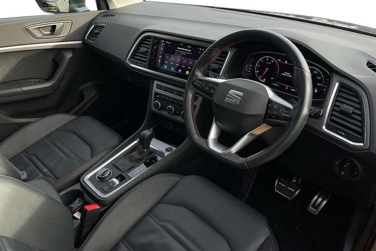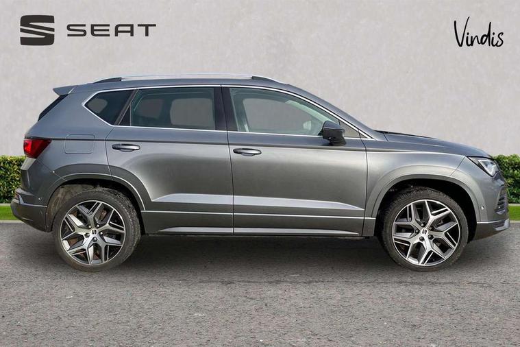 10" Digital cockpit, Cruise control system with speed limiter, E-call, Outside temperature gauge, Progressive power assisted steering, SEAT drive profile with driving experience button - Normal, Sport, Eco and Individual mode, gearshift, steering and throttle response, Self parking functionality (includes front and rear parking sensors), Trip computer, Wireless full link smartphone integration, Wireless phone charger, Steering wheel mounted audio/phone controls, Body colour bumpers, Body coloured wheel arch surrounds, Chrome front grille frame, Chrome roof rails, Chrome side window trim, Dark tinted rear windows, Daytime running lights, Door mirrors with welcome light silhouette, Dynamic headlight range control with self adjusting whilst driving, Electric adjustable/heated/folding door mirrors, Front and rear electric windows, Full LED headlamps with lens and LED front fog lamps with cornering function, Illuminated aluminium front door sill, LED rear tail lights with dynamic indicators, Rear fog lights, Rear side wing doors, Rear spoiler, Rear wash/wipe, Simulated exhaust pipes in chrome frame, 12V socket in front, 3 seat bench in 2nd row, 60/40 split folding rear seat, Aluminium pedals, Dual zone climate control, Electric adjustable driver seat with lumbar adjustment, Front and rear head restraints, Front centre armrest, Front seat back storage pockets, Heated front seats, Height adjustable passenger seats with lumbar adjustment, ISOFIX points in outer rear seats with top tether anchorage points, Leather steering wheel and gear knob, Leather upholstery with front comfort seats, Rear armrest and easy back seat release mechanism from boot, Single front passenger seat, Steering wheel mounted gearshift paddles, Convenience pack - Ateca, Interior lighting pack - Ateca, Navigation system pack with DAB - Ateca, 3x3 point rear seatbelts, ABS, Traction control system (TCS), Electronic stability control (ESC) and Electronic differential lock system (XDS), Airbags - Driver and front passenger airbag with deactivation, front side, two curtain and driver's knee airbags, Electric parking brake with auto hold function, Front and rear seatbelt reminder, Front assist with autonomous emergency braking, Hill hold control, Manual rear child locks, Tiredness recognition system, Traction control, Tyre pressure monitoring system, Alarm, Keyless entry, Locking wheel bolts, Chrome interior detailing, 19" Exclusive machined alloy wheels with decorative inserts 36/7 in cosmo grey,