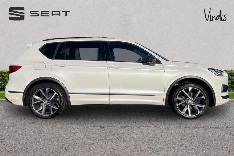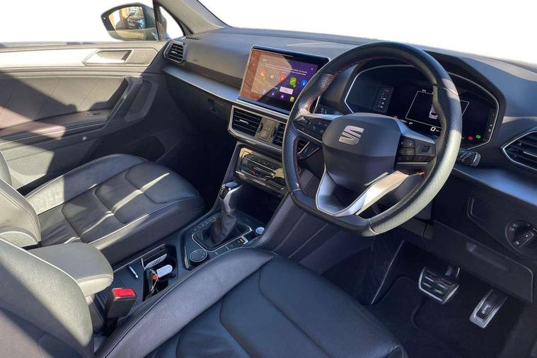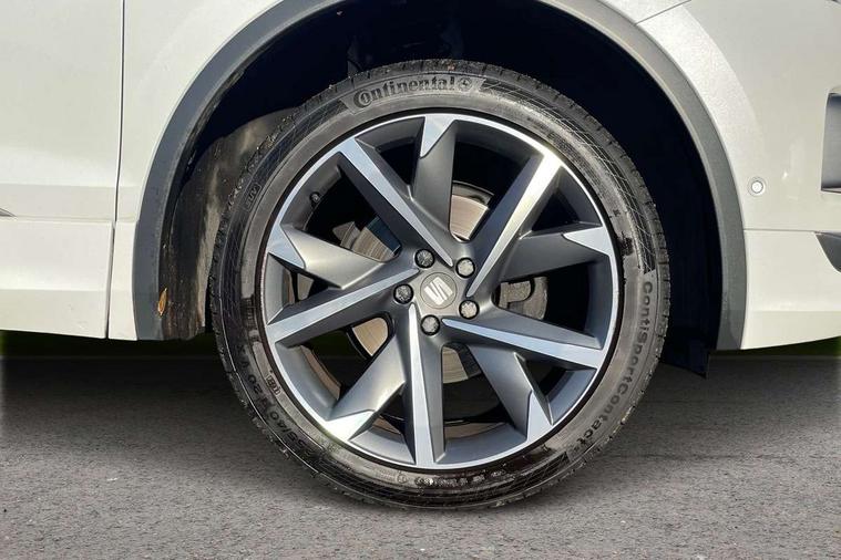 'Lights On' Reminder warning buzzer, 10.25" digital cockpit with multi function display, Adaptive cruise control with speed limiter, Bluetooth audio streaming with handsfree system, Digital clock, e-Call (emergency call), Front assist city emergency braking and pedestrian protection, Full Link Wireless Smartphone Integration with Mirror Link, Apple Car Play, Lane assist, Low fuel warning light, Outside temperature gauge, Power assist steering, RPM counter, Seat connect with safety, service, remote and online, SEAT Drive profile-4 different modes, progressive steering, 4Drive versions with off-road/snow, steering response, throttle response, gear shifts mode, Self parking functionality (includes front and rear parking sensors), Tailgate, Top view camera, Trip computer, Wash water level indicator, Comfort suspension, Sports rear shock absorption, XDS electronic differential lock, Navigation system with 9.2" colour touchscreen with proximity sensor, 3D Map display, DAB, AM/FM Radio, 3 USB (type C), Aux-in, 8 speakers, SD card, Steering wheel mounted audio/telephone controls, USB (type C) cable for Apple and Android compatibility, Auto dimming rear view mirror, Auto headlights with automatic coming and leaving home function, Automatic headlight adjustment, Black door mirrors, Black roof rails, Black window trims, Body coloured side skirts, Coast to coast lighting, Dark tinted rear windows, Dynamic rear indicators, Electric adjustable/heated/folding door mirrors with memory, Electric front/rear windows, Exterior black mouldings, Front grille frame in black, Front halogen fog lights with cornering function, Fuel door linked to central locking, Full LED headlights with LED rear lights, Illuminated aluminium front door sill with trim logo, LED daytime running lights, LED licence plate lighting, LED third brake light, Rain sensing wipers, Rear fog lights, Rear roof spoiler, Rear side wing doors, Rear wash/wipe, Sports bumpers, Twin exhaust pipes, Welcome lighting, 2 individual 3rd row seats, 3 seat bench in 2nd row, 3 zone climate control, Ambient spot lighting and front footwell illumination, Black interior roof, Centre armrest in front with air outlet in rear, Driver and passenger sunvisor with covered and illuminated mirror, Driver's electric lumbar adjustment, Easy fold rear seat system - second and third row, Electric driver's seat with memory, Forward and backward adjustable seats 2nd row, Four cargo rings in the boot, Front bucket seats, Front cupholders, Front integrated headrests, Front passenger seat lumbar adjustment, Front seat back storage pockets, Gear shift indicator, Heated front and outer rear seats, Height adjustable passenger seat, Illuminated boot, Illuminated glovebox, Instrument lighting with brightness control, ISOFIX points in outer 2nd row seats and front passenger seat with top tether anchorage points, Leather gear knob, Leather upholstery, Leather wrapped multifunction steering wheel, Luggage compartment floor with split function, Multicolour ambient lighting in front and rear door panels + LED lights in interior door handles, Rear armrest and easy back seat release mechanism from boot, Rear head restraints, Red stitching on front armrest, Single front passenger seat, Sliding boot cover, Sports front seats, Sports steering wheel, Three 12V sockets, 3x3 point rear seatbelts, ABS, Driver/front passenger airbag, Drivers knee airbag, Electronic parking brake with auto hold, Electronic stability control, Front passenger airbag deactivation, Front side airbags, Hill hold control, Manual rear child locks, Seatbelt reminders for all seats, Tiredness recognition system, Traction control, Two curtain airbags, Tyre pressure monitoring system, Alarm, Keyless enter and go with electric tailgate with virtual pedal, Locking wheel bolts, Power locking and remote control with two foldable keys and opening boot selector, Chrome interior detailing - door and dashboard decorative inserts, 20" 'Cosmo' Grey machined alloys wheels, Tool kit,