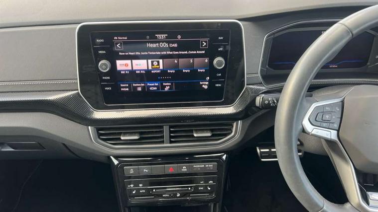'Lights On' Reminder warning buzzer, 10.25" Digital cockpit pro, Adaptive cruise control including front assist, forward collision warning, autonomous emergency braking, speed limiter, Advanced driver attention and drowsiness monitor, Blind spot monitoring, Car information display, Driver profile selection including ECO function, Dynamic road sign display, E-Sim card for online connectivity, eCall emergency call system, Front and rear parking sensors, Low washer fluid warning light, Multifunction computer with visual gear change recommendation for fuel consumption, Multifunction front facing camera for distance control, Operating permit alteration, Power assisted steering, Preparation for navigation system with media and internet package, Preparation for We connect and We connect plus, Semi-automated driving assistance, travel assist including lane keeping system Lane Assist and emergency assisst, Speedo, rev counter, electronic odometer, trip, service interval display, exterior temperature and fuel gauge, Warning sound and light for doors and tailgate open, Warning sound and light for front seatbelts unfastened, Wireless Car net app connect with Apple CarPlay, combined functionality of Apple CarPlay/Android Auto and MirrorLink, Misfuel prevention device, Start-stop system with battery regeneration (recuperation - energy recovery during braking), 2 USB C ports in front, 2 USB charging sockets on the centre console in the rear charging capacity upto 45W, Diversity antenna for FM reception, Music playback - MP3, WMA and AAC files, Radio, Automatic dimming interior rear view mirror, Automatic hazard lights activation under emergency braking, Automatic headlight control with LED separate daytime running light and coming home and leaving home feature, Black roof rails, Body colour door handles, Body colour door mirrors, Body coloured bumpers, Dynamic headlight range control with self adjusting whilst driving, Electric folding door mirror, adjustable, heated with front passenger exterior mirror lowering function, Exterior mirrors convex on the left and aspherical on the right, Front and rear electric windows, Front door sill protectors with R-Line logo, Galvanised body, Heat insulating and laminated safety glass windshield, Heat insulating darkened glass in side and rear windows, High Beam Assist, automatic sensing for switching between dipped and main beam, LED rear combination lights, LED third brake light, Lower door sills and door pillars in black, Rain sensor, Rear fog light on one side, reversing light on both sides, Rear side wing doors, Rear tinted glass 65% approx light absorbing from B pillar backwards, Rear window aerial, Rear window wiper with intermittent control, Reflectors in all doors, Scuff plates, Tailgate with integrated roof spoiler, 12V Accessory socket in centre console, 2 Front and rear reading lights incorporating LED technology, 3 rear head restraints, 3 seat bench in 2nd row, 60/40 split folding rear seat backrest, Air care climatronic 2 zone air conditioning system, Ambient lighting, Brushed stainless steel pedals, Chrome plated radiator grille inserts, air vent surrounds and light switch surrounds, Cloth upholstery, Comfort front sport seats, Door and side trim panel, Drawer under drivers seat, Driver and front passenger sunvisor with vanity mirror, Dust and pollen filter, Front + rear carpet mats, Front centre armrest with storage compartment, Front footwell illumination, Front seat back storage pockets, Glove compartment door with light, Heated front seats, Heating and fresh air system with 4 stage blower, Height/reach adjust steering wheel, Instrument lighting white adjustable panel illumination, Interior light with switch off delay and dimmer, Isofix anchors for child seats on outer rear seats and front passenger seats, Leather gearshift handle, Leather wrapped multifunction steering wheel, Luggage compartment floor, Luggage compartment lighting, Manual front seats with height adjustment, Padded dashboard, Removable luggage compartment cover, Single front passenger seat, Storage compartment in drivers and front passengers door, Titanium black roof lining, Unsplit sliding rear seat bench, 3 point outer rear seat belts with ECE label, 3 Point seatbelt for centre rear seat, Anti-lock Braking System (ABS) with Hydraulic Brake Assist (HBA), Automatic post collision braking system, Disc brakes in front, Disc brakes in rear, Driver and front passenger safety-optimised head restraints, Drivers and Front Passengers airbags with front passengers airbag deactivation switch, ESC with EDL and ASR (traction control), Extended and predictive pedestrian/cyclist protection, Front and rear passenger curtain airbag system including front side airbags, Height adjustable front 3 point seatbelts + pretensioners, Hill start assist, Pre crash preventive occupant protection, Proactive passenger protection system in combination with front assist, Rear door child safety locks, Rigid safety cell with front and rear crumple zones, Single tone horn, Tyre pressure loss indicator, Volkswagen roadside assistance, Alarm with interior protection, Anti theft alarm system, Electronic engine immobiliser, Remote tailgate unlocking using key fob, Titanium Black Decorative inserts - R Line, Low rolling resistance tyres,