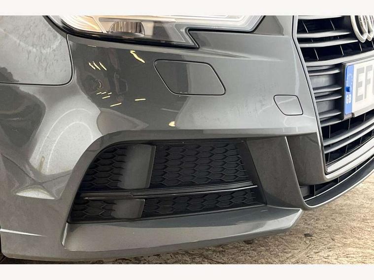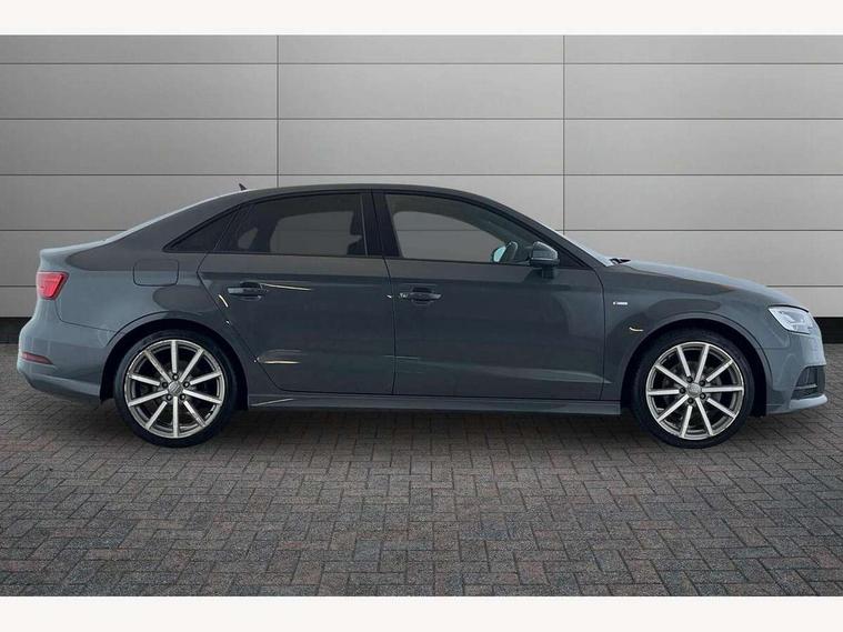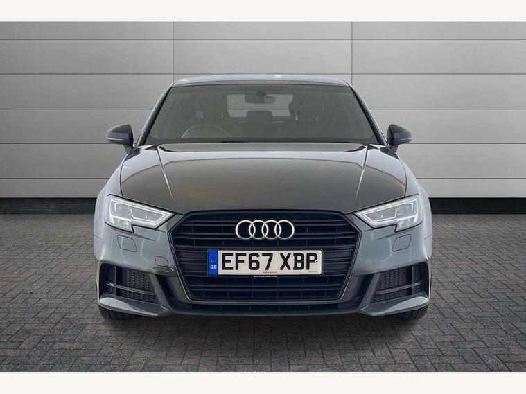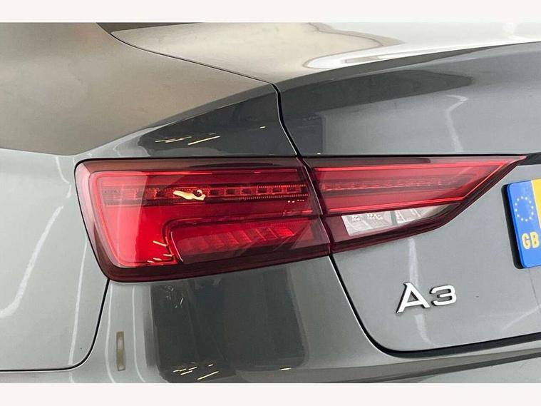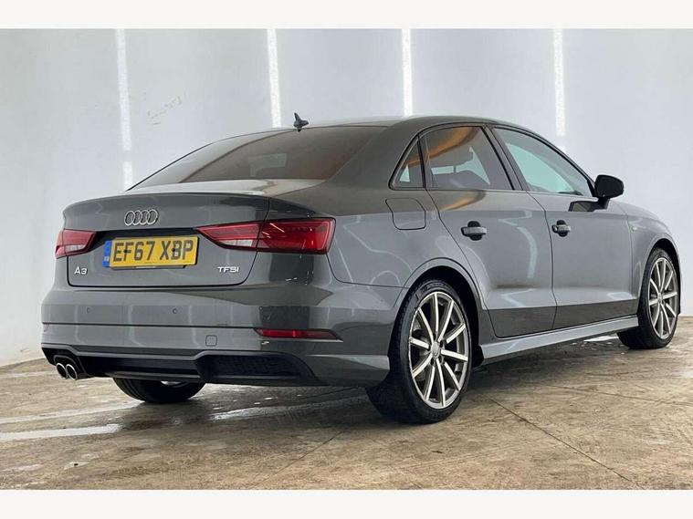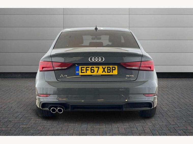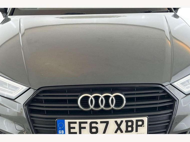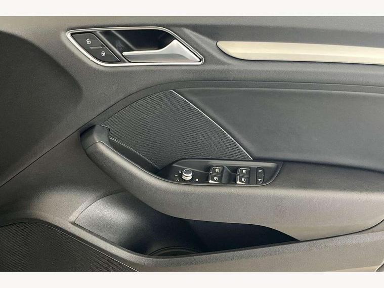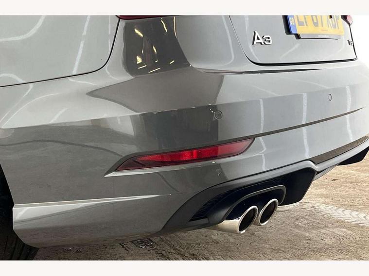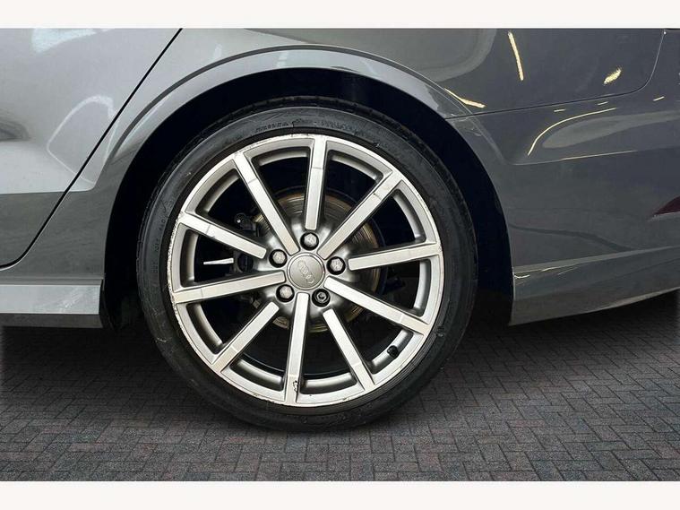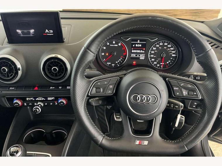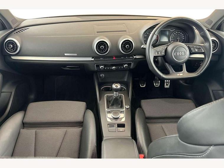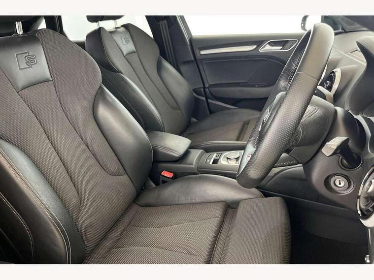 Audi connect, Audi drive select, Audi smartphone interface, Bluetooth interface, Colour driver's information system display, Electro-mechanical PAS, SD card based satellite navigation system, Service interval indicator, Voice control system, 2 USB ports, Audi music interface, Aux-in socket, CD player, DAB Digital radio, MMI radio plus with 7" colour MMI screen and MMI controller, Automatic lights and wipers, Black door mirrors, Black rear diffuser, Body colour roof spoiler, Chrome exhaust tailpipes, Electric operated/heated door mirrors, Front and rear electric windows, Heated rear window, Heated windscreen washer jets, LED daytime running lights, Privacy glass, S Line body styling, 3 adjustable rear headrests, 3 spoke flat bottomed multi-function leather steering wheel, 4 lashing points to secure luggage, Adjustable front armrest, Black cloth headlining, Driver/passenger sunvisors, Dual zone electronic climate control, Front and rear interior lights with delay, Front sports seats, Front/rear floor mats, Height/depth adjustable steering column, Illuminated door sills, Illuminated glovebox, ISOFIX child seat preparation+airbag deactivation, Jack and tool kit, Stainless steel pedals, Storage compartment in centre console, Storage compartments in doors, Storage under driver's seat, Black styling pack - A3/S3, LED interior light pack - A3/RS3, Non smoking pack - A3, Storage and luggage pack - A3/RS3, 3 point seatbelts on all seats, ABS/EBD, ASR, Curtain airbags, Driver and passenger side airbags, Driver/Front Passenger airbags, Drivers knee airbag, EDL, Electromechanical parking brake, ESC - Electronic Stability Control + traction control, Front passenger airbag deactivation, Seatbelt warning, Tyre pressure warning, Warning triangle and first aid kit, Anti theft alarm, Anti-theft wheel bolts, Immobiliser, Remote control central locking, Aluminium air vent surrounds, Aluminium trim elements, Matt brushed aluminium inlays,