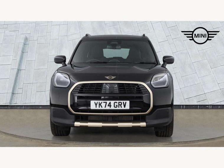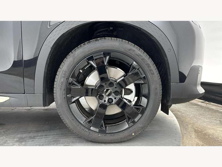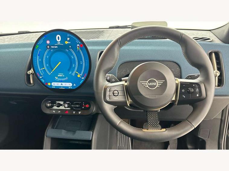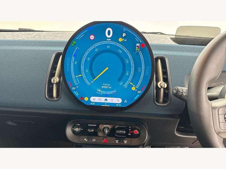 Bluetooth connection, Circular OLED Screen, Compatible mobile phone bluetooth with audio streaming, Cruise Control (DCC), Digital dashboard display, Driving assistant, E-call, Electro-mechanical speed dependant steering assistance, MINI Experience Modes, Mini navigation system, MINI TeleServices, Parking assistant in camera and ultrasound based assistance system, rear view camera, parking aid and distance control, Auto transmission with Paddles, Larger capacity fuel tank, 6 speakers, DAB Digital radio, Personal eSim, Auto tailgate, Electric adjustable heated door mirrors, Front and rear electric windows, Heated rear window, LED daytime running lights, LED Headlights, LED rear lights, LED third brake light, Logos in Vibrant Silver, Rain sensor with auto headlights, Rear side wing doors, Rear window wiper, Roof rails, Vibrant Silver Grill Surround, 3 seat bench in 2nd row, 60/40 split rear bench seat, Anthracite headliner, Auto air conditioning, Floor mats, Front armrest, Front headrests, Front sport seats, Heated steering wheel, Height and length steering column adjustment, Lidded storage box in Petrol knit, Rear headrests, Single front passenger seat, Sport Vescin Steering Wheel, Sunvisors with vanity mirrors, Vescin synthetic leather upholstery, Vibrant Silver sill inlay, 3x3 point rear seat belts, 6 Airbags - front, side, head and seat belt tensioners, ABS, DSC - Dynamic Stability Control, Electronic handbrake, Electronic Stability Programme (ESP), Front ISOFIX (iSize), Hill hold assist, Hill start assist, Manual rear child locks, Traction control, Tyre pressure monitoring system, Warning triangle, Alarm system with tilt sensor, monitoring doors, bonnet interior and tailgate, Auto drive away locking, Deadlocking function, Electronic vehicle immobiliser, Locking wheel bolts, Remote control locking, Start/stop toggle with keyless go, Petrol/Brown dashboard knit, MINI Mobility Kit,