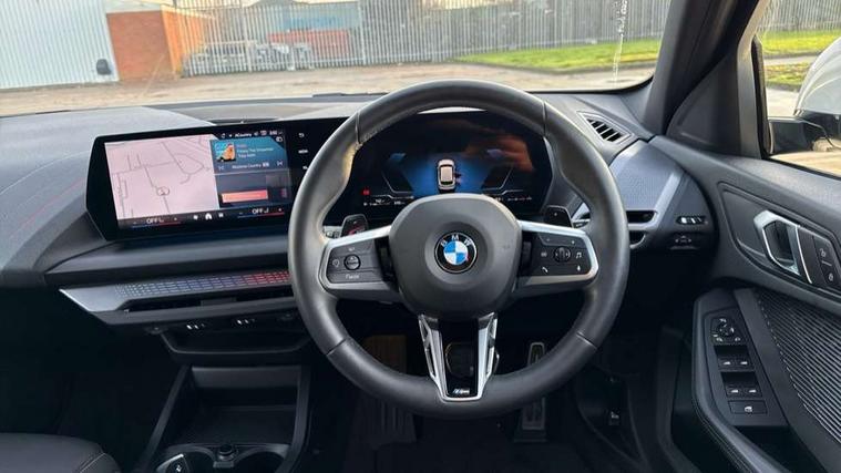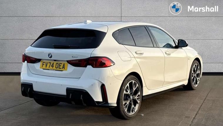 Active guard plus, Attentiveness assist, Bluetooth / WiFi interface for wireless connection of mobile terminal devices and audio streaming, BMW ConnectedDrive online services, BMW Live cockpit plus, BMW Teleservices, Check Control warning system for monitoring of lights and door/luggage compartment open warning, Cruise control with speed limiter, Eco pro mode, Electric power steering with Servotronic steering optimised at all speed ranges, Front and rear parking sensors, Front axle single joint with specific axle kinematics to minimise drive influences on steering + provide increased rigidity agile driving behaviour, Integrated owners handbook, Lane departure warning system, Oil sensor for level and grade, On board computer, Optimum shift indicator, Park assist including reversing assistant, lateral parking aid and reversing assist camera, Personal Profile, Pull away assistant, Rigidly mounted rear subframe - Multi link construction with separate spring / damper configuration and excellent driving characteristics, Speed limit Info including no-overtaking indicator, Speedometer, 49 litre fuel tank, Aluminium lightweight construction, Anti roll bar front and rear, Balancer shaft, Double VANOS twin scroll turbocharging system, Drive Performance Control, Electronic differential lock, High precision injection, M Adaptive suspension, Petrol Particulate Filter, Twin tube gas filled shock absorbers with degressive characteristic curve, VALVETRONIC engine management, DAB Digital radio, Auto dimming rear view mirror, Automatic headlight beam throw control, Automatic windscreen wipers and automatic headlight, Body colour door handles, Body colour mirror caps, Body colour roof trims, Chrome 'M' logo side designation, Chrome exhaust twin tailpipes round 90mm in left, Chrome kidney grille frame with Satin Aluminium struts, Direction indicator side lights in exterior mirrors, Electrically adjustable exterior mirror with mirror adjustment switch on drivers armrest and aspheric on driver side, convex on passenger side, Fading support, Folding side mirrors with auto dimming/folding wing mirrors with auto dimming, Follow me home headlights, Front and rear bumper system with replaceable deformation elements, Front and rear electric windows with open and close fingertip control, anti trap facility and comfort closing, Front door sill finishers in black plastic with M designation in metallic look, Green tinted heat protection glazing, High gloss shadowline window frame, Recess cover mirror frames and B/C pillar embelisher trim, High level third brake light, Integrated front windscreen with washer jets, LED daytime running lights, LED eyebrow turn indicators, LED front fog lights, LED Headlights, Lightweight engineering, Matt black air guide grilles, Matt black wheel arch trim, Nearside reverse light in rear light cluster, Preparation for high beam assistant, Rear fog lights, Rear side wing doors, Rear window wiper, Shark fin antenna, Trailer stabilisation logic, Visible VIN plate, Welcome lighting, 12V power socket in front centre console with blanking plug, 3 rear seat head restraints, 3 seat bench in 2nd row, 3 spoke sports leather steering wheel with black leather and stitching, pearl chrome decorative finish, specific M Badge, Anthracite headlining, Black boot net with lashing eyes, Cargo function on 2nd seat row, Child seat ISOFIX attachment for two outer rear seats and front passenger seat with anchorage points, Conditioned based service, Driver and front passenger backrest net on rear, Driver and front passenger seat heating, Driver side folding compartment in instrument panel, Folding rear clothes hook, Four grab handles integrated in roof lining, Front and rear door pockets with bottle holders, Front and rear side armrest integrated into door trim, Front armrest, Glove compartment, Height adjustable front head restraints, Luggage compartment for bag hooks on left and right, foldable luggage compartment liner and four lashing eyelets, Manual adjust steering wheel, Multi-function controls for steering wheel, Rear seat backrest with manual 60:40 split folding with 3 top tether clips integrated on rear of seat panels, Single front passenger seat, Storage compartment in centre console, Storage compartment in luggage compartment, Stowage of the parcel shelf in luggage compartment trim, Sun visors with vanity mirrors and insert tab, Two front centre console cupholders, Type C two USB ports in rear centre console, Velour floor mats, Connected pack professional - 1 Series, Interior lights pack - 1 Series, M Sport exterior styling aerodynamics pack - 1 Series, 2 tone horn, 3 point seatbelts on all seats, front pyrotechnic belt tensioners, stopper and belt force limiters, rear coded belt buckles, Airbags - Front driver/passenger, front and rear curtain head protection, front side, manual deactivation of front passenger airbag, Anti lock braking system (ABS) with brake assist, BMW emergency call, Brake drying, Braking readiness, Child proof locking system in rear door, Comfort modes, Cornering brake control, Crash sensor activating of airbags, Unlocking doors, hazard warning lights, interior light, safety battery terminal, Driver and front passenger seat belt security check, Dynamic stability control + (DSC+), Dynamic Traction Control - DTC, Electrically operated hand brake including automatic hold function, Front and rear disc brakes, Seatbelt warning, Side impact protection, Tyre pressure monitoring system, Warning triangle and first aid kit, Central locking switch for all doors, fuel filler cap and luggage compartment, Deadlocking function system to all doors, Drive away locking system on all doors and luggage compartment with de-activated in iDrive settings, Locking wheel bolts, Remote control with integrated key with High-gloss Black inlay and M designation and 1 button for open/ close lock, window, open luggage compartment, Start/stop button illuminated in centre console with keyless engine start and auto 