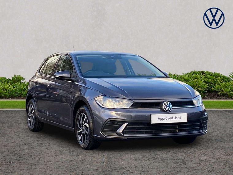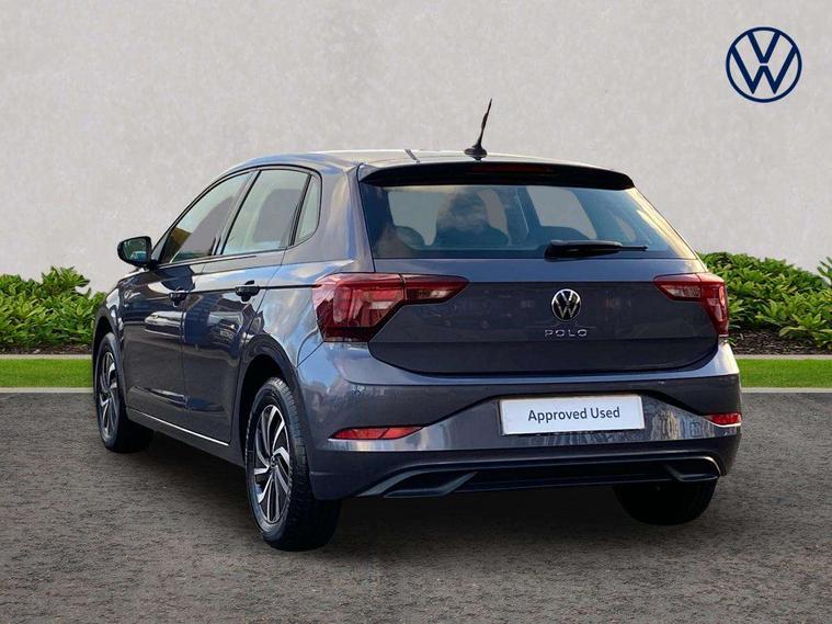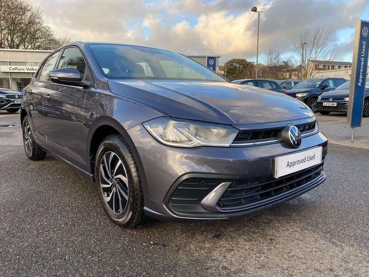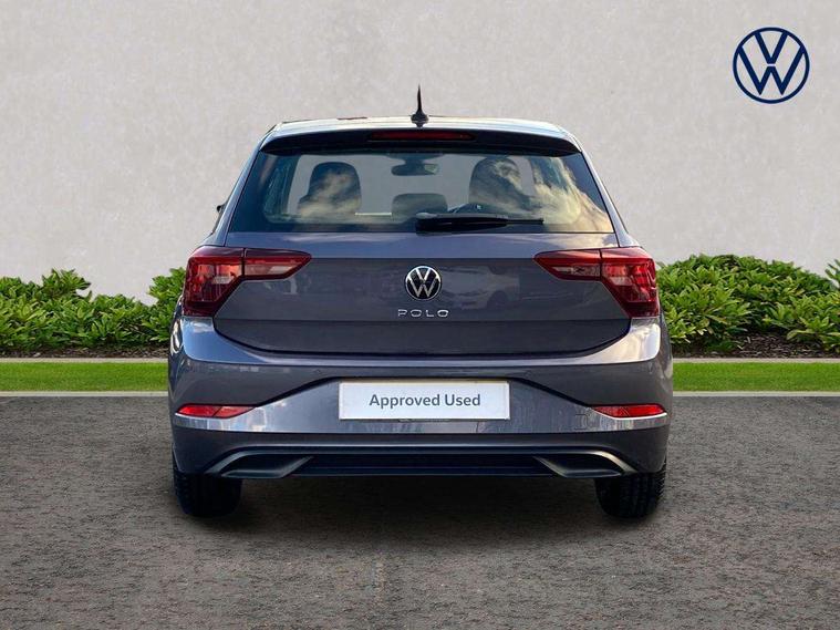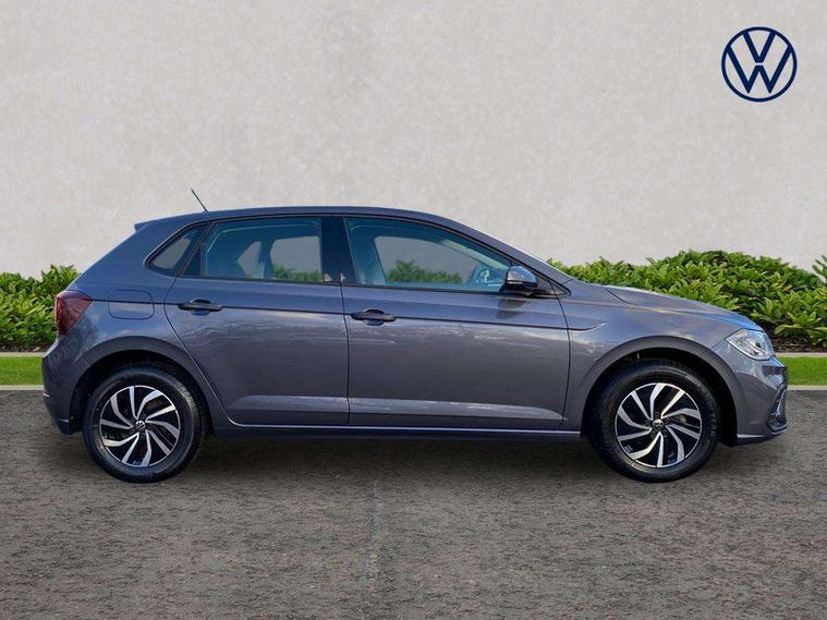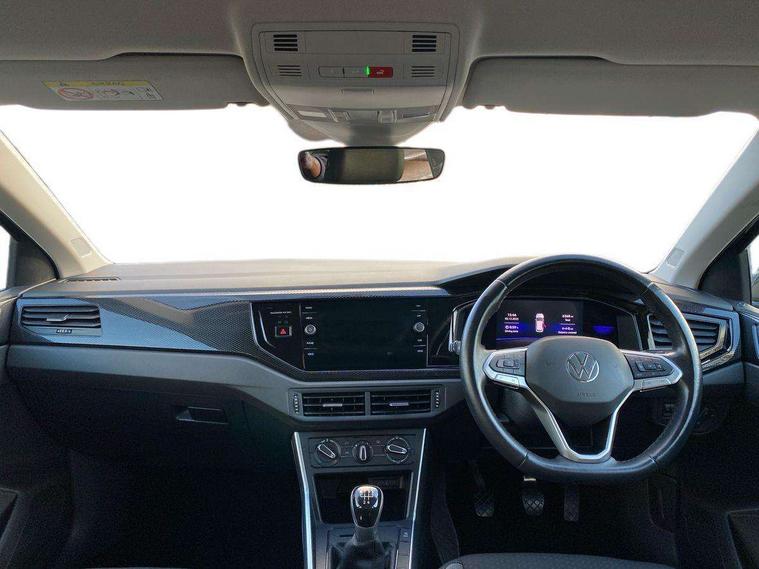 Adaptive cruise control without follow-to-stop and speed limiter, Bluetooth mobile phone interface, Driver alert system, Emergency call service, Front assist system, Power assisted speed sensitive steering, Preparation for We connect and We connect plus, Speedo and rev counter, electronic odometer, trip, service interval display and fuel gauge, Standard rear axle, Travel Assist - Lane keeping system and traffic jam assist, Travel assist including emergency assist, Trip computer, Warning signal and warning light for front and rear seatbelts not fastened, Washer fluid level indicator, Wireless app connect, Front wheel drive, Rear shock absorpion, Start-stop system with battery regeneration (recuperation - energy recovery during braking), DAB Digital radio, Diversity antenna for FM reception, Automatic dimming interior rear view mirror, Body colour bumpers, Body colour door handles, Body colour door mirrors, Electric front windows, Heat insulating darkened glass in side and rear windows, Heat insulating glass windscreen, Power folding adjustable/heated exterior mirrors and front passenger exterior mirror lowering function, Rain sensor, Rear electric windows, Rear fog light, Rear windscreen washer and wiper with interval delay, Third brake light, 12V power socket in centre console, 2 front and 2 rear reading lights, 2 USB-C ports in the front, 2 USB-C charging sockets on the center console in the rear, 3 rear head restraints, 60/40 split folding rear seat and rear seat bench not split, Ceramique headliner, Chrome plated radiator grille inserts, air vent surrounds and light switch surrounds, Door and side trim panel, Driver and front passenger seat height adjustment, Driver/passenger sunvisors with illuminated vanity mirrors, Front centre armrest, Front seat backrest storage pockets, Front standard seats, Handbrake lever handle in leather, Hartley/Thomas cloth upholstery, Isofix child seat preparation easy-fit (for two outer rear seats, and front passenger seat) compatible with I-size, Leather trimmed gear knob, Luggage compartment cover, Luggage compartment floor, Luggage compartment lighting, Multifunction steering wheel, Standard pedal cluster, Light and vision pack - Polo, 3 point height adj front seatbelts + pretensioners, 3x3 point rear seatbelts, ABS, Driver and front passenger airbag with front passenger airbag deactivation, Drivers and front passengers safety optimised head restraints, ESC (Electronic stability control) + EDL (Electronic Differntial lock) and ASR (Traction control), Extended and predictive pedestrian/ cyclist protection, Front curtain and side airbags with center airbag, Front disc brakes, Hill hold control, Rear drum brakes, Single tone horn, Tyre pressure loss indicator, Alarm with interior protection, Anti-theft alarm system with interior monitoring, backup horn, and towing protection, Anti-theft wheel bolts, Electronic engine immobiliser, Remote central locking with 2 remote folding keys, Lava stone black gloss/matt decorative inserts in dash and front door panels, Low rolling resistance tyres,