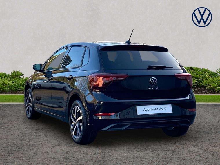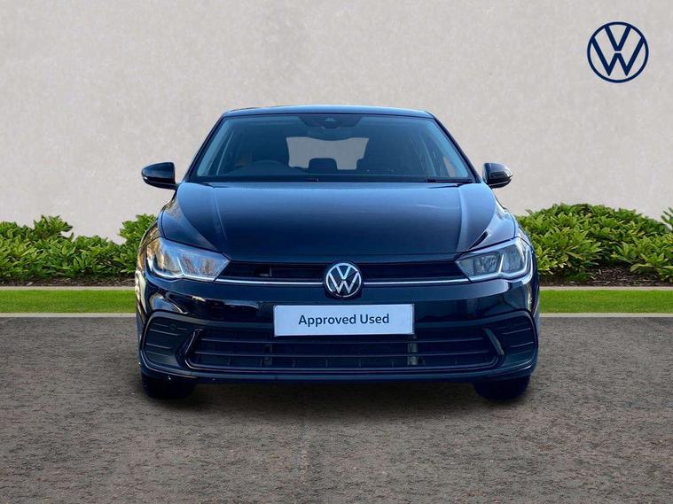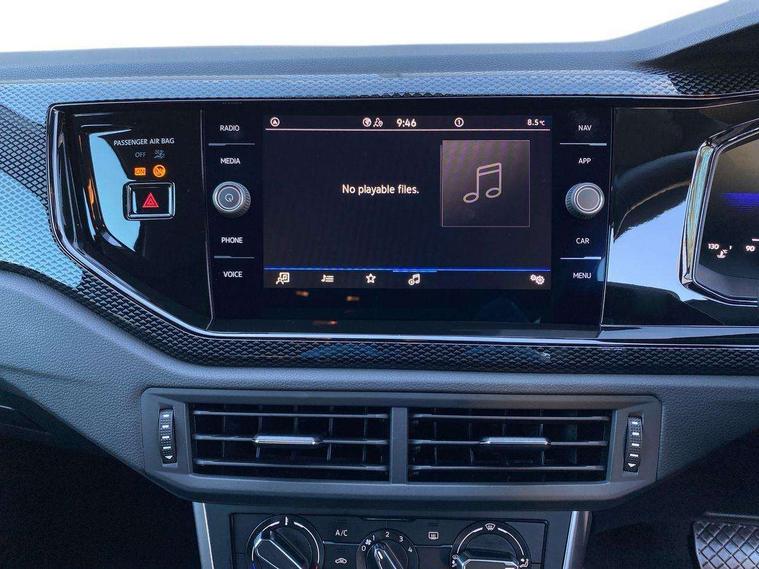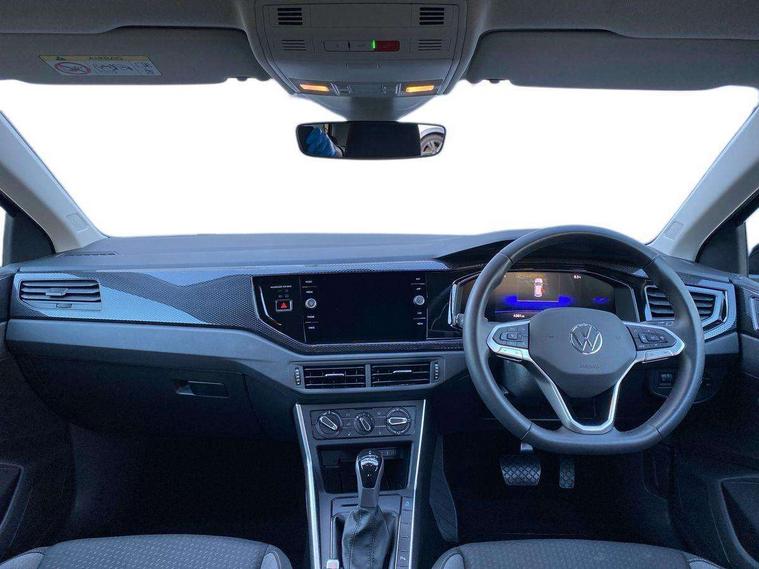 Advanced driver attention and drowsiness monitor, Bluetooth mobile phone interface, Dynamic road sign display, Emergency call service, Multifunction front facing camera for distance control, Park distance control, Power assisted speed sensitive steering, Predictive adaptive cruise control without follow-to-stop and speed limiter, Preparation for navigation system with media and internet package, Preparation for We connect and We connect plus, Rear view camera, Speedo and rev counter, electronic odometer, trip, service interval display and exterior temperature gauge, Standard rear axle, Travel Assist - Lane keeping system and traffic jam assist, Travel assist including emergency assist, Trip computer, Warning signal and warning light for front and rear seatbelts not fastened, Washer fluid level indicator, Wireless app connect, Front wheel drive, Rear shock absorpion, Start-stop system with battery regeneration (recuperation - energy recovery during braking), DAB Digital radio, Diversity antenna for FM reception, Front and rear 6 speakers, Automatic dimming interior rear view mirror, Automatic headlight control with LED separate daytime running lights with coming/leaving home function, Body colour bumpers with chrome inserts, Body colour door handles, Body colour door mirrors, Electric front windows, Engine badge deletion, Headlight range adjustment, Heat insulating and laminated safety glass windshield, LED Headlights, LED rear combination lamps, Power folding adjustable/heated exterior mirrors and front passenger exterior mirror lowering function, Rain sensor, Rear electric windows, Rear fog light, Rear side wing doors, Rear tinted glass from B-pillar backwards approx 65% tinted, Rear windscreen washer and wiper with interval delay, Third brake light, 12V power socket in centre console, 2 front and 2 rear reading lights with switch off delay and dimmer, 2 USB-C ports in the front, 2 USB-C charging sockets on the center console in the rear, 3 rear head restraints, 60/40 split folding rear seat and rear seat bench not split, Ceramique roof lining, Chrome plated radiator grille inserts, air vent surrounds and light switch surrounds, Door and side trim panel, Driver and front passenger seat height adjustment, Driver/passenger sunvisors with illuminated vanity mirrors, Front centre armrest, Front seat backrest storage pockets, Front standard seats, Handbrake lever handle in leather, Hartley/Thomas cloth upholstery, Headliner in recycled material, Isofix child seat preparation easy-fit (for two outer rear seats, and front passenger seat) compatible with I-size, Leather trimmed gear knob, Luggage compartment cover, Luggage compartment lighting, Removable luggage compartment floor, Single front passenger seat, Standard climatic zones, Standard pedal cluster, Three spoke leather wrapped multifunction steering wheel with shifting paddles, Light and vision pack - Polo, 3 point height adj front seatbelts + pretensioners, 3 point seat belt for centre rear seat, 3 point seatbelts, outer rear with ECE lable, ABS, Driver and front passenger airbag with front passenger airbag deactivation, Drivers and front passengers safety optimised head restraints, ESC (Electronic stability control) + EDL (Electronic Differntial lock) and ASR (Traction control), Extended and predictive pedestrian/ cyclist protection, Front assist with autonomous emergency braking (for Adaptive Cruise Control ACC up to 130 mph), Front curtain and side airbags with center airbag, Front disc brakes, Hill hold control, Manual child lock in rear doors, Rear drum brakes, Single tone horn, Tyre pressure loss indicator, Alarm with interior protection, Anti-theft alarm system with interior monitoring, backup horn, and towing protection, Anti-theft wheel bolts, Electronic engine immobiliser, Lava stone black gloss/matt decorative inserts in dash and front door panels, 16" Torsby alloy wheels, Low rolling resistance tyres,