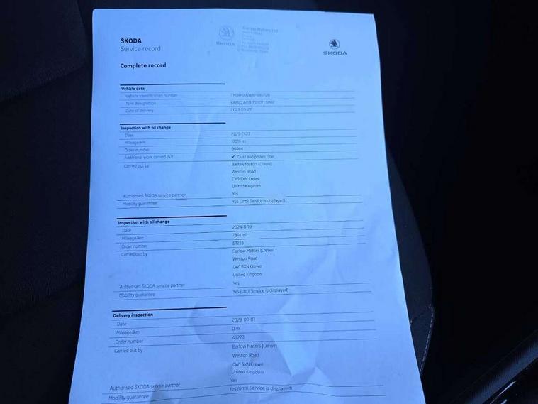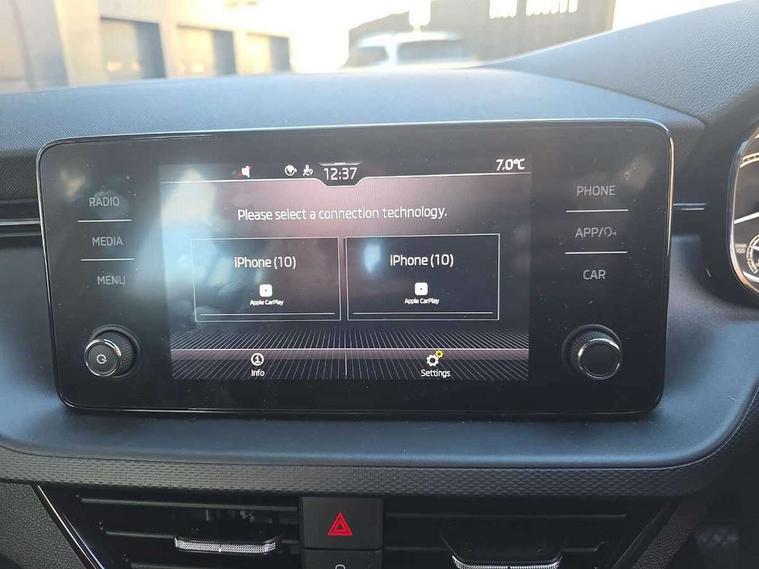 Bluetooth system, E-call, Front assist system, PAS, Service indicator, Speed limiter, Wireless Smartlink for Apple CarPlay (wired for Android Auto), 8 Speakers, Auxiliary input socket, DAB Digital radio, Body colour bumpers, Body colour door mirrors and handles, Chrome grille surround, Dimming rear view mirror with black surround, Electrically adjustable and heated door mirrors, Front and rear electric windows, Headlight range control, Heated rear window, LED rear lights - low functionality, LED third brake light, Light sensors, Rain sensor, Rear fog lights, Rear side wing doors, Rear wiper, 12V Accessory socket in centre console, 3 seat bench in 2nd row, Chrome inner door handles, Cloth upholstery, Front head restraints, Glove compartment with illumination, Ice scraper, Isofix child seat fittings on outer rear seats, ISOFIX on front passenger seat, Manual lumbar support for front seats, Rake/reach adjustable steering wheel, Reading lights, Single front passenger seat, Sun visors with illumination on front passenger, Textile floor mats, Third rear headrest, Top tether for front passenger seat, Umbrella in driver's door, 3x3 point rear seatbelts, Airbags - driver and front passenger, ESP, Front passenger airbag deactivation switch, Front side airbags with curtain airbags, Hill hold control, Manual parking brake, Manual rear child locks, One tone horn, Rear disc brakes, Seatbelt reminder for driver an co-driver, Traction control, Tyre pressure monitor, Anti-theft alarm system with interior monitoring, backup horn, towing protection and remote central locking with SAFE system, Anti-theft wheel bolts, Electronic engine immobilizer,