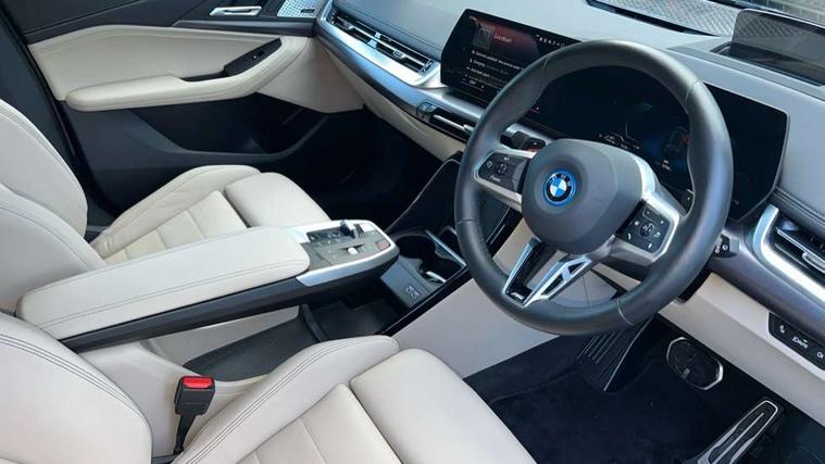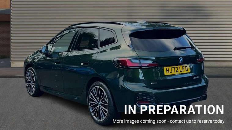 Active Guard incl speed limiting and lane departure functions with auto steering, and front collision warning with brake intervention, Automatic powered tailgate, Automatic start/stop function, BMW Iconic sounds electric, BMW Online services, BMW Teleservices, Brake pad wear indicator in front and rear, Condition based service, Drive off assistant, Flat air vents on instrument panel in high gloss black, adjustable slats with elements in pearl chrome, iDrive controller, Language version English, On board computer - average speed+fuel consumption, service interval, clock/date, odometer/trip meter, outside temperature display and ice warning, Parking assistant with active park distance control, reversing assistant, lateral parking aid and rear view camera, Servotronic variable electric power steering (EPS), Smartphone integration, Widescreen display, 45 Litre fuel tank, Drive performance control with ECO PRO comfort + sport mode, eDrive exterior sound, Gear selector switch with toggle operation, M Adaptive suspension, Mode 3 charging cable, Petrol Particulate Filter, Steptronic transmission with double clutch and gear shift paddles, 2x USB Type C ports in front centre console for charging and data transfer, 2x USB Type C ports in rear centre console for charging, DAB Digital radio, Welcome sound upon opening of the front driver or passenger door, Air inlet middle part on front apron in lines specific design with trim strip in satinised aluminium, Automatic headlights, BMW emblem, engine compartment lid and tailgate, Body colour roof mouldings, Body coloured door mirror caps, Contoured rear roof spoiler in vehicle colour with side aeroblades in black high-gloss, Driver side exterior mirror lighting with BMW logo projection, Dynamic brake lights, Electric adjustable heated door mirrors, Electric windows - front and rear, with open/close fingertip control, anti-trap facility and comfort closing, Folding door handles integrated flush with surface, Front and rear windscreen wipers with heated front washer nozzles, Front bumper cover with independent design in body colour with inserts in black high gloss, Front bumper design elements in satinised aluminium, Front door exit lights, Front door sill finishers aluminium inserts with M inscription, Front entry sills with aluminium inserts + BMW inscription, Front oramental grille with radiator grille bars in satinised aluminium, Heated rear window, Hidden exhaust pipe, High gloss shadow line, High gloss shadowline roof rails, Key with M identification, LED Daytime running lights and parking lights with turn indicators, LED number plate light, LED third brake light in rear spoiler, M identification on sides, Manual headlight range control, Model inscription on right tailgate, Rain sensor, Rear bumper cover with independent design in body colour with inserts in black high gloss, Rear bumper trim strip in satinised aluminium, Rear side wing doors, Shark fin antenna, Side sill covers with independent design in Body colour, Trailer stabilisation logic, Trims on front and rear bumper covers colour-coordinated with side window graphic, Visible VIN plate, Welcome lighting, Windscreen washer nozzle for rear view camera, 12V power socket in luggage compartment and front centre console, 12V socket in right side trim panel, 2 bag hooks in luggage compartment, 2 front reading lights, 2 open cup holders in front centre console, 3 seat bench in 2nd row, 40:20:40 split folding rear seat backrests, Ambient lighting front and rear, Automatic two zone climate control air conditioning, Bottle trays in all doors, Child seat ISOFIX attachment for two outer rear seats and front passenger seat with anchorage points, Driver and front passenger sports seats, Four grab handles integrated in roof lining, Front and rear door pockets, Front and rear footwell lighting, Front and rear side armrest integrated into door trim, Front centre console storage compartment, Front head restraints, Glovebox with light, Heated front seats, Height adjustable 3 rear head restraints, Interior door handle recess light on all doors, Luggage compartment lighting, M Anthracite headlining, M specific floor mats, M sport leather steering wheel, Map pockets, Mechanical rear seats with fore/aft adjustment, Multi-function controls for steering wheel, One piece parcel shelf opens together with tailgate and removable, Rear cloth hooks, Single front passenger seat, Stainless steel pedals, Steering wheel column manual adjustment, Storage compartment lighting in centre console and storage tray in centre stack, Storage compartment net in left side trim panel, Storage compartment with folding cover under centre console armrest cushion, Storage tray in right side trim panel, Sunvisors with illuminated vanity mirrors, Three spoke sport leather steering wheel, Connected pack professional - 2 Series Active Tourer, Technology pack - 2 Series Active Tourer - MY22, 3 point seatbelts on all seats, front pyrotechnic belt tensioners, stopper and belt force limiters, rear coded belt buckles, Airbag - Front driver and passenger, front and rear head, front side, curtain head protection, manual deactivation of front passenger airbag possible, Anti lock braking system (ABS) with brake assist, Automatic hold function, BMW emergency call, Brake drying, Braking readiness, Child proof locking system in rear door, Cornering brake control, Crash Sensor - activates hazard/interior lighting + unlocks doors, DSC - Dynamic Stability Control, Dynamic brake control, Dynamic Traction Control - DTC, Electromechanical parking brake, Energy recovery system, Front disc brakes, Integrated braking system, PC iBrake PostCrash approach control warning with light braking function, Rear disc brakes, Tyre pressure monitoring system, Warning triangle and first aid kit, Anti theft alarm system, Closing system with central locking, Engine immobiliser, Locking wheel bolts, Front centre console trim in high gloss black with my mode expressive, BMW mobility