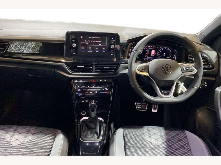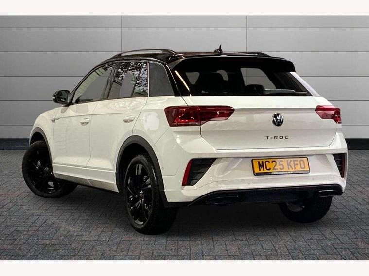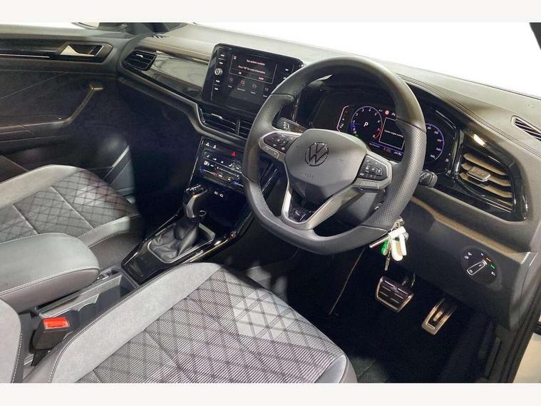 10.25" Digital cockpit pro, Advanced driver attention and drowsiness monitor, Emergency call service, Lane keeping system Lane Assist, Mobile phone interface, Modified key software - reduce switch off time for key status change to Long no motion, Online services, Park assist including front and rear parking sensors, Power assisted speed sensitive steering, Service interval indicator, Tailgate/trunk lid release from outside, Think blue trainer driver tips and journey analysis, Warning sound and light for front seatbelts unfastened, Wireless app connect, Battery regeneration during braking, Rear shock absorption chassis with increased ride height, Start/stop function with battery regeneration, DAB Digital radio, Diversity antenna for FM reception, Front and rear 6 speakers, Music playback - MP3, WMA and AAC files, Premium USB cable in choice of either Apple or Android smartphone compatibility, SD card slot, Simultaneous pairing of 2 compatible mobile devices, Title and cover art display, We Connect and We Connect Plus functionality, Auto dimming interior rear view mirror, Automatic hazard lights activation under emergency braking, Automatic headlight control with LED separate daytime running lights with coming/leaving home function, Dynamic cornering light, Electrically adjustable and heated door mirrors, Extended roof spoiler, Exterior mirrors aspherical on driver side, convex on front passenger side, External USB type C socket and charging sockets, Front windscreen wiper with intermittent wipe and 4 position delay, Heated rear window, Illuminated front grille, IQ LED matrix headlights, LED 3rd brake light, LED rear number plate lights, LED rear tail lights with dynamic turn signal, Light mode for poor weather, rain, fog or snow, Power windows with comfort operation and circuit breaker, R-Line design body coloured bumpers, Rain sensor, Rear exhaust tailpipe, Rear fog light on one side and reversing lights on both sides, Rear side wing doors, Rear wash/wipe with intermittent wipe setting, Remote electrically foldable door mirrors, puddle lights and reverse activated passenger's door mirror, 12V power socket in centre console, 3 rear head restraints, 3 seat bench in 2nd row, 4 load lashing points in luggage compartment, Air care climatronic air conditoning system with active combination filter and 2-zone temperature control, Artvelours cloth upholstery, Black roof lining, Chrome plated radiator grille inserts, air vent surrounds and light switch surrounds, Door and side trim panel with leatherette insert, Drawer under drivers seat, Driver seat height adjust, Driver's seat lumbar support, Front + rear carpet mats, Front centre armrest, Front comfort sports seats, Front cupholders x 2, Front footwell illumination, Front reading light, Front scuff plates with R Line logo, Front seat back storage pockets, Glove compartment door with light, Instrument lighting, white adjustable panel illumination, Interior ambient lighting and surround lighting, Interior light delay, Isofix child seat preparation, Leather gearshift handle, Leather wrapped multifunction steering wheel with paddle shift, Load-through provision with cup holder when folded down ('Unsplit rear seat bench, split folding backrest, with centre armrest), Luggage compartment lighting, Non-folding front passenger seat backrest, Passenger seat height adjuster, Passenger seat lumbar support, Single front passenger seat, Stainless steel pedals, Storage compartment in left and right luggage area, Storage compartment in rear doors, Storage compartments in driver and front passenger doors, Sunvisors with illuminated vanity mirrors, Variable boot floor, height adjustable and removable, Winter pack without heated windscreen washer jets - T-Roc, 3 point height adj front seatbelts + pretensioners, 3 point seatbelts in outer rear with ECE label, ABS, Child locks on rear doors, City emergency braking and pedestrian monitoring, Driver and front passenger airbag with front passenger airbag deactivation, Driver and front passenger safety-optimised head restraints, Drivers seatbelt reminder, Electronic parking brake, Electronic Stability Control (ESC) inc EDL (Electronic Differential Lock) and ASR (Traction Control), Front and rear passengers curtain airbag system including front side airbags, Front disc brakes, Hill start assist, Predictive pedestrian protection, Rear disc brakes, Two tone horn, Tyre pressure loss indicator, Volkswagen roadside assistance, Tool kit, Trims for alloy wheels, Tyre mobility kit including compressor and sealing foam,
