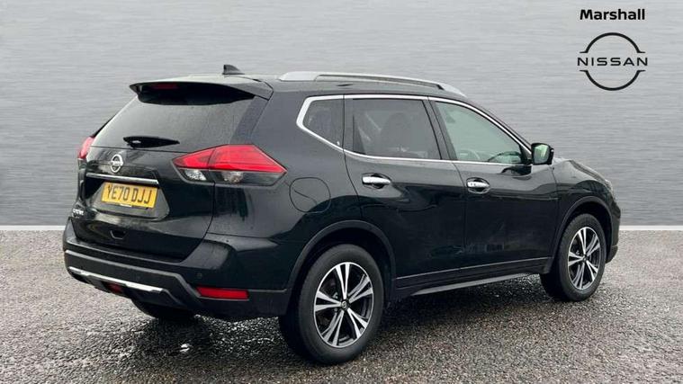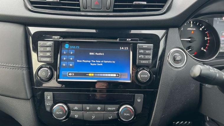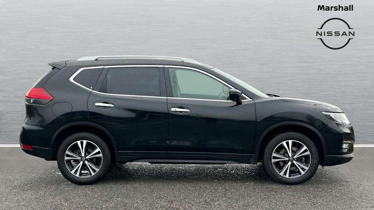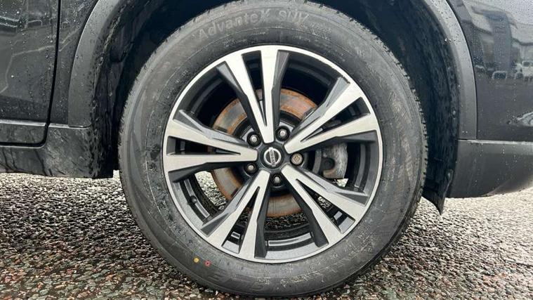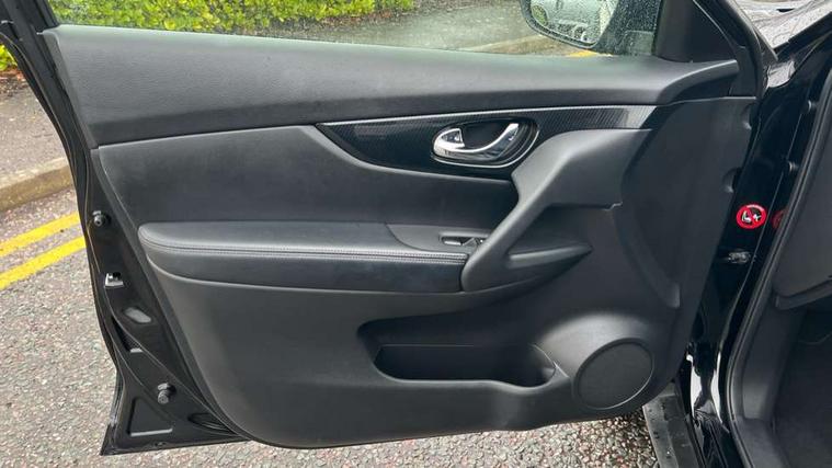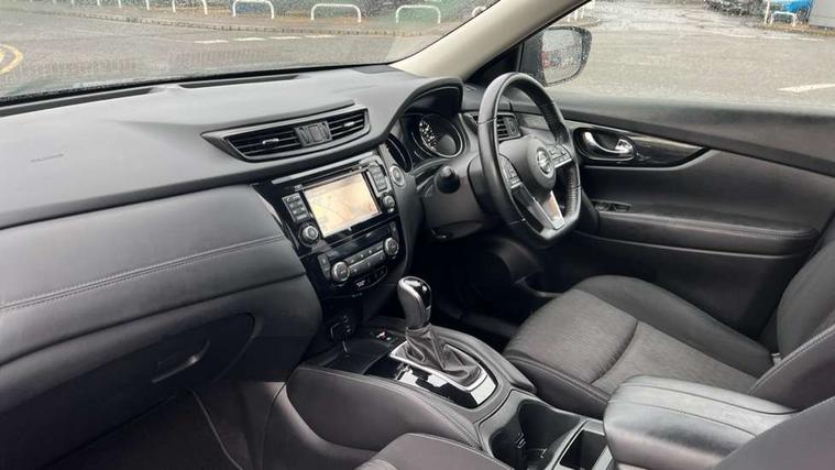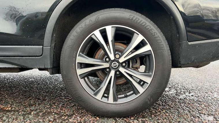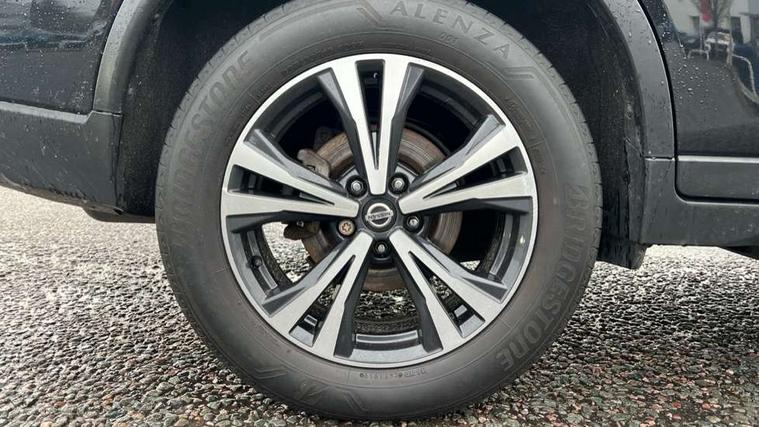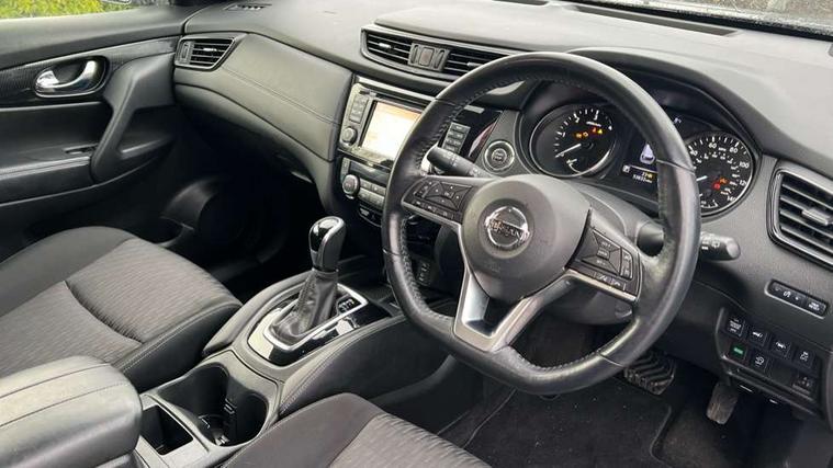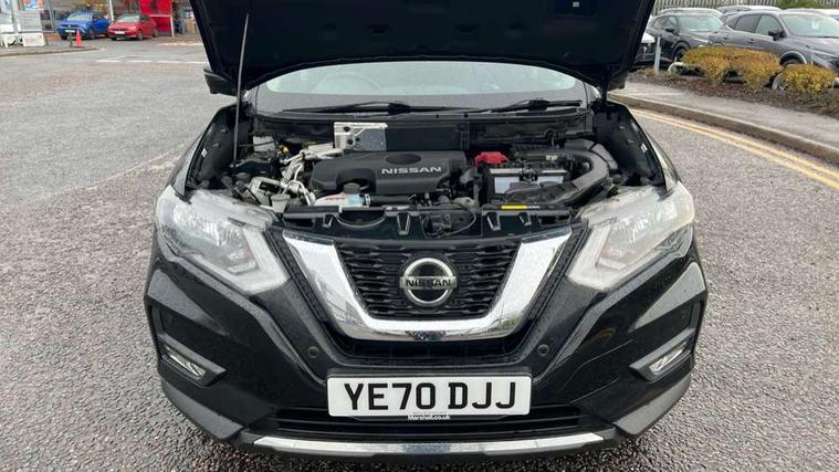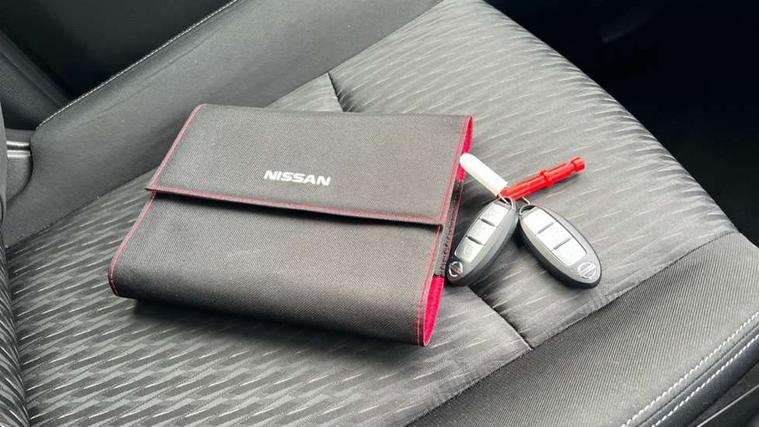 5" TFT driver information centre, Automatic tailgate opening, Bluetooth phone integration system, Cruise control + speed limiter, Front and rear parking sensors, Intelligent around view monitor, Lane departure warning system, Nissan connect evo 7" touchscreen navigation and entertainment system with Android auto, Apple car play, Tomtom maps and Live traffic, PAS, Push button start, Stand still assist auto hold function, Traffic sign recognition, Trip computer, Nissan chassis control (intelligent ride control, intelligent trace control, intelligent engine brake), 6 speakers, DAB Digital radio, Radio/CD, Rear USB port, Smartphone apps, Steering wheel mounted audio controls, USB/aux input socket, Anti dazzle rear view mirror, Automatic headlights, Automatic rain sensing wipers, Black honeycomb front grille, Body colour door mirrors, Chrome door handles, Chrome window surround, Electric folding door mirrors, Electric heated door mirrors, Front and rear electric windows, Front fog lights, Halogen headlights, LED daytime running lights, Panoramic sunroof with one touch shade, Rear privacy glass, Satin silver roof rails, Shark fin roof aerial, 3 rear headrests, 60/40 split rear bench seat, Centre console storage box/armrest, Cloth upholstery, Configurable luggage board system, Driver's manual adjustable lumbar support, Dual zone climate control, Front and rear door pockets with bottle holders, Front cupholders, Front/rear armrests, Height adjustable front headrests, Individual rear reading lights, Isofix child seat attachment, Leather D shaped steering wheel, Leather steering wheel and gear knob, Pollen filter, Tilt/telescopic adjustable steering wheel, 3 point seatbelts on all seats, 6 airbags - Driver, front passenger, curtain and side airbags, ABS, Child locks on rear doors, EBD + Brake Assist, Electric parking brake, ESP + traction control, Intelligent emergency braking with pedestrian recognition, Seatbelt warning, Tyre pressure monitoring system, Immobiliser, Intelligent Key, Remote central locking, Thatcham Cat.1 alarm, Full size spare wheel,