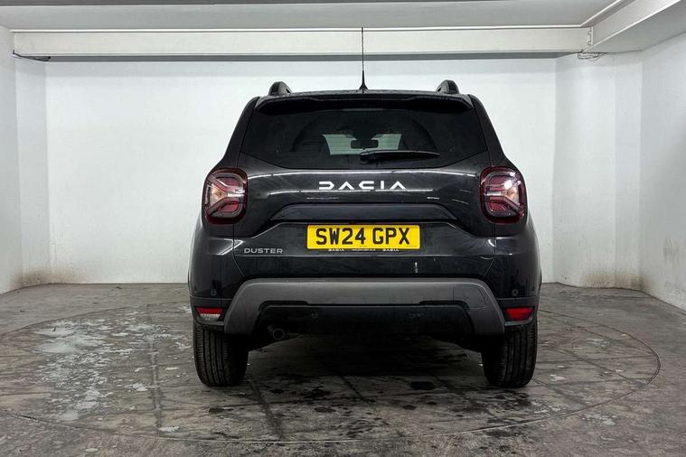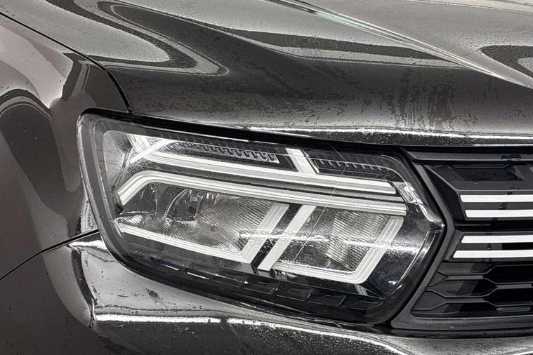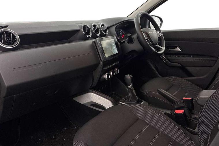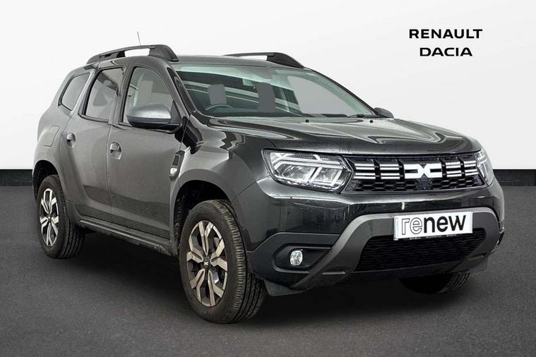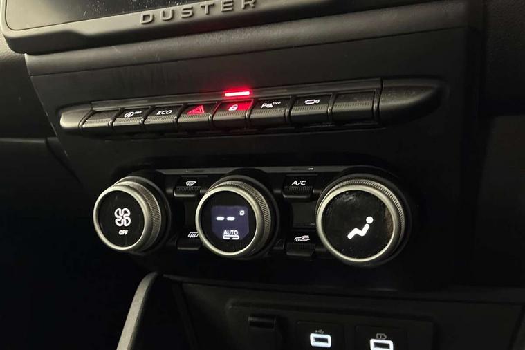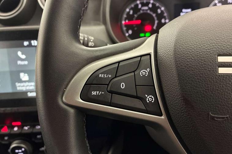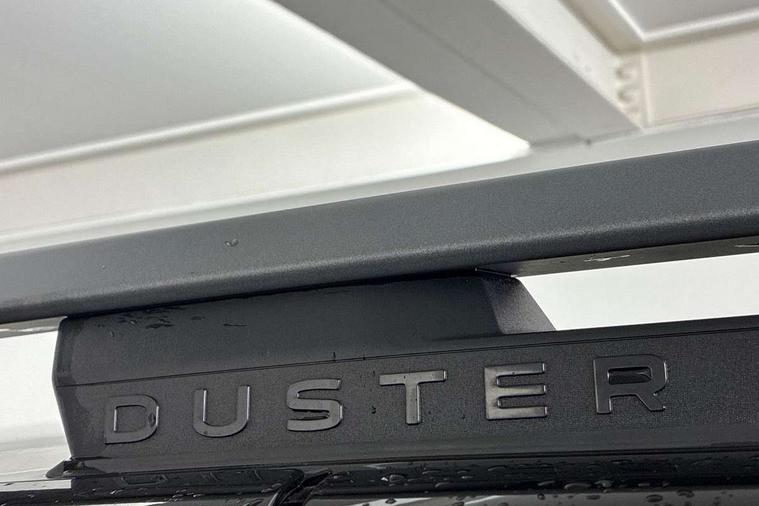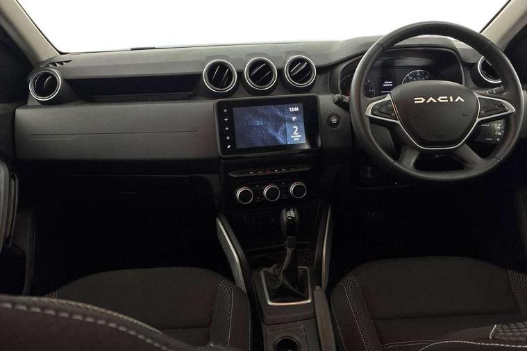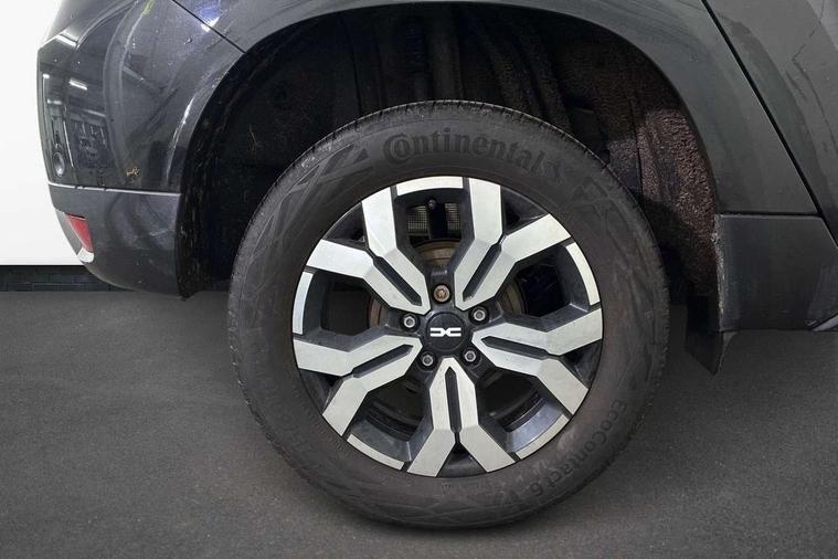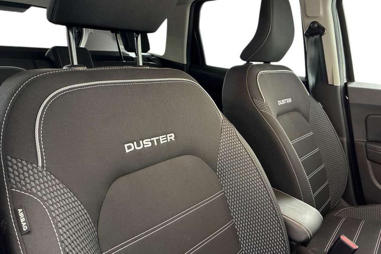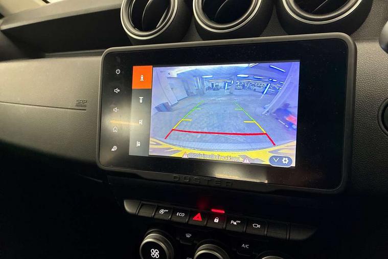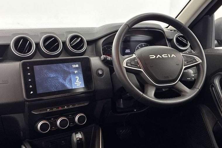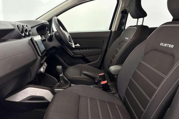 Blind spot warning, Cruise control and speed limiter, eCall emergency system, Eco mode, Electric power assisted steering, Multi view camera, On board computer, odometer, trip computer, average fuel consumption, average speed, service indicator, outside temperature gauge, Rear parking sensors, Rev counter, Reversing camera, Stop/start system, 8" Media Navigation with wireless smartphone replication, Dacia plug and radio/MP3/USB/bluetooth/DAB/steering wheel control, 3 speed windscreen wipers, Acoustic windshield, Automatic front wipers, Black side sills, Black/satin chrome tailgate trim with Duster inscription in black background and lettering, Body coloured door handles, Chrome front grille with hot stamping, Chrome logo surround on steering wheel, Dark glass on lateral rear windows, Daytime running lights, Drivers window one touch up/down, Dusk sensor, Electric adjustable/heated door mirrors, Electric folding door mirrors, Electric front windows, Electric rear windows, Front and rear body coloured bumpers, Front door sill protection strip, Front fog lights, Grey quartz longitudinal roof bars with Duster inscription, Heated rear window, High level third rear brake light, Modular roof bars, Rain sensor, Rear side wing doors, Rear spoiler, Rear wash/wipe, Satin chrome door mirrors, Underbody protection skid plates, Y shaped LED headlights with rear LED lights, 3 rear height adjustable headrests, 3 seat bench in 2nd row, 60/40 split folding rear seat, Automatic air conditioning, Backlighted steering wheel buttons, Boot light, Driver seat lumbar adjustment, Fabric decorative insert on door panels, Fabric upholstery, Front head restraints, Front passenger reading light, Gear shift indicator, Glovebox light, Heated seats, Height adjustable driver seat, Height adjustable front and rear headrests, Height and depth adjustable steering wheel, High centre console with driver armrest, Isofix points for child seats in both outer rear seats, Map pocket on front seat backs, Passenger sunvisor with vanity mirror, Rear passenger reading light, Satin chrome gear lever cap insert, Satin chrome interior door handles, Satin chrome lower steering wheel insert, Single front passenger seat, Soft feel leather steering wheel, 3x3 point rear seatbelts, ABS and Emergency brake assist, ASR traction control with Electronic stability control, Child locks on rear doors, Door open visual and audible warning, Driver airbag, Driver and passenger seatbelt not fastened - visual and audible warning, EBD - Electronic brakeforce distribution, Front passenger airbag, Front passenger airbag deactivation, Front seatbelt pretensioners, Front side airbags, Height adjustable front seatbelts, Hill start assist, Tyre pressure monitor, Keyless entry, Remote central locking, Thatcham approved engine immobiliser, Charcoal grey central console surround, Matt black central console fascia, Matt black decorative insert on rear door panels, Piano black decorative insert on front door panels, Satin chrome air vent surround, Satin chrome instrument dial surrounds, 17" Alloy wheels,