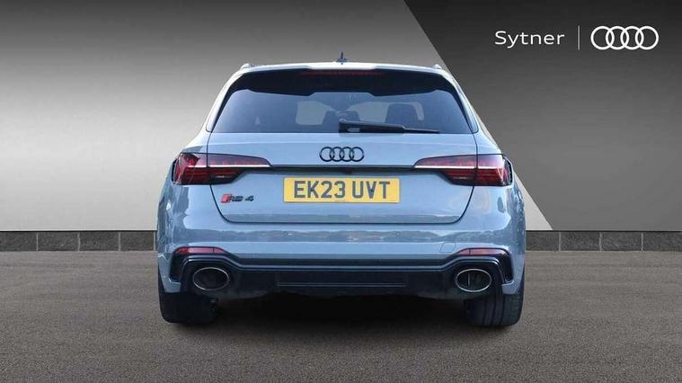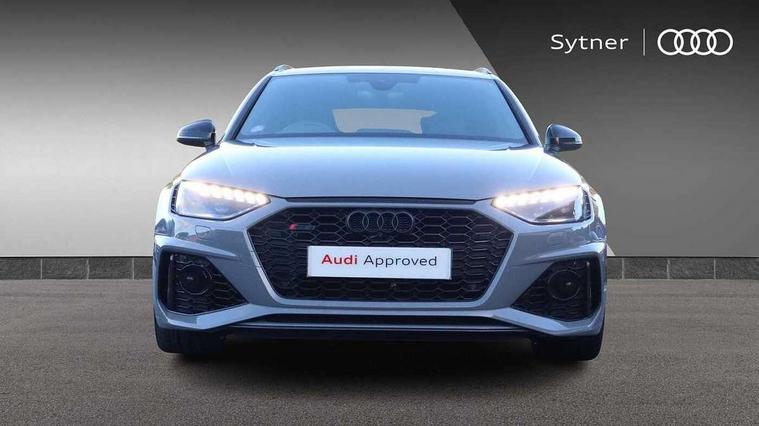 7" Colour driver information system, Amazon alexa Integration, Audi connect safety and service (e-call), Audi drive select, Audi side assist, Audi smartphone interface, Audi virtual cockpit with RS specific display, Automatic start-stop system with coasting functionality and efficiency programme, Bluetooth interface, Electromechanical power steering, Email, calendar and text messages displayed via MMI, MMI Navigation plus with MMI touch includes 10.1" high resolution colour MMI display, 3D map, Power opening/closing tailgate, Service interval indicator, Voice control system, 58 Litre fuel tank, Quattro sports differential, 2 USB charging ports, Audi sound system, DAB digital radio module, 3rd brake light, Acoustic windscreen, Audi Beam uses LEDs to project the RS logo onto ground as you exit your RS4, Audi matrix LED headlights with LED rear lights + dynamic front and rear indicators, Audi rings and lettering glossy black, Auto dimming rear view mirror, Automatic headlights + automatic windscreen wipers, Black roof rails, Blue tinted glass, Body colour door handles, Electric front windows, Electric rear windows, Electrically folding auto dimming/adjustable/heated door mirrors with memory function, LED side indicators and kerb view function for passenger side, Flared front and rear wheel arches, Front bumper with enlarged air inlets, Headlight range control, High beam assistant, High gloss black door mirror housing, High gloss black triangular aperture at rear door, Honeycomb design grille with quattro logo, Lateral air inlets next to front headlights, LED daytime running lights, LED indicators in door mirrors, Privacy glass with rear acoustic glazing, Rain and light sensors, Rear side wing doors, Rear wiper, Roof spoiler, RS 4 badges on grille and rear, RS4 dual branch chrome tailpipes with left and right oval pipes, 3 seat bench in 2nd row, 3 spoke multifunction plus leather steering wheel with heating and RS badging, 40/20/40 split folding rear seats with rear centre armrest, Black cloth headlining, Deluxe 3 zone electronic climate control, Electric load area cover, Electrically adjustable front seats, Fine nappa leather with contrast honey comb stitching + super sports seats with pneumatic massage function, Front centre armrest, Front headrests, Front/rear floor mats, Heated front seats, Height and reach adjustable steering wheel with full size airbag, Illuminated door sill trims with RS4 logo, ISOFIX child seat mounting and top tether, Leather door armrests and knee pad, Luggage compartment carpet, Perforated leather gear lever knob with contrast stitching, Rear headrests, Retractable load area cover, Single front passenger seat, Stainless steel pedals, Sunvisors with vanity mirrors, Carbon black styling pack - RS4, LED Interior light pack - RS4, Non Smokers pack, 3 point seatbelts on all rear seats, Adaptive driver and front passenger airbags, Electromechanical parking brake, Electronic stabilisation control including ABS, ASR and EDL, Enhanced braking system, Front head airbags, Front seatbelt pretensioners + load limiters, Front side airbags, Hill hold assist, Manual child lock in rear doors, Multi-Collision braking, Pop-up bonnet for pedestrian protection, Pre sense city, Rear side airbags, Seatbelt monitoring, Traction control, Tyre pressure warning, Variable restraint system, Warning triangle and first aid kit, Anti theft alarm, Anti-theft wheel bolts, Immobiliser, Keyless Go, Remote central locking, Remote control key with RS emblem, Carbon twill inlays, 20" 5 segment spoke evo design glossy black sport alloy wheels, Tool kit, Tyre repair kit,