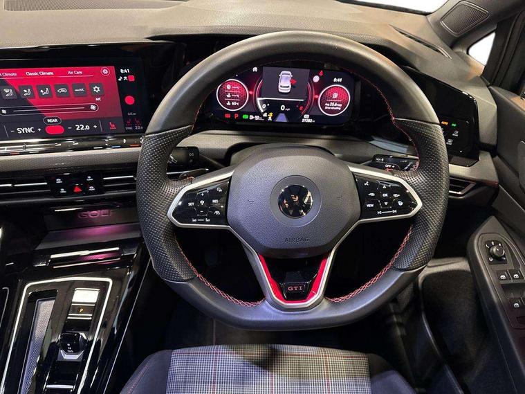 Adaptive cruise control (ACC) with speed limiter and front assist (reacting to vehicles pedestrians and cyclists), Car2X communication, Digital cockpit pro - 10.25" high resolution TFT dash display screen with customizable menus and information, Driver alert system, Dynamic road sign display, eCall - Emergency call service for SOS calls to emergency response, Lane assist, Lane change assistant, Mobile phone interface with wireless inductive charging function, PAS, Speedo, rev counter, electronic odometer, trip, service interval display, exterior temperature and fuel gauge, Start/Stop function, Travel assist with emergency side assist with electrically foldable door mirrors, USB-C ports in the front and rear centre console with increased charging performance, Warning buzzer and light for front seatbelts unfastened, Wireless app connect, Front differential lock, Petrol Particulate Filter, XDS electronic differential lock for improved traction and handling, Premium USB cable in choice of either Apple or Android smartphone compatibility, Ambient lighting, exterior illuminated styling elements at the sides, Auto dimming rear view mirror, Automatic headlamp activation with Coming home and Leaving home feature, Automatic headlights, Body colour bumpers, Body colour door handles, Body colour door mirrors with integrated indicators, Body colour rear roof spoiler, Chrome plated tailpipes (1 either side), Front and rear electric windows, GTI style bumpers, Heat insulating glass windscreen, Heated rear windscreen, High level 3rd brake light, Highway light, IQ.Light - LED Matrix headlights, dynamic headlight control with advanced high beam control matrix dipped main beam + LED DRL + 22 LED lights, LED front fog lights with 5 honeycomb design, LED License plate illumination, LED rear combination lamp inlcuding dynamic turn signal, Rain sensor, Rear fog light on one side and reversing lights on both sides, Rear side wing doors, Rear tinted glass 65% light absorbing from B pillar backwards, Rear windscreen washer and wiper with interval delay, Remote electrically heated, adjustable and foldable door mirrors, including door mirror puddle lights and reverse activated kerb-view adjustment on pa, Welcome light, 12V socket in front centre console, 12V socket in luggage compartment, 3 rear head restraints, 3 seat bench in 2nd row, 3 zone climate with controls in the rear, Aluminium gear knob, Ambient lighting - Customisable 30 colour ambient lighting, Black roof lining, Brushed stainless steel pedals, Chrome plated surround to electric mirror button, window switch and air vent surrounds, Drivers and front passengers sun visors with vanity mirrors, Front + rear carpet mats in recycled material, Front centre armrest with storage compartment, Front cupholders x 2, Front passenger seat, Front reading lights x 2 incorporating LED technology, Front seat lumbar support adjuster, Front sports seats, Glovebox, GTI logo on backrest, Height adjustable front seats, Height and reach adjustable steering wheel, Isofix child seat preparation for 2 rear child seats and front passenger seat, Leather wrapped multifunction sports heated steering wheel with red stitiching + paddle shift, Leatherette door armrests and centre armrest, Luggage compartment lighting, Removable luggage compartment cover, Split folding backrest with centre armrest and unsplit rear seat bench, Woven fabric storage compartments in front and rear doors, 3 point height adj front seatbelts + pretensioners, 3 rear three point seatbelts, ABS, Child locks on rear doors, Driver and front passenger airbag with front passenger airbag deactivation, Drivers and front passengers safety optimised head restraints, Electronic parking brake with auto hold, ESC (Electronic Stability Control), Extended pedestrian protection measures, Front and rear passengers curtain airbag system including front side airbags, Front disc brakes, Rear disc brakes, Two tone horn, Tyre pressure monitoring system, Alarm with interior protection and deactivation via infotainment system, Electronic engine immobiliser, Keyless entry with start/stop button on centre console, Black metal chrome decorative inserts in dash and front door trim panels, High gloss black centre console, Soul dashboard,