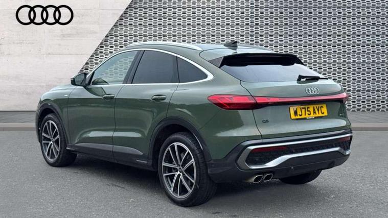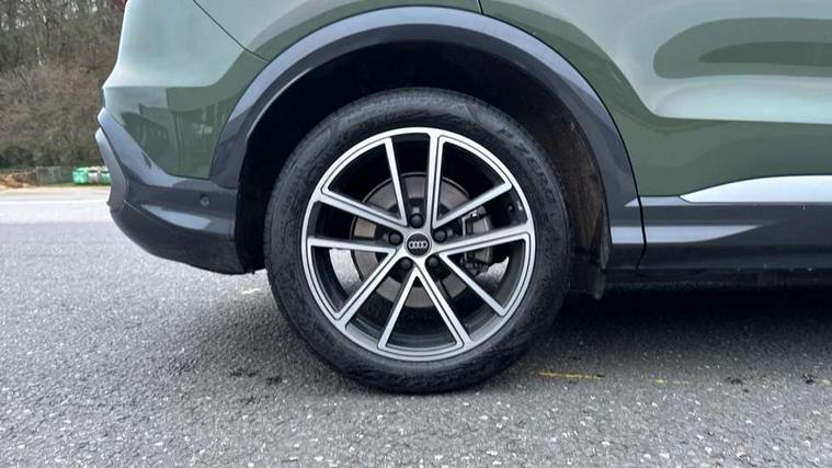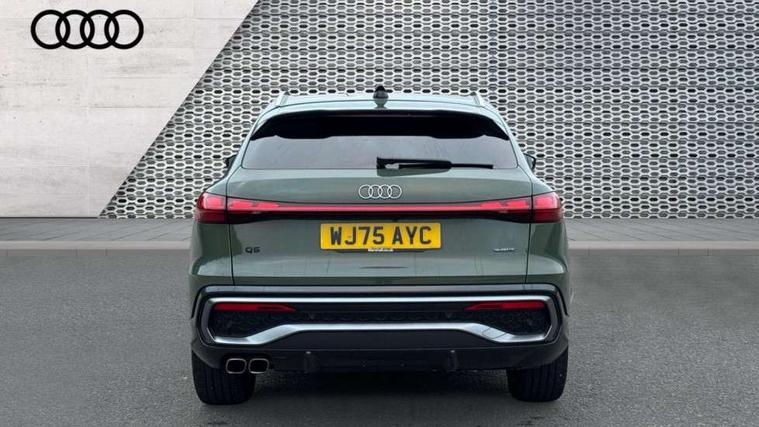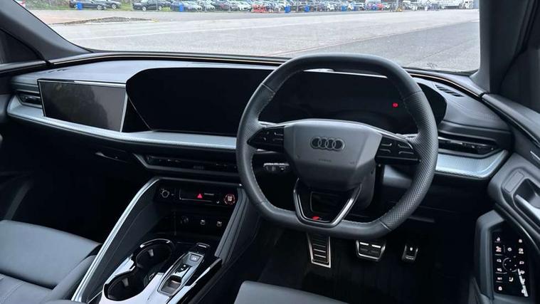 Adaptive cruise assist plus with steering intervention, Advanced driver attention alert, Audi application store, Audi connect emergency call and service, Audi digital key, Audi drive select, Audi smartphone interface, Audi virtual cockpit plus with 11.9" OLED colour display, Camera based traffic sign recognition, Fatigue monitor, Front cross traffic intersection assist, Garage door opener, Lane change assistant with exit warning system, rear cross traffic alert and rear turn assist, Lane departure warning with emergency assist, MMI 10.9" front passenger touch display, MMI navigation plus with high resolution 14.5" OLED touchscreen colour display, Park assist plus, Parking system plus with 360 display, PAS, Reversing camera, Swerve assist and turn assist, Top view camera, Traffic sign based speed limiter, Adaptive air suspension, 2 USB-C ports in both the front and rear, DAB Digital radio, Smartphone compartment with wireless charging, Acoustic glass for front door windows, Active digital light signatures - Six additional combinations of active daytime running light signature, Aluminium roof rails, Auto dimming rear view mirror, Body coloured door mirrors, Coming/leaving home lighting function, Digital OLED tail lights including communication light, Electrically adjustable heated and folding + automatically dimming exterior mirrors, Front and rear electric windows, Front door sill trims with aluminium inlays, illuminated with 'S' logo, Grill frame, inlay and front air inlets in matt anthracite chrome, Headlight cleaning system, Heated rear window, High beam assist, High gloss window surrounds, Logo projection light in exterior mirrors, Matrix LED headlights, Privacy glass, Projection third brake light for rear window in LED, Radiator grille in phantom black, Rear and side windows with heat insulating glass, Rear honeycombe grille in matt black with inlay in matt anthracite chrome, Rear side wing doors, Rear wash/wipe, S Line badge on the front wings, S line bumpers in contrasting Volcano grey metallic paint finish, Towbar preparation, Windscreen with acoustic glazing, 3 rear head restraints, 3 seat bench in 2nd row, 3 spoke leather steering wheel with multi-function buttons with touch control, flattened on top and bottom, with S badging and contrast stitching, 4 way electric lumbar support for driver and front passenger, 40:20:40 split folding rear seat bench with centre armrest and cup holders, Comfort centre armrest, Deluxe 3 zone electronic climate control, Electric steering wheel adjustment, Electrically adjustable front seats with memory function for driver's side, Front and rear floor mats, Front sport seats with integrated head restraints, Headlining in black cloth, Heated front seats, Heated outer rear seats, Heated steering wheel, i-Size child seat mounting on the front passenger side and outer rear seats, i-Size and top tether on the outer rear seats, Interior trim in aluminium look, Luggage compartment lid, electrically opening and closing, Single front passenger seat, Softwrap in leatherette, Stainless steel pedals and footrest, Steering wheel grips in perforated leather and shift paddles, Twin leather upholstery, Ambient lighting package plus - Q5, Sound and Vision pack - Q5, Storage and luggage compartment pack - Q5, Vanadium pack - Q5, 3x3 point rear seatbelts, ABS, Acoustic vehicle alerting system, Convenience key with safelock, Driver and front passenger airbag with passenger airbag deactivation, Electric child safety locks, First aid kit with warning triangle and high visibility vests, Front emergency brake assist, Front side airbags with head airbag system and front interaction airbag, Hill hold assist, Occupant detection in rear seat area, Proactive passenger protection system for front, sides and rear, Side airbags in front and rear with head airbag system and front interaction airbag, Tyre pressure loss indicator, Anti theft alarm, Anti-theft wheel bolts, Remote control key with SAFELOCK and keyless go, Anthracite matt brushed aluminium inlays with linear embossing, Black dashboard with contrast stitching, Steel grey seat stitching, Upper and lower interior elements in artificial leather, 20" 5 twin spoke black metallic, gloss turned finish Audi Sport alloy wheels, Tyre repair kit,