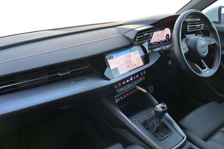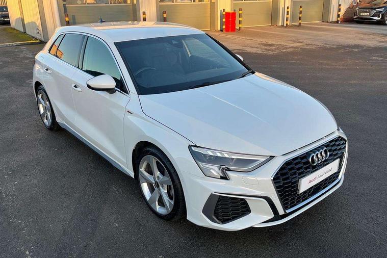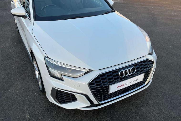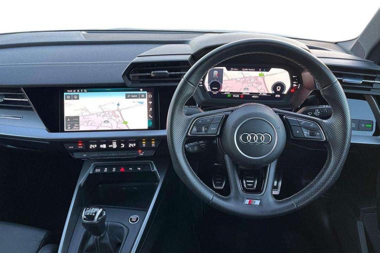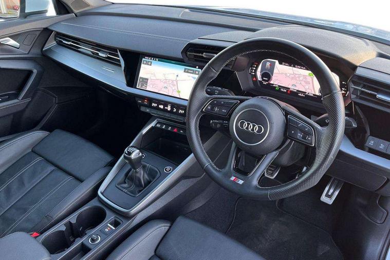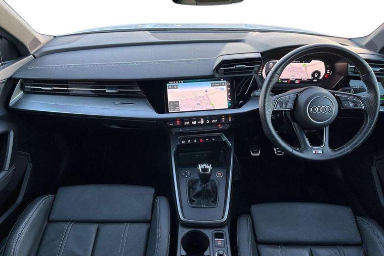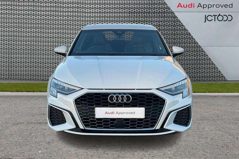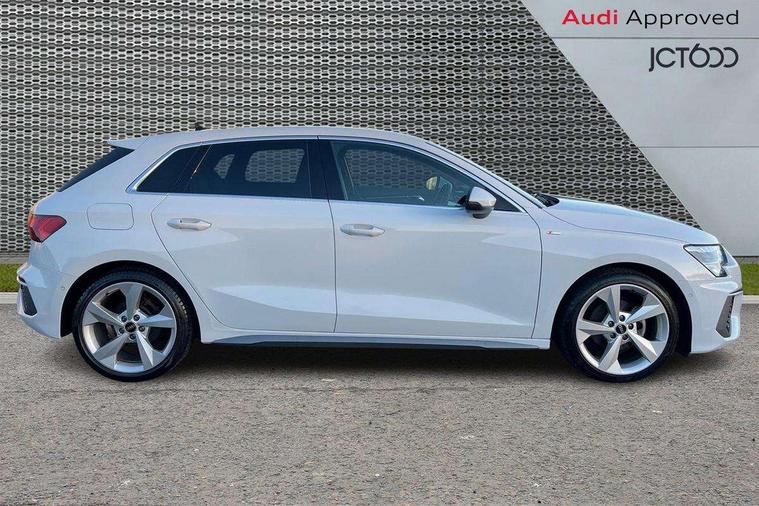 Audi drive select (Auto, Comfort, Dynamic and Individual), Audi smartphone interface, Audi Virtual Cockpit - 10.25" digital and colour instrument cluster, Automatic start/stop system with recuperation, Bluetooth interface, Collision avoidance assistant, Cruise control, e-Call (emergency call), Electromechanical power speed sensitive steering, Lane departure warning system, MMI Navigation Plus with high resolution 10.1" colour touch screen display, Rear parking sensors, Service indicator, Trip computer, Voice control system with natural language interaction, 2xUSB-C connection with data and charging functions, 6 passive loudspeakers, DAB Digital radio, 3rd brake light, Acoustic glass windscreen, Aluminium window trim, Auto dimming frameless rear view mirror, Electrically adjustable/heated/folding/auto dimming door mirrors with integrated LED indications + kerb view function for passenger side, Front electric windows, Illuminated aluminium inserts front door sills with S logo, LED daytime running lights, LED headlights with LED rear lights and dynamic rear indicators, Light and rain sensors, Privacy glass - dark tinted rear window, rear door and side windows, Rear electric windows, Rear side air outlets in grained matt black, Rear side wing doors, Rear wiper, S line bumpers, S roof spoiler, 12V socket and storage compartment in front centre console, 3 seat bench in 2nd row, 40/20/40 split folding rear seat bench with cupholder, Black cloth headlining, Dual zone electronic climate control, Front and rear centre armrest in leather, Front and rear headrests, Front/rear floor mats, Height and reach adjustable steering wheel, Illuminated vanity mirror, Interior lighting - glove compartment light and right hand side, Luggage compartment floor covering, Manual boot compartment lid, Manually adjustable front seats, Seat side bolsters, Single front passenger seat, Stainless steel pedals and front footrest in black, Twin leather upholstery with front sports seats S embossed logo, Aluminium interior elements pack - A3 Sportback, LED interior lighting pack - A3 Sportback, S line styling pack - A3 Sportback, 3x3 point rear seat belts, Audi pre sense front, Driver and front passenger airbag with passenger airbag deactivation, Electronic Stabilisation Control (ESC) including ABS, ASR and EDL, First aid kit with warning triangle and 2 safety vests, Front side airbags with head airbags and interaction airbag, Pre-sense front with pedestrian and cyclist detection, Seatbelt monitoring, Tyre pressure loss indicator, Anti theft alarm, Anti-theft wheel bolts, Electronically operated child lock, Immobiliser, Remote control central locking, Accent surfaces in the dashboard and centre console in platinum grey silk effect paint finish, Dark spectrum aluminium inlays,