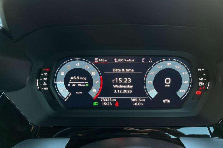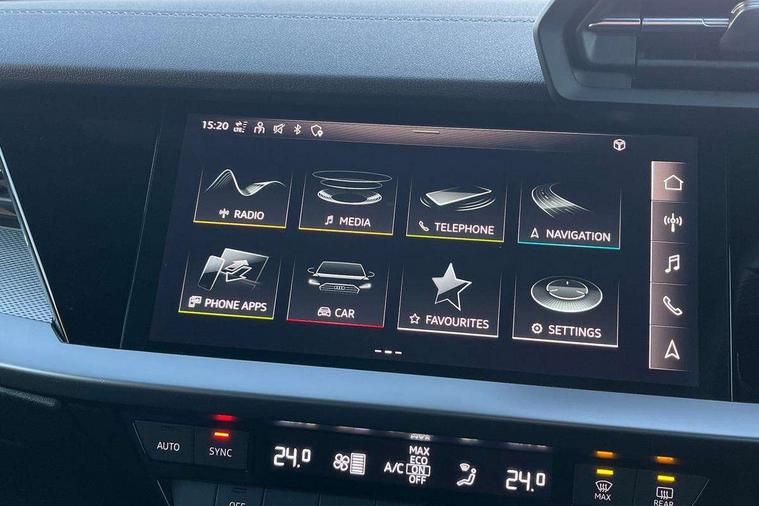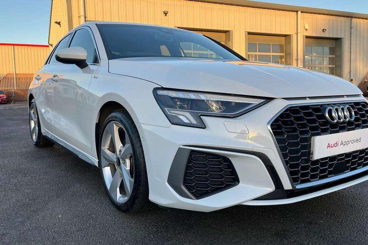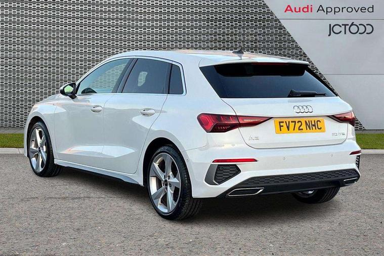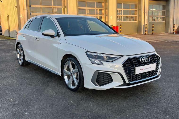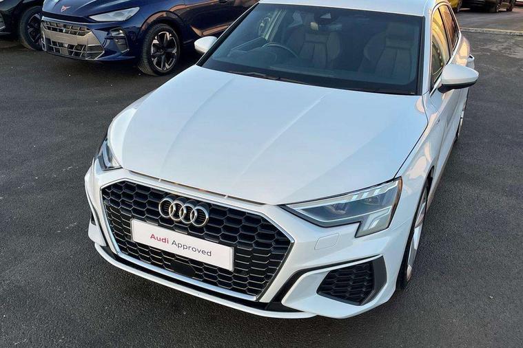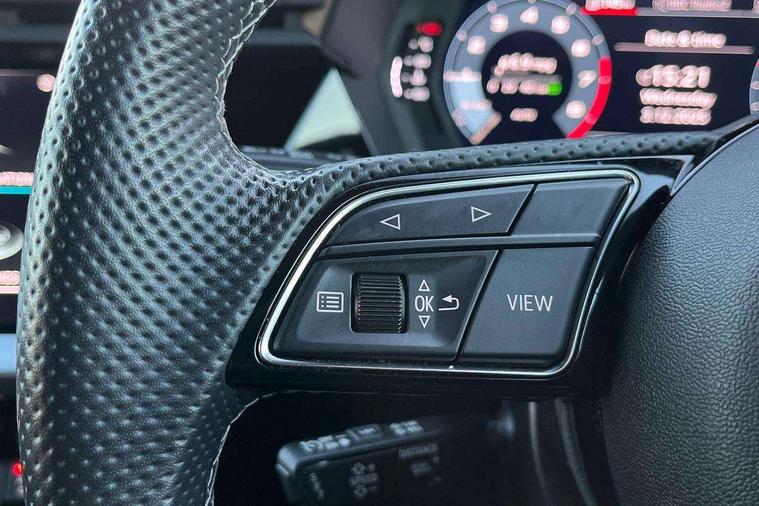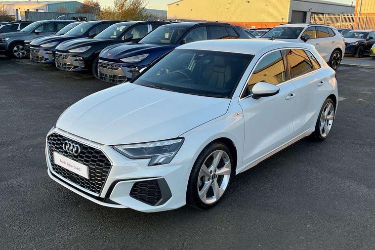 Audi drive select (Auto, Comfort, Dynamic and Individual), Audi smartphone interface, Audi Virtual Cockpit - 10.25" digital and colour instrument cluster, Automatic start/stop system with recuperation, Bluetooth interface, Collision avoidance assistant, Cruise control, e-Call (emergency call), Electromechanical power speed sensitive steering, Lane departure warning system, MMI Navigation Plus with high resolution 10.1" colour touch screen display, Rear parking sensors, Service indicator, Trip computer, Voice control system with natural language interaction, 2xUSB-C connection with data and charging functions, 6 passive loudspeakers, DAB Digital radio, 3rd brake light, Acoustic glass windscreen, Aluminium window trim, Auto dimming frameless rear view mirror, Electrically adjustable/heated/folding/auto dimming door mirrors with integrated LED indications + kerb view function for passenger side, Front electric windows, Illuminated aluminium inserts front door sills with S logo, LED daytime running lights, LED headlights with LED rear lights and dynamic rear indicators, Light and rain sensors, Privacy glass - dark tinted rear window, rear door and side windows, Rear electric windows, Rear side air outlets in grained matt black, Rear side wing doors, Rear wiper, S line bumpers, S roof spoiler, 12V socket and storage compartment in front centre console, 3 seat bench in 2nd row, 40/20/40 split folding rear seat bench with cupholder, Black cloth headlining, Dual zone electronic climate control, Front and rear centre armrest in leather, Front and rear headrests, Front/rear floor mats, Height and reach adjustable steering wheel, Illuminated vanity mirror, Interior lighting - glove compartment light and right hand side, Luggage compartment floor covering, Manual boot compartment lid, Manually adjustable front seats, Seat side bolsters, Single front passenger seat, Stainless steel pedals and front footrest in black, Twin leather upholstery with front sports seats S embossed logo, Aluminium interior elements pack - A3 Sportback, LED interior lighting pack - A3 Sportback, S line styling pack - A3 Sportback, 3x3 point rear seat belts, Audi pre sense front, Driver and front passenger airbag with passenger airbag deactivation, Electronic Stabilisation Control (ESC) including ABS, ASR and EDL, First aid kit with warning triangle and 2 safety vests, Front side airbags with head airbags and interaction airbag, Pre-sense front with pedestrian and cyclist detection, Seatbelt monitoring, Tyre pressure loss indicator, Anti theft alarm, Anti-theft wheel bolts, Electronically operated child lock, Immobiliser, Remote control central locking, Accent surfaces in the dashboard and centre console in platinum grey silk effect paint finish, Dark spectrum aluminium inlays,