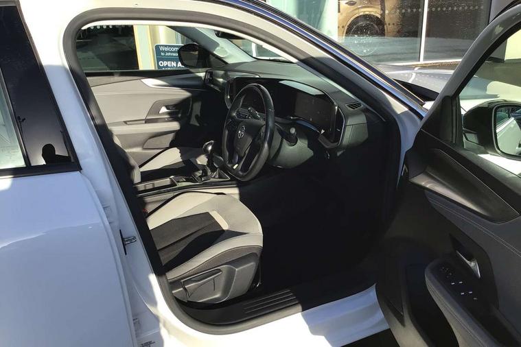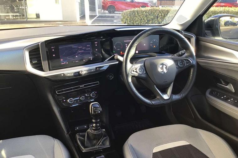 12" digital instrument cluster, Automatic adaptive cruise control, Central facia display with digital clock, outside air temperature and audio information, Driver drowsiness alert system, Engine start/stop button, Exterior temperature display, Front and rear parking distance sensors, Front camera system, Lane keep assist system (LAS) with Lane departure warning system (LDWS), Lights on audible warning, Multi function trip computer, Panoramic rear view camera, Power assisted speed sensitive steering, Side blind spot alert and flank guard, Smartphone integration compatible with Apple CarPlay and Android Auto, Speed sign recognition, Start/stop system, Vauxhall connect with e-Call, 6 speed manual transmission, Bluetooth A2DP audio streaming function (Advanced audio distribuition profile), Flexible Roof Mounted Radio Aerial, Front USB connection, Mobile phone portal - bluetooth connect, vehicle microphone, handsfree calls, SMS read out and reply, phone book access, Multimedia Navi pro infotainment with satellite nav, 10" colour touchscreen, 6 speakers, DAB radio, 12" instrument panel, Apple carplay/Android auto, Steering wheel mounted controls, Two rear USB sockets, Adaptive brake lights, Automatic lighting control with tunnel detection, Automatically dimming anti dazzle rear view mirror, Black door mirror housings, Black rear roof spoiler, Body colour door handles, Body colour front and rear bumpers, Chrome effect skid plates, Chrome effect upper window moulding, Electrically adjustable, heated and folding door mirrors, Electrically operated front and rear windows with safety auto reverse and one touch up/down facility, Hazard warning lights, Heated rear window+rear wash/wipe, High beam assist, LED 3rd brake light, LED daytime running lights, LED front fog lamps, LED side repeat indicators, LED tail lights, Manual headlamp level control, Rear foglight, Rear side wing doors, Reversing light, Solar heat absorbing windows, Solar heat absorbing windscreen and windows, Two speed rain-sensitive windscreen wipers with variable intermittent wipe, Variable front intermittent wipers, Windscreen and side window demist vents, 12V Accessory socket, 3 seat bench in 2nd row, 3 spoke flat bottomed leather steering wheel with satin chrome bezel, 4 speed fan with illuminated controls, 6 way manual adjustable driver fore/aft, up/down with reclining seatback, 6 way manual adjustable front passenger fore/aft, up/down with reclining seatback, Air recirculation system, Cabin particulate filter - removes dust, airborne particles and pollen, Centre console with two cup holders at front and one in rear, Chrome effect interior door handles, Door pockets with two litre capacity, Driver and passenger sun visors with vanity mirror, Electronic climate control (ECC), Fabric/Leather effect upholstery, Four adjustable facia vents, Four load restraint lashing eyes, Front centre armrest with storage, Front map reading lights, Front seat back storage pockets, Fully carpeted load area, Heated front seats, Heated steering wheel, Height adjustable front/rear head restraints, Illuminated load area, Interior courtesy light, Interior tailgate handle, Luggage compartment cover, Luggage compartment lighting, Reach + rake adjustable steering column, Single front passenger seat, Twin gas assisted tailgate struts, 2x Isofix child seat fitting on outer rear seats, 3x3 point rear seat belts, Anti-lock braking system (ABS), Automatic emergency city braking, Child proof locks on rear doors, Cornering brake control, Deactivation switch for front passenger front and side impact airbags, Drag torque control, Driver and front passenger airbags, front seat side impact airbags, full size curtain airbags, Electronic brake force distribution, Electronic Stability Programme (ESP), Emergency brake assist, Forward collision alert at all speed, Hill start assist, Inertia reel lap and diagonal seatbelts for all seats, Seatbelt unfastened audible warning and warning light, Straight line stability control, Traction control, Tyre pressure monitoring system, Electronically protected audio equipment, Freewheeling door locks, Immobiliser, Key left in ignition audible warning, Keyless entry and start, Locking wheel nuts, Remote control central locking, Remote control ultrasonic security alarm system, Visible vehicle identification number, Atlantis black trim inserts of front doors, Black facia with silver trim insert, Instrument panel bar in Light Gravel, 17" bi colour alloy wheels,