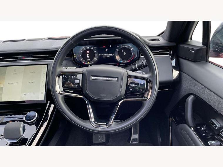 13.1" Touchscreen, 3D 360 degree surround camera with wade sensing, Adaptive cruise control with steering assist, Android Auto, Apple car play, Blind spot assist, Bluetooth connectivity streaming, Driver condition response, Eco mode, Electric power assisted steering (EPAS), Front and rear parking aid, Head up Display, Interactive Driver display instrument cluster, Lane departure warning system, Lane keep assist, Park assist, Push button start, Rear collision monitor, Rear traffic monitor, Remote, Traffic sign recognition with adaptive speed limiter, Trip computer, Wireless device charging with phone signal booster, 8 speed automatic transmission, Adaptive dynamics, All wheel drive system, Automatic access height, Terrain Response 2, DAB Radio (Digital Audio Broadcasting), Incontrol protect - SOS emergency call with automatic collision detection, optimised assistance call and Incontrol remote app essential, Meridian sound system, Pivi pro connected, USB/aux input socket, Adaptive brake lights, Automatic headlight levelling, Automatic headlights, Centre high mounted stop light, ClearSight interior rear view mirror, Digital LED headlights with signature DRL and image projection, Electric heated/power fold memory door mirrors with approach lights and auto dimming driver side, Electric windows with one touch open/close and anti trap, Flush deployable exterior door handles, Follow me home lighting, Front and rear recovery eyes, Headlight power wash, Heated rear window, Heated washer jets, Heated windscreen, Illuminated metal treadplates with Autobiography script, Integrated twin tailpipes, LED tail lights, Metal load space scuff plates, Rain sensing windscreen wipers, Rear animated directional indicators, Rear fog lights, Rear side wing doors, Rear wash/wipe, Remote window closing, Side repeater indicators in mirror, Sliding panoramic roof with electric sunblind, Trailer stability assist, Winter wiper park position, 22 way heated and ventilated front and power recline rear seats, massage electric memory front seats and front and rear winged headrests, 3 seat bench in 2nd row, 60:40 seats with power recline and loadthrough, Air quality sensor, Auto air recirculation, Bright metal foot pedals, Centre console with armrest, Customer configurable single point entry, Driver's footrest, Easy boot loading, Ebony console door armrests and seatbelts, Electric adjustable steering column, Four zone climate control, Front and rear cupholders, Front door storage space, Front map lights, Front seat back map pockets, Front stowage pocket, Front/rear passenger grab handles, Gearshift paddles, Heated steering wheel, Isofix child seat preparation, Loadspace cover, Loadspace floor partition, Loadspace Hook, Loadspace light, Loadspace mounting provisions, Lockable glovebox, Luggage tie-downs in loadspace, Multifunction steering wheel, Pollen filter, Power socket, Premium cabin lighting, Rear centre armrest, Rear ISOFIX, Single front passenger seat, Soft close doors, SV bespoke carpet mats, Three 12V accessory power outlets, Twin blade sunvisors with Illuminated vanity mirrors, Upper secondary glovebox, Online pack with data plan - Range Rover Sport, 3 point seatbelts on all seats, Anti-lock braking system (ABS), Brake pre-fill technology, Configurable autolock, Cornering brake control (CBC), DSC - Dynamic Stability Control, EBD - Electronic brakeforce distribution, Electric parking brake, Electronic traction control, Emergency braking, Front seatbelt pretensioners, Front side airbags, Height adjustable front seatbelts, Hill descent control, Hill launch assist, Illuminated seat belt buckles, Low traction launch, Occupant protection assist, Passenger seat occupant detector with front airbags, Power operated child locks, Roll stability control, Seatbelt warning, TPMS (Tyre pressure monitoring system), Immobiliser, Intrusion sensor, Keyless entry, Locking wheel nuts, Perimetric and volumetric anti theft alarm, Remote locking, Moonlight noble chrome interior finishers,