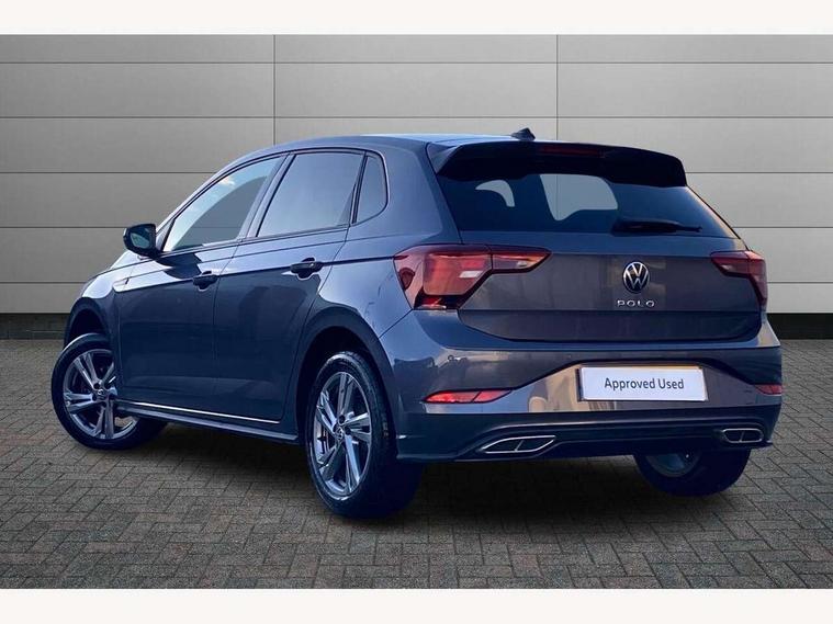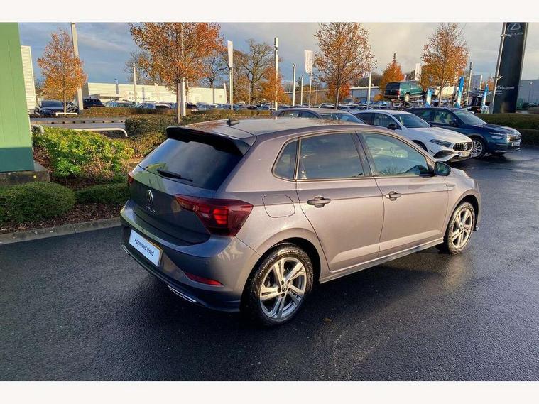 Adaptive cruise control without follow-to-stop and speed limiter, Bluetooth mobile phone interface, Digital Cockpit Pro with 10.25" Display, Driver alert system, Dynamic road sign display, Emergency call service, Power assisted speed sensitive steering, Preparation for We connect and We connect plus, Speedo and rev counter, electronic odometer, trip, service interval display and fuel gauge, Standard rear axle, Travel Assist - Lane keeping system and traffic jam assist, Travel assist including emergency assist, Trip computer, Warning signal and warning light for front and rear seatbelts not fastened, Washer fluid level indicator, Wireless app connect, Front wheel drive, Rear shock absorpion, Start-stop system with battery regeneration (recuperation - energy recovery during braking), DAB Digital radio, Diversity antenna for FM reception, Front and rear 6 speakers, Body colour bumpers, Body colour door handles, Body colour door mirrors, Electric front windows, Front fog lights with static cornering function, Front scuff plates with R-Line logo, Heat insulating darkened glass in side and rear windows, Heat insulating glass windscreen, Power folding adjustable/heated exterior mirrors and front passenger exterior mirror lowering function, Rear electric windows, Rear fog light, Rear side wing doors, Rear tinted glass from B-pillar backwards approx 65% tinted, Rear windscreen washer and wiper with interval delay, Third brake light, 12V power socket in centre console, 2 USB-C ports in the front, 2 USB-C charging sockets on the center console in the rear, 3 rear head restraints, 60/40 split folding rear seat and rear seat bench not split, Air care climatronic air conditoning system with active combination filter and 2-zone temperature control, Black roof lining, Ceramique headliner, Chrome plated radiator grille inserts, air vent surrounds and light switch surrounds, Door and side trim panel, Driver and front passenger seat height adjustment, Driver/passenger sunvisors with illuminated vanity mirrors, Front + rear carpet mats, Front centre armrest, Front footwell illumination, Front seat backrest storage pockets, Front sports comfort seats, Handbrake lever handle in leather, Isofix child seat preparation easy-fit (for two outer rear seats, and front passenger seat) compatible with I-size, Karoso artvelours cloth upholstery, Leather trimmed gear knob, LED interior light with switch off delay and dimmer, 2 reading lights front and rear, Luggage compartment cover, Luggage compartment floor, Luggage compartment lighting, Lumbar adjustment for front seats, Multifunction steering wheel, Single front passenger seat, Stainless steel pedals, Standard pedal cluster, Light and sight pack - Polo R-Line/Black Edition, 3 point height adj front seatbelts + pretensioners, 3x3 point rear seatbelts, ABS, Driver and front passenger airbag with front passenger airbag deactivation, Drivers and front passengers safety optimised head restraints, ESC (Electronic stability control) + EDL (Electronic Differntial lock) and ASR (Traction control), Extended and predictive pedestrian/ cyclist protection, Front curtain and side airbags with center airbag, Hill hold control, Manual child lock in rear doors, Single tone horn, Tyre pressure loss indicator, Alarm with interior protection, Anti-theft alarm system with interior monitoring, backup horn, and towing protection, Anti-theft wheel bolts, Electronic engine immobiliser, Chrome applications on rotary light, mirror adjustment, window regulator switches, outlet with frame in black, Dark grey anodised matt decorative inserts in dash and front door panels, Low rolling resistance tyres,
