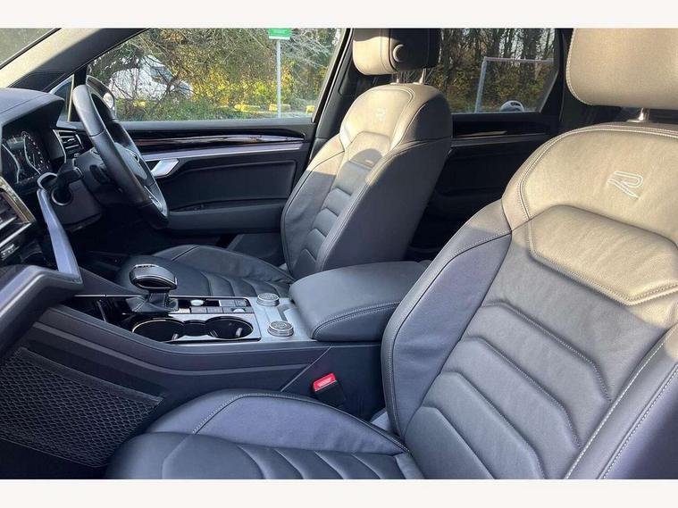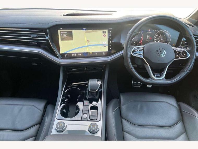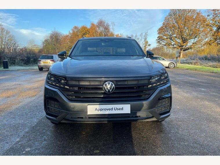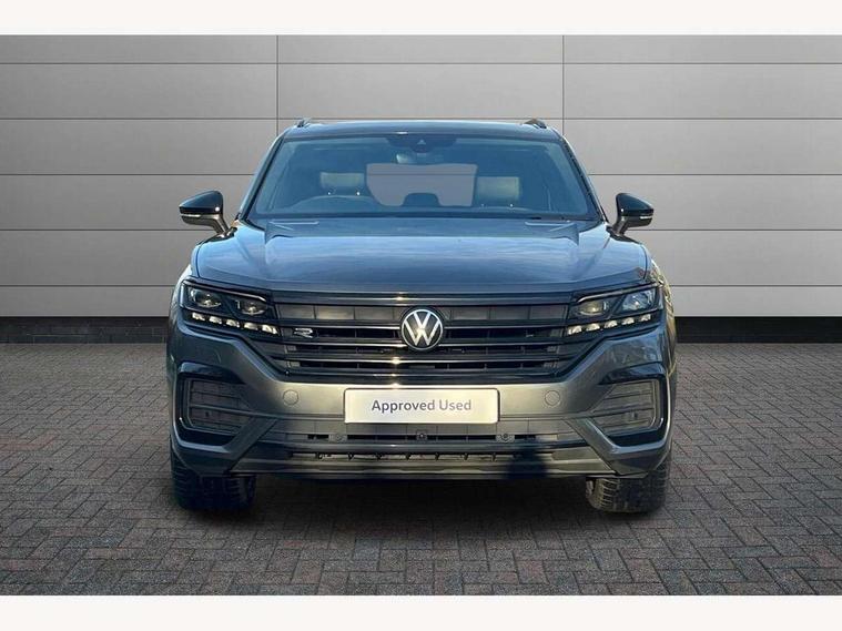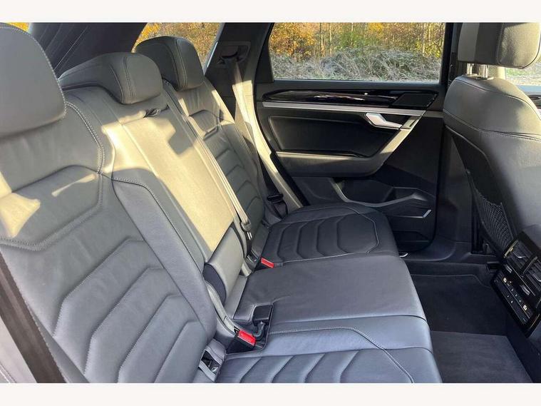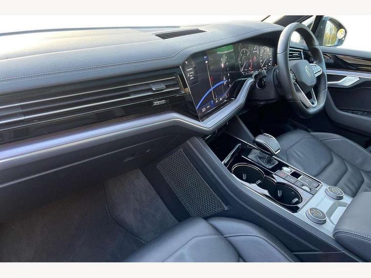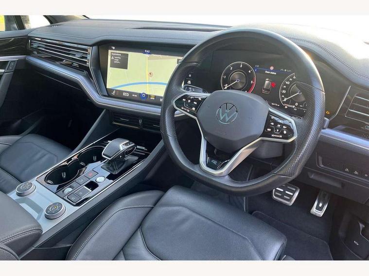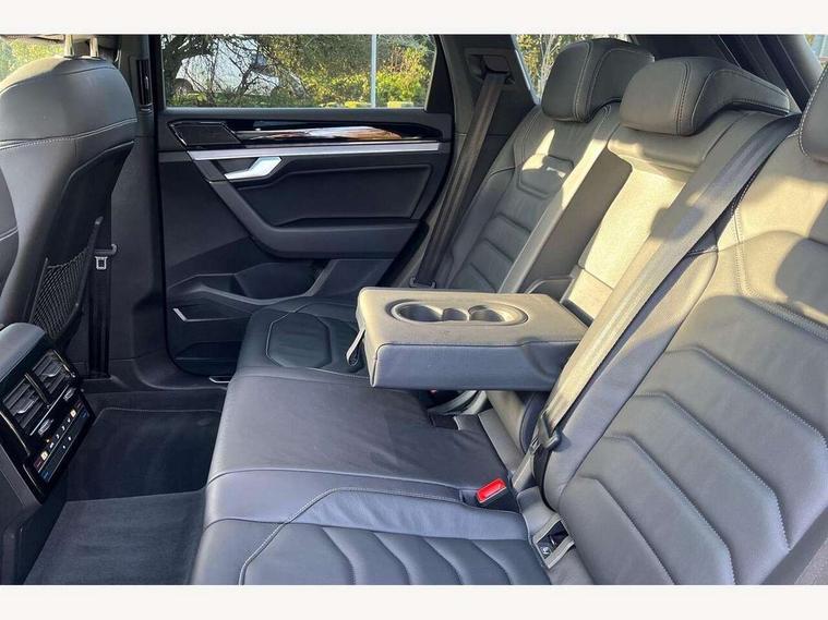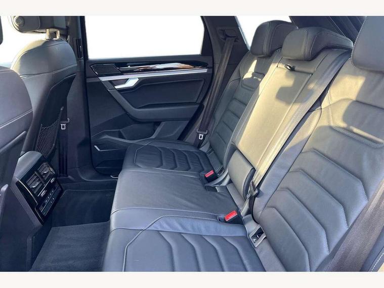 2D/3D map view, ACC - Adaptive cruise control with front assist, forward collision warning, distance monitoring, city emergency brake and speed limiter, Apple car play/Android Auto, Audible and visual fatigue detection system, Bluetooth hands free telephone connection, Car information display, Drive select with Damper control, Driver alert system, Driver profile selection, Dynamic road sign display camera controlled system with visual warning for traffic and road signs, eCall emergency system, Fully electric tailgate + keyless entry and start, Instrument cluster, MirrorLink, Multifunction camera, Multifunction computer premium with 7" colour display, One touch indicators with repeat function, Service interval indicator, Speed sensitive power steering, Start/stop system with regenerative braking, Tailgate power latch, Think blue trainer driver tips and journey analysis, Traffic sign recognition, Voice control system, Wireless Smartphone charger, 24 litre AdBlue tank, Torsen limited slip differential, DAB Digital radio, Dynamic navigation based on TMC+, Gesture control for infotainment system, Multi device interface (MDI) with illuminated USB-C connection, Music playback - MP3, WMA and AAC files, SD card slot, Simultaneous pairing of 2 compatible mobile devices, SMS functionality - read, compose and send SMS messages using touch-screen display, Title and cover art display, Volkswagen media control, Adaptive low beam for urban and motorway use, Auto dimming rear view mirror, Automatic coming/leaving home lighting function, Automatic headlights, Black anodised roof rails, Black door mirrors, Black rear diffuser, Black side window surrounds, Black upper and lower grille louvres extending into headlights and radiator grille, Body colour door handles, Body coloured wheel arches, C signature gloss black front air intake, Chromed tailpipe on the left and right integrated in the bumper with trapezoid design, Dusk sensor, Dynamic headlight range control, Electric front tilt/slide panoramic sunroof and fixed rear sunroof, Electrically power adjustable, heated, folding, auto dimming, front passenger exterior door mirror lowering function, Front and rear electric windows, Galvanised body, Gloss black finish B pillar, Gloss black rear diffuser, Headlight washers, Heat insulating glass in side and rear windows, Heated windscreen washer jets, IQ.Light-LED matrix headlight, daytime running light with dynamic cornering light and indicator, LED 3rd brake light, LED rear fog light, LED rear number plate lights, Plastic scuff plates in door apertures, Poor weather light, Puddle lights, Rain sensor, Rear side wing doors, Rear wiper, 12V socket in front and rear centre console and boot, 2 Coat hooks on B pillar, 3 rear head restraints, 3 seat bench in 2nd row, 3 spoke sport heated leather multi-function sports steering wheel with gear shift paddles - generation 2, 4 way adjustable front head restraints, 4 way electric lumbar support for driver and front passenger, 4 zone climate control, 40:20:40 split folding slide/recline rear seat, B pillar vents, Black lower edge of door extending sills, Branded points of interest, Double sun visor for drivier and passenger with LED illuminated vanity mirrors, Electric luggage compartment cover, Folding rear centre armrest with 2 cupholders, Front + rear carpet mats, Front centre armrest with storage box, Gear shift indicator, Height/reach adjust steering wheel, Illuminated air conditioned glovebox, Isofix preparation for 2 rear child seats, Jack and tool kit, Leather trimmed gear knob with gloss black inlay/aluminum trim, Leatherette door trim, LED luggage compartment lighting, Load through provision, Luggage compartment with load lashing rings, Plastic loading edge protection, Rear seat remote release levers, Single front passenger seat, Soul black headlining, Stainless steel pedals, Innovision cockpit pack - Touareg, 3 point front seatbelts with pre-tensioners, ABS, Active bonnet, Automatic post collision braking system, Curtain airbags, Driver/Front Passenger airbags, EBD + Brake Assist, EDL, Electronic parking brake with auto hold, ESC with ASR, Front seat side impact airbags, Hill descent control, Hill start assist, Passenger airbag deactivate switch, Seatbelt warning lamp and buzzer, Three 3 point rear seatbelts, Two tone horn, Volkswagen roadside assistance, Warning triangle and first aid kit, Alarm with interior monitoring in cab, backup horn and towing protection, Child security locks for front and rear doors, Electronic engine immobiliser, Remote central locking, Black decorative trims on the side windows, High gloss black centre console,