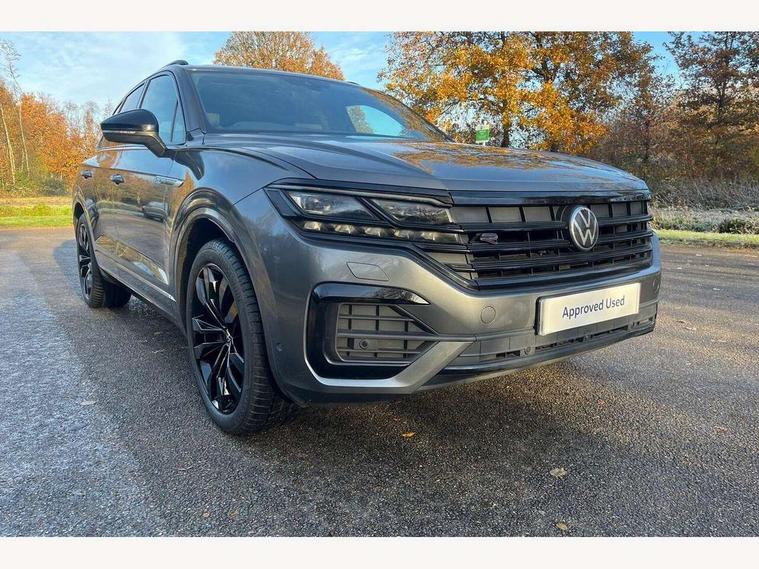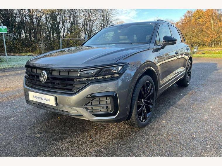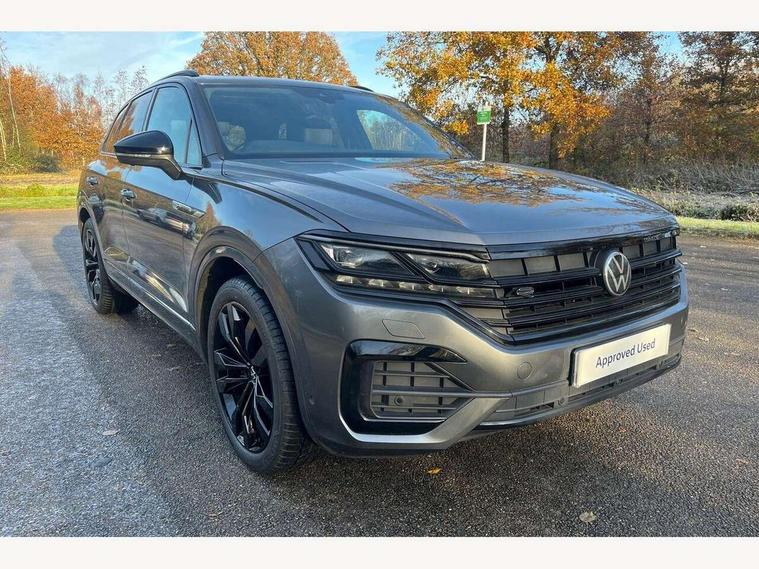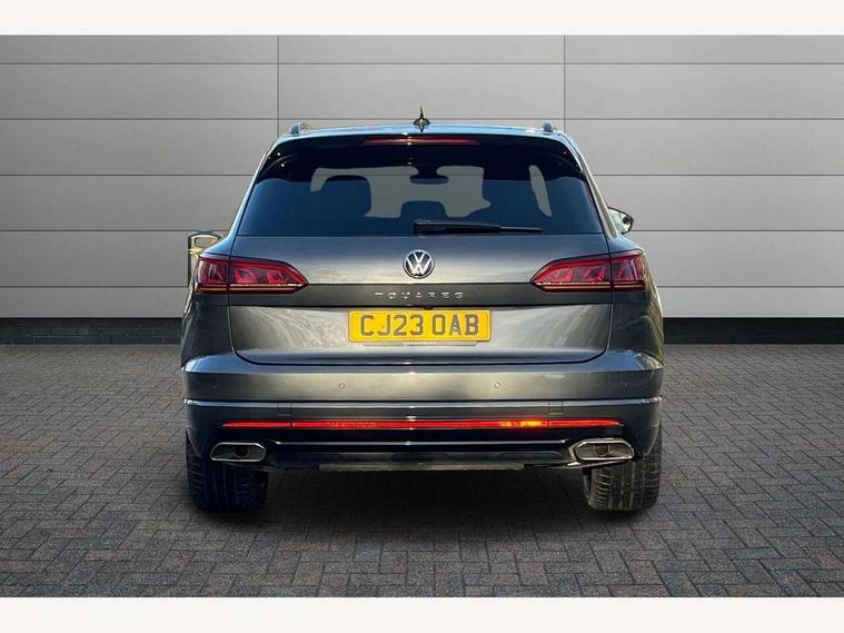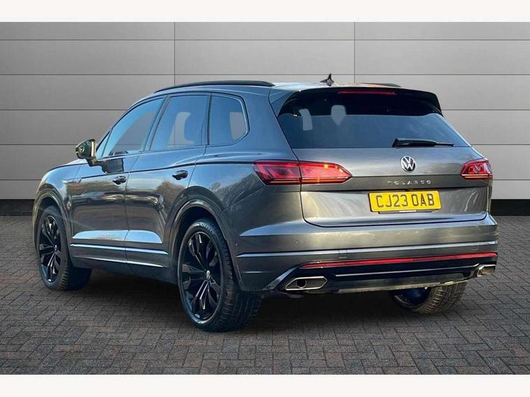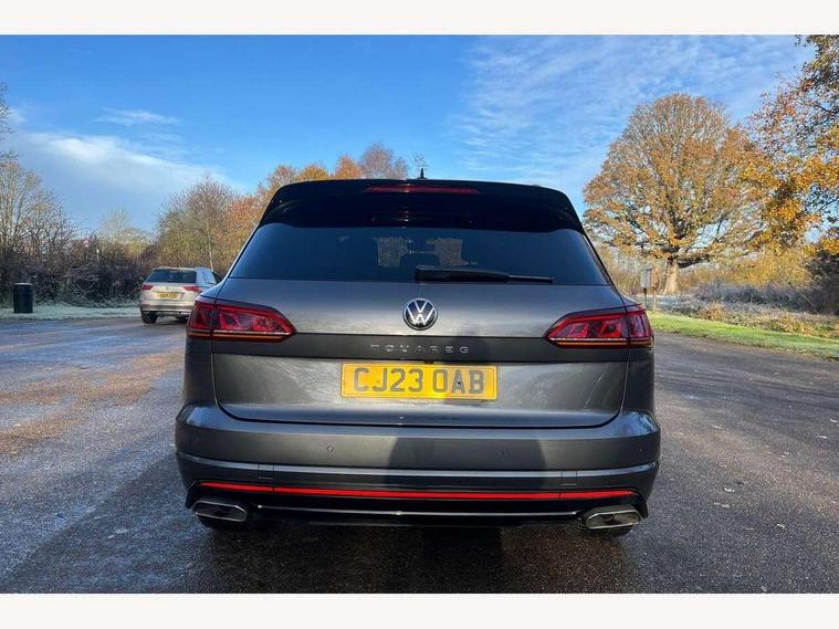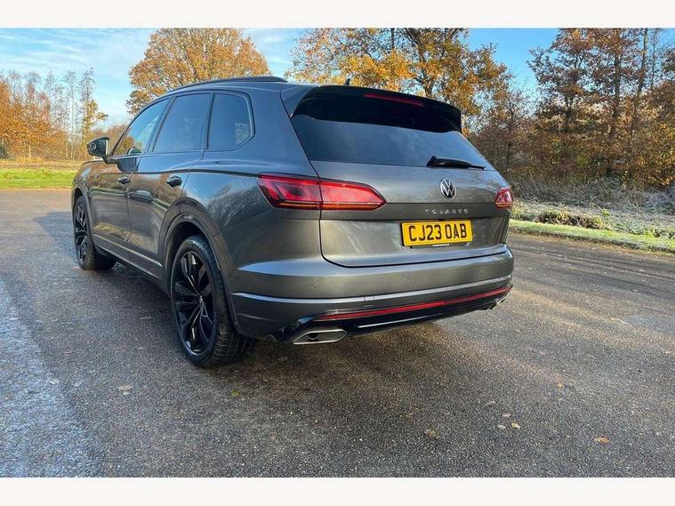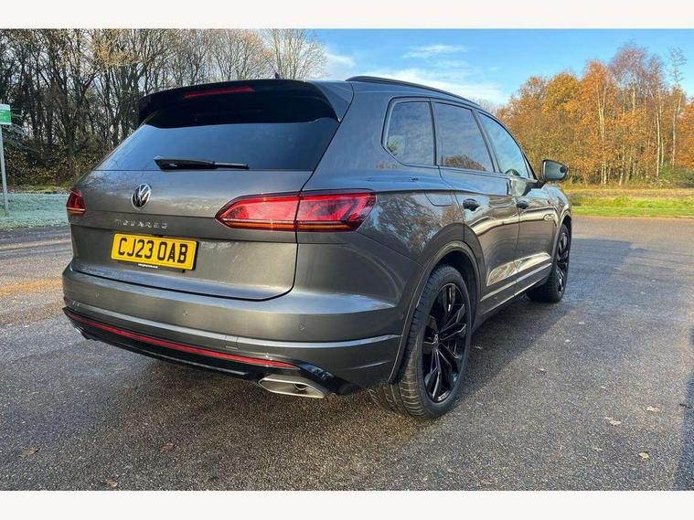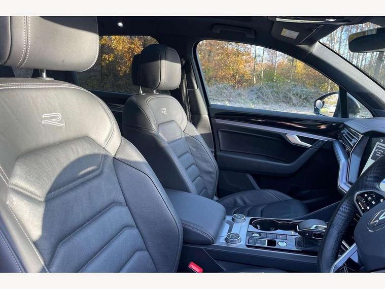 2D/3D map view, ACC - Adaptive cruise control with front assist, forward collision warning, distance monitoring, city emergency brake and speed limiter, Apple car play/Android Auto, Audible and visual fatigue detection system, Bluetooth hands free telephone connection, Car information display, Drive select with Damper control, Driver alert system, Driver profile selection, Dynamic road sign display camera controlled system with visual warning for traffic and road signs, eCall emergency system, Fully electric tailgate + keyless entry and start, Instrument cluster, MirrorLink, Multifunction camera, Multifunction computer premium with 7" colour display, One touch indicators with repeat function, Service interval indicator, Speed sensitive power steering, Start/stop system with regenerative braking, Tailgate power latch, Think blue trainer driver tips and journey analysis, Traffic sign recognition, Voice control system, Wireless Smartphone charger, 24 litre AdBlue tank, Torsen limited slip differential, DAB Digital radio, Dynamic navigation based on TMC+, Gesture control for infotainment system, Multi device interface (MDI) with illuminated USB-C connection, Music playback - MP3, WMA and AAC files, SD card slot, Simultaneous pairing of 2 compatible mobile devices, SMS functionality - read, compose and send SMS messages using touch-screen display, Title and cover art display, Volkswagen media control, Adaptive low beam for urban and motorway use, Auto dimming rear view mirror, Automatic coming/leaving home lighting function, Automatic headlights, Black anodised roof rails, Black door mirrors, Black rear diffuser, Black side window surrounds, Black upper and lower grille louvres extending into headlights and radiator grille, Body colour door handles, Body coloured wheel arches, C signature gloss black front air intake, Chromed tailpipe on the left and right integrated in the bumper with trapezoid design, Dusk sensor, Dynamic headlight range control, Electric front tilt/slide panoramic sunroof and fixed rear sunroof, Electrically power adjustable, heated, folding, auto dimming, front passenger exterior door mirror lowering function, Front and rear electric windows, Galvanised body, Gloss black finish B pillar, Gloss black rear diffuser, Headlight washers, Heat insulating glass in side and rear windows, Heated windscreen washer jets, IQ.Light-LED matrix headlight, daytime running light with dynamic cornering light and indicator, LED 3rd brake light, LED rear fog light, LED rear number plate lights, Plastic scuff plates in door apertures, Poor weather light, Puddle lights, Rain sensor, Rear side wing doors, Rear wiper, 12V socket in front and rear centre console and boot, 2 Coat hooks on B pillar, 3 rear head restraints, 3 seat bench in 2nd row, 3 spoke sport heated leather multi-function sports steering wheel with gear shift paddles - generation 2, 4 way adjustable front head restraints, 4 way electric lumbar support for driver and front passenger, 4 zone climate control, 40:20:40 split folding slide/recline rear seat, B pillar vents, Black lower edge of door extending sills, Branded points of interest, Double sun visor for drivier and passenger with LED illuminated vanity mirrors, Electric luggage compartment cover, Folding rear centre armrest with 2 cupholders, Front + rear carpet mats, Front centre armrest with storage box, Gear shift indicator, Height/reach adjust steering wheel, Illuminated air conditioned glovebox, Isofix preparation for 2 rear child seats, Jack and tool kit, Leather trimmed gear knob with gloss black inlay/aluminum trim, Leatherette door trim, LED luggage compartment lighting, Load through provision, Luggage compartment with load lashing rings, Plastic loading edge protection, Rear seat remote release levers, Single front passenger seat, Soul black headlining, Stainless steel pedals, Innovision cockpit pack - Touareg, 3 point front seatbelts with pre-tensioners, ABS, Active bonnet, Automatic post collision braking system, Curtain airbags, Driver/Front Passenger airbags, EBD + Brake Assist, EDL, Electronic parking brake with auto hold, ESC with ASR, Front seat side impact airbags, Hill descent control, Hill start assist, Passenger airbag deactivate switch, Seatbelt warning lamp and buzzer, Three 3 point rear seatbelts, Two tone horn, Volkswagen roadside assistance, Warning triangle and first aid kit, Alarm with interior monitoring in cab, backup horn and towing protection, Child security locks for front and rear doors, Electronic engine immobiliser, Remote central locking, Black decorative trims on the side windows, High gloss black centre console,