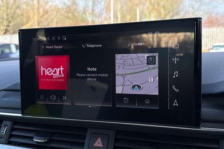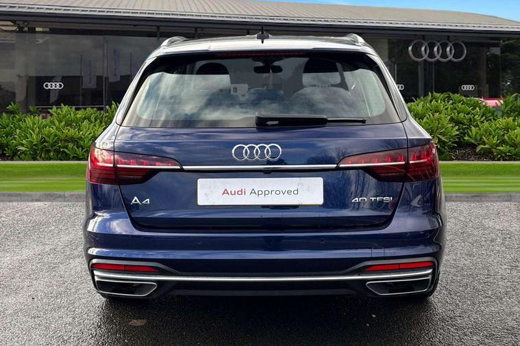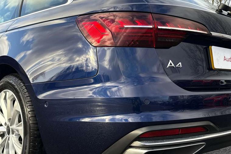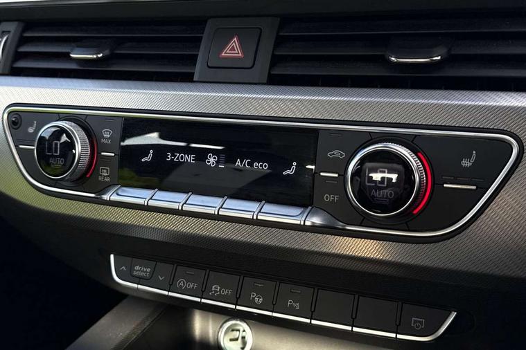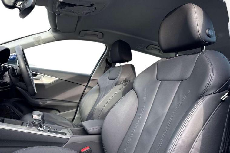 Audi connect safety and service (e-call), Audi drive select, Audi smartphone interface, Audi virtual cockpit, Automatic start-stop system with coasting functionality and efficiency programme, Bluetooth interface, Camera based traffic sign recognition, Electromechanical power steering, Email, calendar and text messages displayed via MMI, Front and rear parking sensors, Lane departure warning, MMI Navigation plus with MMI touch includes 10.1" high resolution colour MMI display, 3D map, Power operated tailgate, Rear view camera, Voice control system, 54 litre fuel tank, Comfort dynamic suspension, 2 USB charging ports, 8 passive loudspeakers, DAB digital radio reception, Aluminium roof rails, Auto dimming rear view mirror, Body colour door handles, Body colour side sill trim, Body coloured door mirrors, Electric adjustable/heated/folding door mirrors with auto dimming, LED headlights and rear lights with LED daytime running lights, LED third brake light, Matt aluminium silver tailpipe trim, Rain and light sensors, Rear side wing doors, Rear wiper, S Line roof edge spoiler, Sport front and rear bumpers with side skirts, Variable intermittent front wash/wipe, Windscreen with acoustic glazing, 3 spoke high multi-function leather sport steering wheel with paddle shift and height and reach adjustable, 4 way electric lumbar support for driver and front passenger, 40/20/40 split folding 3 rear seat bench in 3 parts with rear centre armrest, Black carpets, Contrast stitching on seats, steering wheel and gear lever gaiter, Deluxe 3 zone electronic climate control, Door sill trims with aluminium inlay, Electric load area cover, Front and rear head restraints, Front centre armrest, Heated front seats, ISOFIX child seat mounting and top tether, Manual seat adjustment, Single front passenger seat, Twin leather upholstery + front sports seats, High gloss package - A4, LED Interior light pack - A4/S4, 3 rear seatbelts, 6 airbags - Driver, front passenger, curtain and side windows, Attention and drowsiness assist, Electronic Stabilisation Control (ESC) including ABS, ASR and EDL, Hill hold assist, Multi collision brake assist, Pop-up bonnet for pedestrian protection, Pre sense city, Rear door child safety locks, Seatbelt monitoring, Warning triangle and first aid kit, Anti theft alarm, Anti theft wheel bolts, Central locking, Keyless Go, Aluminium ellipse silver inlays, Tool kit, Tyre repair kit,