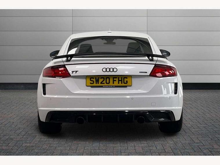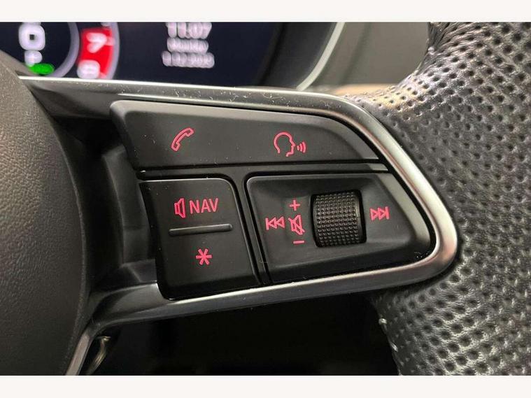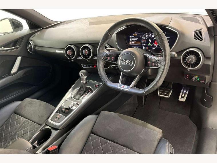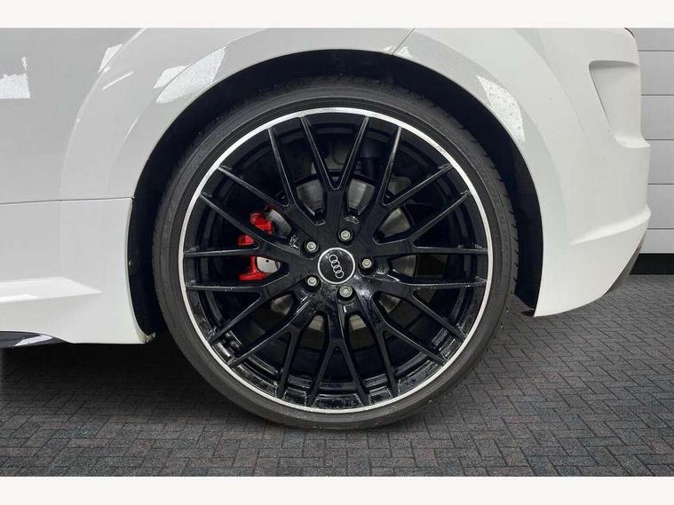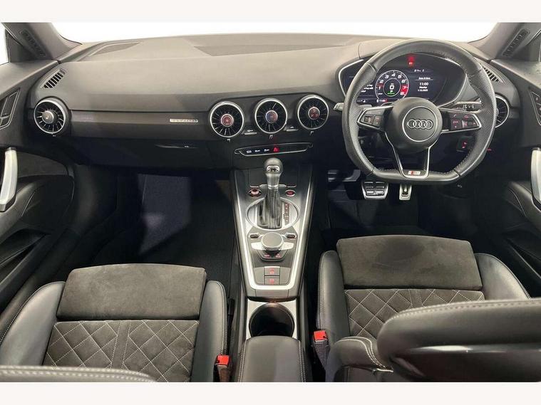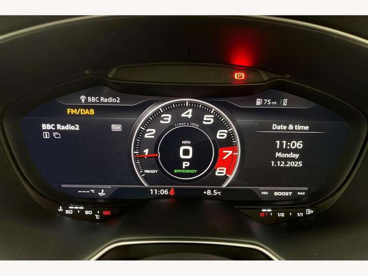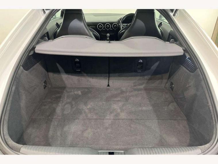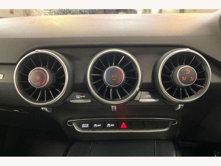 Audi active lane assist, Audi drive select with 4 Pre configured modes, Cruise control + speed limiter, MMI touch panel, Mobile phone preparation with bluetooth interface, Progressive power assisted steering, Service interval indicator, Start/Stop system with energy recuperation, TP memo, S line sports suspension, AM/FM radio, Audi music interface, Bluetooth audio streaming, DAB Digital radio, MMI Radio with CD player and SD/XC card slot, Auto dimming rear view mirror, Auto headlight range control, Black chrome tailpipe, Black door mirrors, Dark privacy glass from B-pillar backwards, Dynamic rear indicators, Electric folding door mirrors, Electric front windows, Front fog lights, Green tinted heat insulating glass, Headlight wash system, LED daytime running lights, LED headlights with LED rear lights + dynamic rear indicators, Light and rain sensors, Sunband for windscreen, 12V socket, 3 spoke flat bottomed high multi-function leather sport steering wheel with gearshift paddles, 4 way electric lumbar support for driver and front passenger, Air conditioning, Black headlining, Extended aluminium look with stainless steel pedals, Front centre armrest, Front super sports seats, Heated front seats, Height adjustable driver's seat, Height adjustable front head restraints, Height/reach adjust steering wheel, ISOFIX child seat mounting for front passenger seat with airbag deactivation, Perforated leather gearknob, Rear head restraints, Rear top tether child seat ISOFIX attachment, Split folding rear seat, Top tether anchor plate for isofix child seat, Black styling pack - TT, Non smoking pack - TT/TT RS, 3 point front seat belts, ABS, ASR traction control, Brake energy regeneration, Curtain airbags, Driver and front passenger airbag with front passenger airbag deactivation, EDL traction control, Electromechanical parking brake, ESP, First aid kit, Front side airbags, Head airbags, Hill hold assist, Seatbelt warning, Tyre pressure warning, Warning triangle, Anti theft alarm, Anti theft wheel bolts, Immobiliser, Keyless Go, Remote central locking, Matt brushed aluminium inlays, Tool kit, Tyre repair kit,