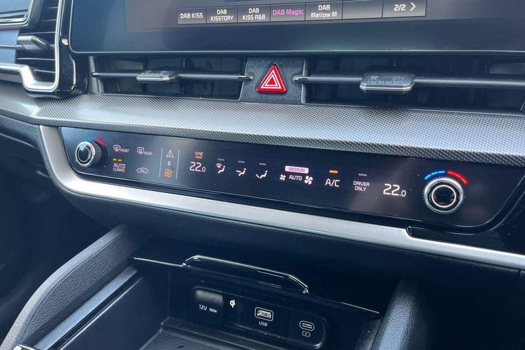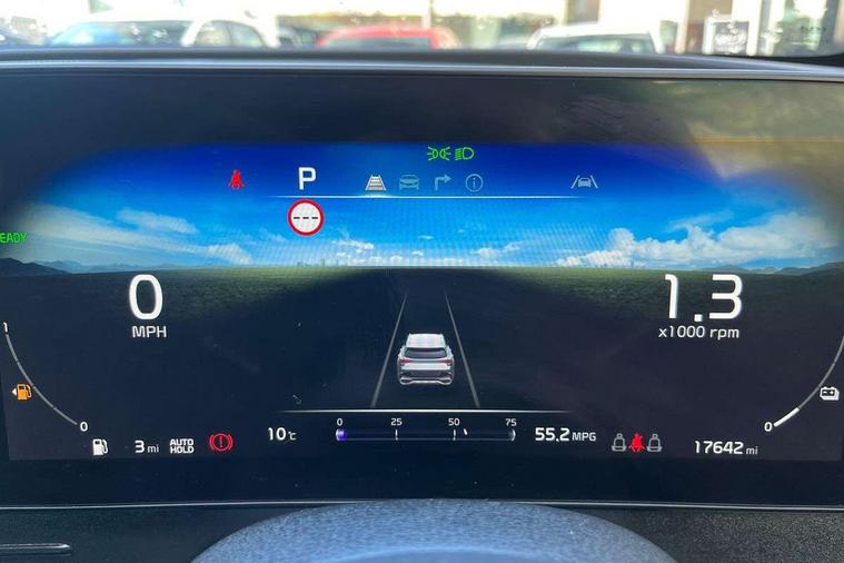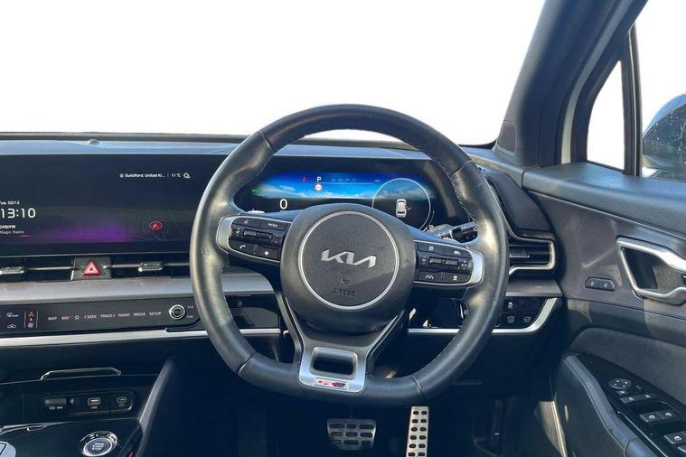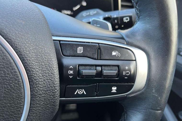 12.3" Display with navigation, 12.3" supervision colour cluster display, 360 degree around view monitor, Apple car play/Android Auto with voice control, Blind spot collision avoidance assist, Blind spot view monitor, Drive mode selector, E-call, Forward collision avoidance assist (FCA) - city/pedestrian/cyclist/junction covering, Front and rear parking sensors, Highway Driving Assist (HDA), Intelligent speed limit assist, Kia Connect (UVO), Lane Following Assist (LFA), Lane keep assist, Low washer fluid warning, Parking collision avoidance assist (PCA), Remote smart parking assist, Reversing camera system integrated into centre fascia screen, Smart cruise control with stop and go functionality, Smart power tailgate, Speed sensitive power steering, Trip computer, Windscreen washer level indicator, Wireless Smartphone charger, Intelligent Stop and Go, Bluetooth audio streaming, DAB Radio with MP3, Harman Kardon premium sound system, Rear USB port, Steering wheel mounted audio controls, USB C type charging ports on centre console, USB C type charging ports on side of front seats, USB port for connection of a media device, All round electric windows with drivers and front passenger auto up/down function, Automatic headlight control system, Automatic window defogger, Backlite glass heated with timer, Body colour and black bumper with silver accents, Body colour exterior door handles, Body colour radiator upper garnish and door garnish, Dual LED adaptive headlamps, Electric panoramic glass sunroof (Electric one touch with safety function), Electrically adjustable/heated/folding door mirrors with LED indicators, Front and rear skid plate - chrome, Gloss black door mirrors, Gloss black radiator grille, Gloss black side sill and wheel arch body mouldings, Glossy black roof rack, High beam assist, Interior electrochromic mirror, LED daytime running lights, LED front fog lamps, LED High mounted stop light, LED rear combination lamp, Rain sensing wipers with aero blades, Rear fog lamp, Rear privacy glass, Rear side wing doors, Rear spoiler, Rear wiper, Satin finished beltline, Silver coloured inserts to bumpers, Tinted rear glass, Trailer stability assist, 10 way driver/8 way passenger electrically power adjustable seats, 12V power socket in front centre fascia and luggage compartment, 3 seat bench in 2nd row, 3 x passenger assist grips, 40/20/40 split folding rear seat, All-round height adjustable headrests, Ambient lighting, Black headlining, Centre console storage box, Cupholders in rear armrest, D-Shaped sports leather steering wheel and perforated inserts with GT-Line logo, Door courtesy lamps, Drink holder at centre armrest, Driver and front passenger side sunvisors with illuminated vanity mirrors, Driver seat memory function, Drivers seat power lumbar support, Front and rear door storage, Front seat and rear pockets, Front/rear centre armrests, Gear shift indicator, Glovebox illumination, Heated front and outer rear seats, Heated steering wheel, Interior door lock/unlock function, ISOFIX Child seat top tethers and anchor fixings outer rear seats, LED interior personal lamp, LED lighting in overhead console, Luggage area LED light, Luggage area load cover, Luggage net with hooks, Metal paint interior door handles, Paddle shift controls, Rear cabin light, Rear coat hooks, Single front passenger seat, Sports pedals, Suede leather upholstery, Three zone climate control, Tilt/telescopic adjustable steering wheel, Ventilated front seats, Ventilation ducts to rear compartment, Active front headrests, All round 3-point seatbelts, Anti-lock braking system (ABS), Dual front side airbags, Dual horn, Electronic parking brake, Electronic stability control with downhill brake control, Front passenger airbag cut-off switch, Front seatbelt pretensioners + load limiters, Height adjustable front seatbelts, Hill start assist control (HAC), Impact sensing auto door unlocking, Multi collision brake assist, Rear door child safety locks, Rear seat alert system, Traction control, Twin curtain airbags, Twin front airbags, Tyre pressure monitoring system, Advanced anti-theft system including immobiliser and alarm, Door deadlocks, Engine Start/Stop Button with Smart Entry System, Locking wheel nuts, Speed sensitive auto door locking, Visible vehicle identification number, Aluminium pattern finish centre fascia and door garnish, 18" GT-Line alloy wheels, Michelin tyres, Tyre mobility kit,