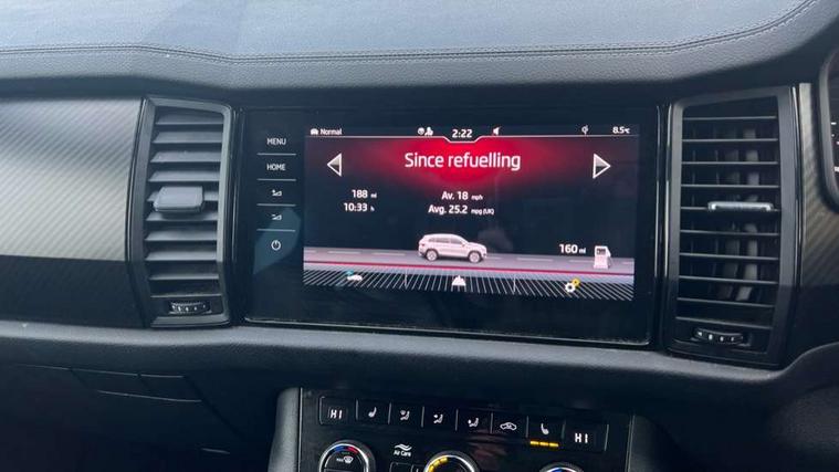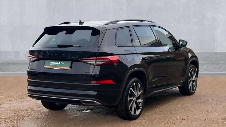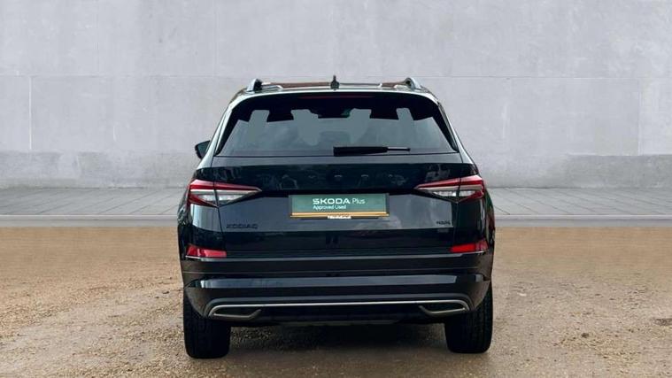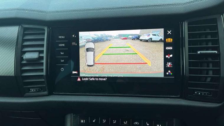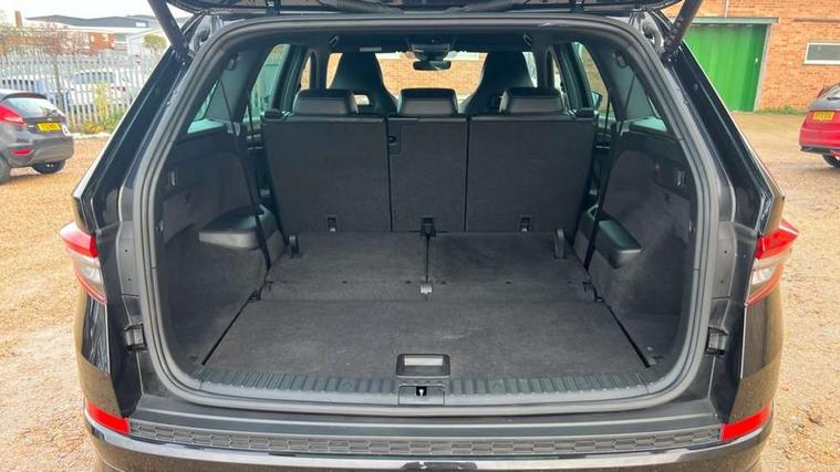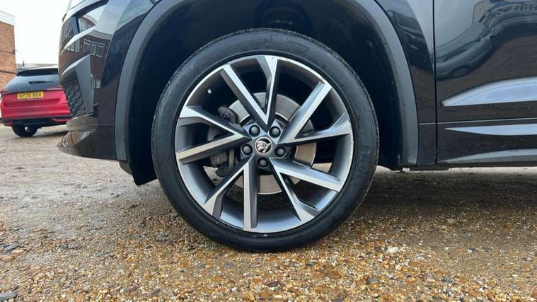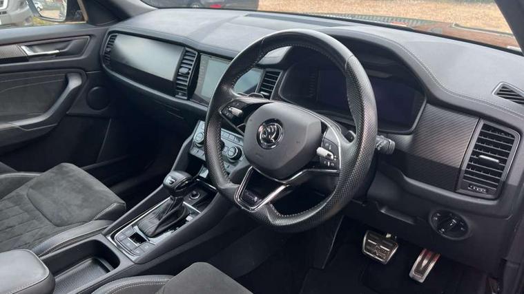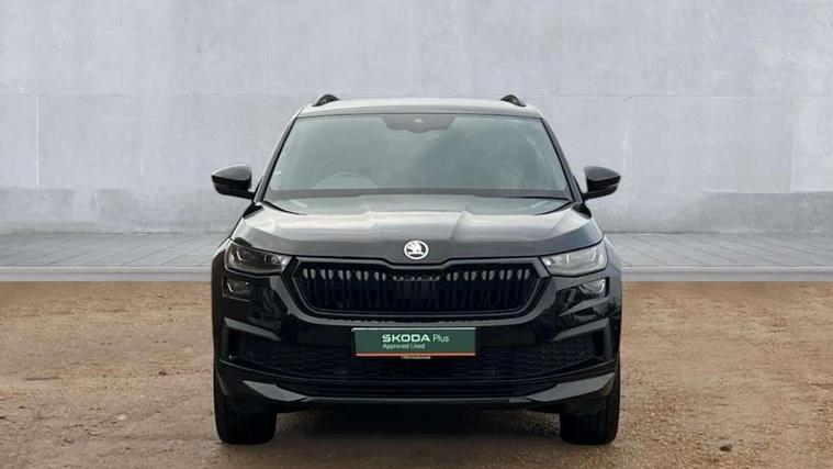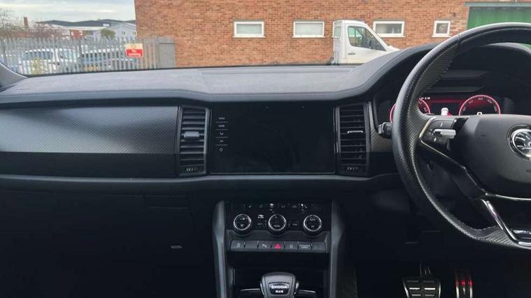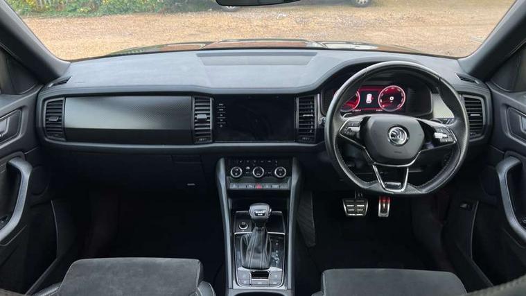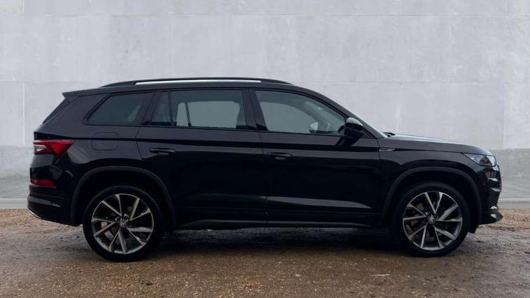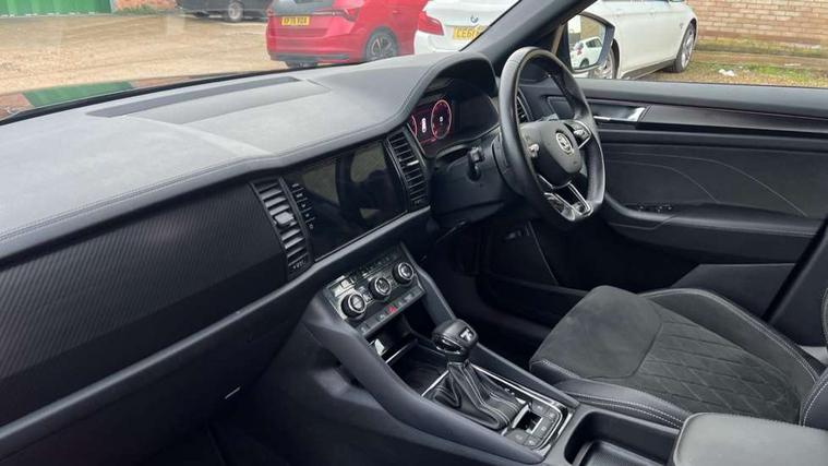 Bluetooth system, Columbus satellite navigation with 9.2" touchscreen, integrated Wi-Fi, web radio, Digital voice enhancement, e call+, ECO Stop/start function, Exterior temperature indicator, Progressive steering, Rear view camera, Smartlink wireless for apple carplay and wired for android auto, Speed limiter, Tailgate unlocking from outside, USB C Port x 2 in front centre console, Virtual Cockpit - 10.25" digital display with additional sports design, Wireless charging, 8 Speakers, DAB Digital radio, Aero front windscreen wipers with intermittent function, Aero rear window wiper, Auto dimming rear view mirror, Black roof rails, Black sports styling including front grille and window surrounds, Black wheel arch surrounds, Body colour bumpers, Body colour door handles, Electric adjustable/heated/folding door mirrors, driver side auto dimming with boarding sports and memory function, Electric front and rear windows, Extended rear spoiler with finlets in gloss black, Front fog lights, Full LED matrix headlights with AFS (adaptive front light system), cornering function and AWL (all weather lighting system), Gloss black door mirrors, Headlight washers, Heated rear window, Invisible tailpipe, LED daytime running lights, LED rear fog light, LED third brake light in rear spoiler, Light assistant (coming/leaving home/tunnel light), Off-road style lower front bumper element, Privacy glass, Rain and light sensors, Rear diffuser, Rear LED lights (high functionality) with welcome effect and dynamic indicators, Rear side wing doors, Safety reflectors on front and rear doors, Sportline badge on front fender, Sports front and rear bumpers including lower rear chrome strip, Tailgate lettering in Black, Window control switches with black trim, Without engine designation, 12V socket in boot, 2 rails with 2 hooks, 2 seat bench in 3rd row, 3 seat bench in 2nd row, 4 foldable roof handles with rear coat hooks, 60:40 foldable rear seat with sliding adjustment and backrest angle adjustment, Aluminium pedals, Black roof headlining, Bottle holders in door panel in the 1.5 litre front and 1 litre rear, Cargo storage compartments, Chrome headlight control button, Chrome interior door handles, Coat hooks on B pillar, Covered storage compartment on driver side, Decorative door sill covers, Front centre armrest with storage compartment, cup holder and 12V socket, Front courtesy lights, Gear shift lever with chrome frame and black gloss insert, Grey stitching in front and rear armrests and door armrests + door inserts, Height adjustable front headrests, Illuminated and cooled glovebox, Illuminated luggage compartment, Isofix child seat fittings in outer rear seats with top tether, Manually adjustable steering column, Microsuede door panels, Net programme in boot (1x horizontal Net, 2x vertical Nets), Overhead glasses storage compartment, Pollen filter, Rear centre armrest with cupholders, Single front passenger seat, Sliding trunk cover, Small Bags on the inner sides of the front backrests, Sports seats, Sunvisors with illuminated vanity mirrors, Three rear height adjustable headrests, Ticket holder on A Pillar, Umbrella in door panel, Variable boot floor, LED Interior light pack - Kodiaq, Auto door release and activation of warning lights in the event of an accident, Child locks on rear doors, Driver and front passenger airbag with knee airbag and front passenger airbag deactivation, Electronic parking brake with hill start assist, Emergency rear braking signal, ESC (incl. ABS+MSR+ASR+EDS+HBA+DSR+RBS+MKB), Front assist with autonomous emergency braking, Front side airbags with curtain airbags, Fuel cut off safety device, Height adjustable front 3 point seatbelts + pretensioners, Hill hold control, Rear disc brakes, Safety vest holder in door, Seat belt reminder for all seats, Three point rear seat belts, Two tone horn, Tyre pressure monitor, Alarm with interior monitoring and tilt sensor with safe function, Anti-theft wheel bolts, Immobiliser, Keyless entry and start system (KESSY), Remote central locking with 2 keys, Black air vent surround, Carbon finish dashboard and door inserts, Grey stitching in dashboard, 20" Vega Anthracite alloy wheels, Temporary spare wheel (space saver),