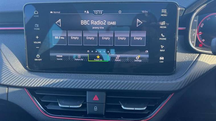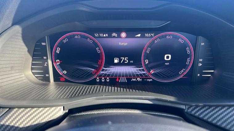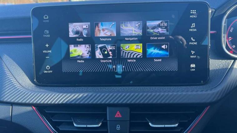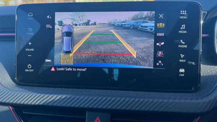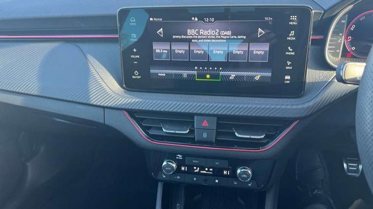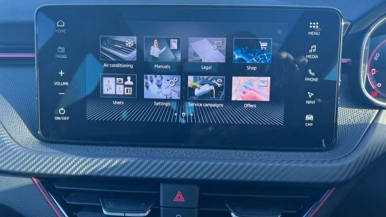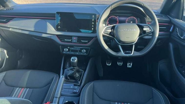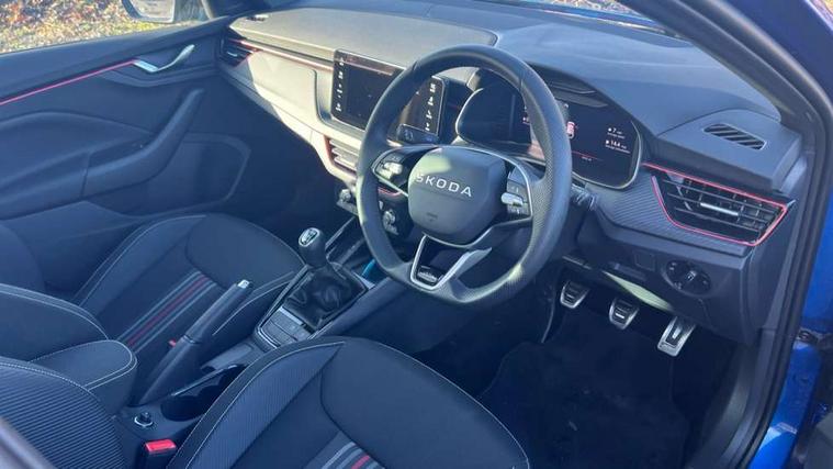 Advanced driver attention and drowsiness monitor, Bluetooth, e-Call (emergency call), Front assist system, PAS, Rear parking sensors, Rear view camera, Speed limiter, Tailgate, Traffic sign recognition, Virtual Cockpit - 10.25" digital display, Voice control system, Wireless smartlink, 4 USB C ports, 8 Speakers, 9.2" Skoda navigation display, DAB radio, Auto dimming rear view mirror, Automatic headlamp activation with Coming home and Leaving home feature, Automatic high/low beam, Automatic intermittent wipers, Black door mirrors, Black lettering on boot lid, Black radiator grille, Black rear diffuser, Black roof spoiler, Body colour bumpers, Body colour door handles, Chrome moulding around grille, Extended tailgate glass, Front and rear electric windows, Heated rear window, LED 3rd brake light, LED brake lights, LED daytime running lights, LED high beam, LED low beam, Light sensors, Monte carlo plaque, Panoramic glass roof, Privacy glass, Rear LED fog light, Rear side wing doors, Rear wiper, Tinted windows, Unique dark chrome design logo on alloy wheels, 12V socket in luggage compartment, 3 seat bench in 2nd row, Aluminium pedals, Ambient lighting in white/red, Black / White armrest stitching, Black ceiling, Black roof headlining, Cargo elements, Chrome inner door handles, Door inserts in art.leather carbon, Driver and passenger sun visors with vanity mirror, Dual zone climate control, Front and rear roof lights, Front centre armrest, Front head restraints, Height adjustable driver seat, Height adjustable passenger seat, Ice scraper, Illuminated glove compartment, Inner circulation control with pollen filter, ISOFIX for front passenger seat, Isofix preparation for back seats, Leather gearknob and handbrake lever, Luggage net under rear parcel shelf, Manual lumbar support for front seats, Monte Carlo cloth upholstery, Net package and top tether hooks in boot space, Pocket on the back of both front seats, incl. mobile phone pockets, Rear centre armrest, Red hotstamping, Single front passenger seat, Skoda lettering on steering wheel, Sport seats, Textile floor mats, Third rear headrest, Ticket holder, Top tether for front passenger seat, Umbrella in driver's door, Light and view plus pack - Scala, 3x3 point rear seatbelts, ABS, Child locks, Curtain airbags and front side airbags, Disc brakes, Driver and front passenger airbags, ESP, Hill hold control, Manual leather parking brake, One tone horn, Passenger airbag switch off function, Seatbelt reminder for driver and front passenger, Tyre pressure monitoring system, Anti theft alarm system with interior monitoring, backup horn and towing protection, Anti-theft wheel bolts, Remote central locking with 2 remote folding keys, SAFE function for remote central locking, Carbon effect decorative inserts, 18" Ursa black diamond cut alloy wheels,