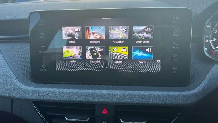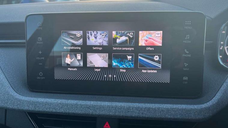 Advanced driver attention and drowsiness monitor, Bluetooth, e-Call (emergency call), Front assist system, PAS, Rear parking sensors, Rear view camera, Speed limiter, Tailgate, Traffic sign recognition, Virtual Cockpit - 10.25" digital display, Voice control system, Wireless smartlink, 4 USB C ports, 8 Speakers, 9.2" Skoda navigation display, DAB radio, Auto dimming rear view mirror, Automatic headlamp activation with Coming home and Leaving home feature, Automatic high/low beam, Body colour bumpers, Body colour door mirrors and handles, Chrome moulding around grille, Front and rear electric windows, Full LED headlights, Heated rear window, LED 3rd brake light, LED brake lights, LED daytime running lights, LED front turning lights, LED high beam, LED low beam, LED taillights, Rear LED fog light, Rear side wing doors, Rear wiper, Tinted windows, Unique dark chrome design logo on alloy wheels, 12V socket in luggage compartment, 3 seat bench in 2nd row, Black / Grey armrest stitching, Black hotstamping, Cargo elements, Chrome inner door handles, Door inserts in satin black, Driver and passenger sun visors with vanity mirror, Dual zone climate control, Front and rear roof lights, Front centre armrest, Front head restraints, Glasses storage in roof liner, Height adjustable driver seat, Height adjustable passenger seat, Ice scraper, Illuminated glove compartment, Inner circulation control with pollen filter, ISOFIX for front passenger seat, Isofix preparation for back seats, Leather gearknob and handbrake lever, Loft cloth upholstery, Luggage net under rear parcel shelf, Manual lumbar support for front seats, Net package and top tether hooks in boot space, Pearl grey ceiling, Pocket on the back of both front seats, incl. mobile phone pockets, Single front passenger seat, Skoda lettering on steering wheel, Textile floor mats, Third rear headrest, Ticket holder, Top tether for front passenger seat, Umbrella in driver's door, 3x3 point rear seatbelts, ABS, Child locks, Curtain airbags and front side airbags, Disc brakes, Driver and front passenger airbags, ESP, Hill hold control, Manual leather parking brake, One tone horn, Passenger airbag switch off function, Seatbelt reminder for driver and front passenger, Tyre pressure monitoring system, Anti theft alarm system with interior monitoring, backup horn and towing protection, Anti-theft wheel bolts, Remote central locking with 2 remote folding keys, SAFE function for remote central locking, Decord pad, door inserts Kota uni,