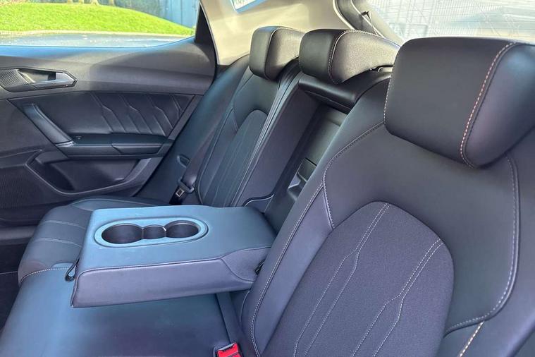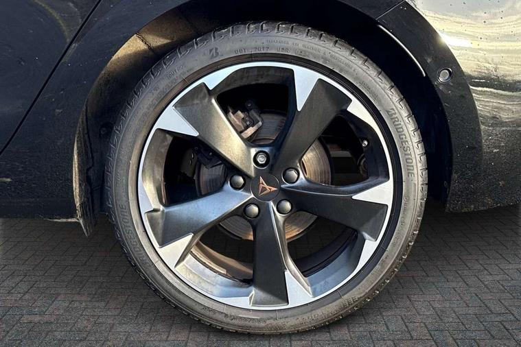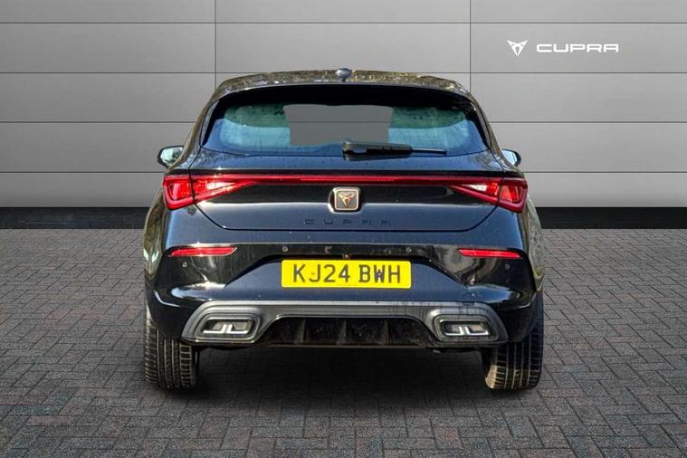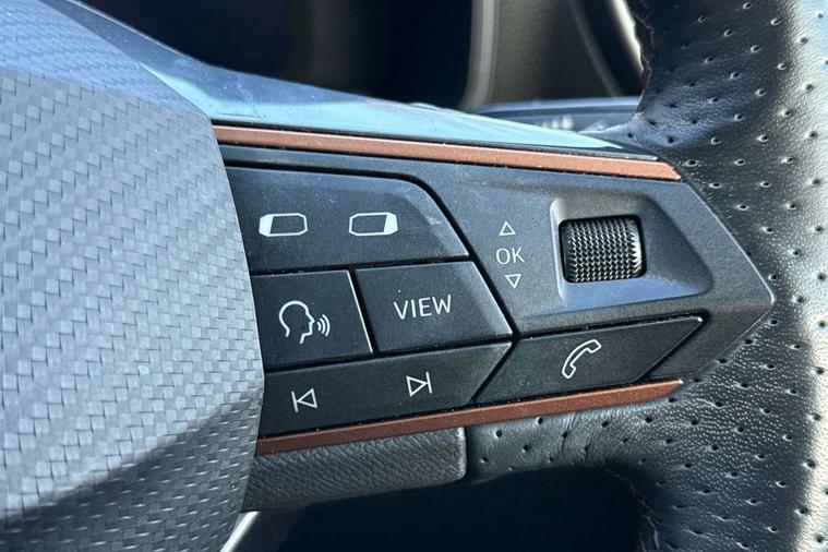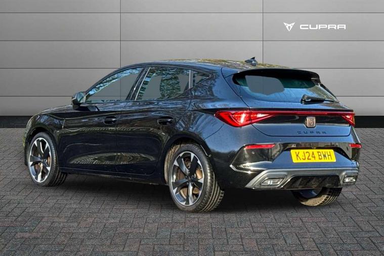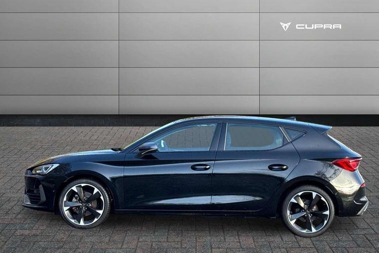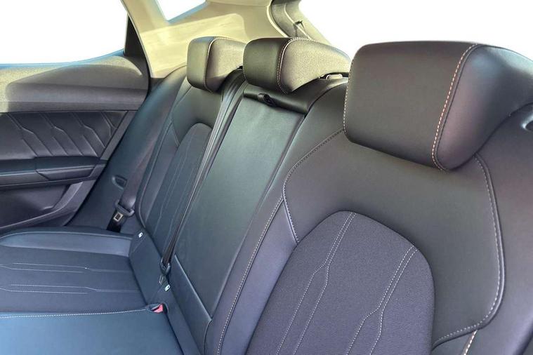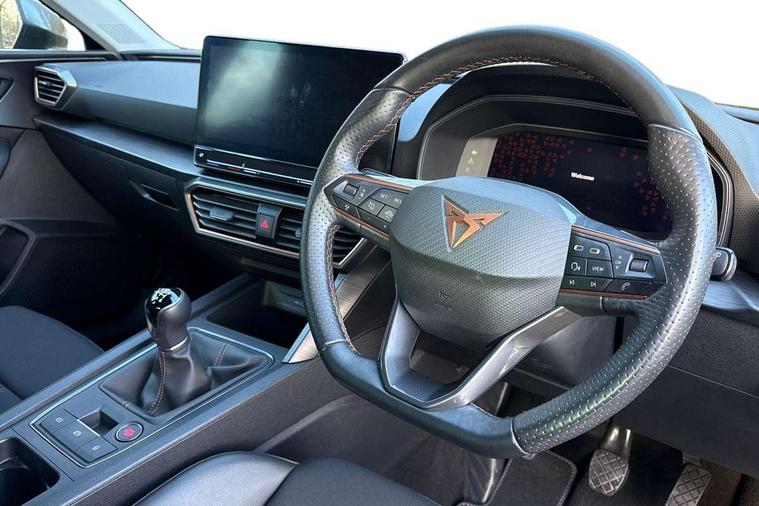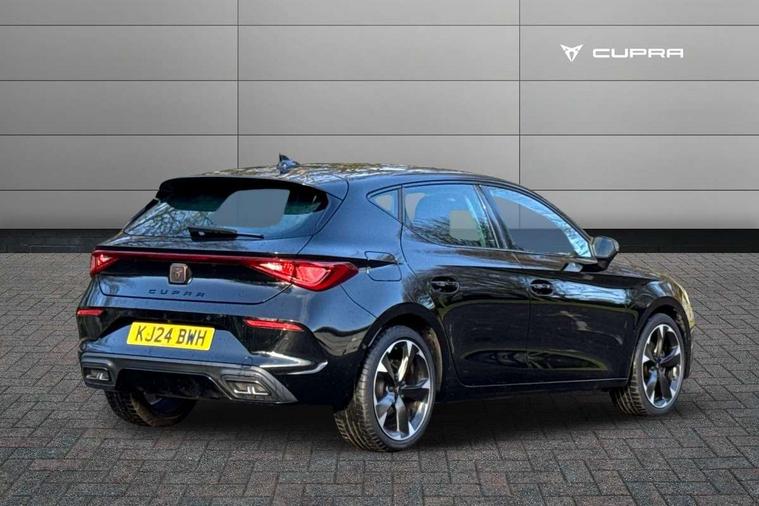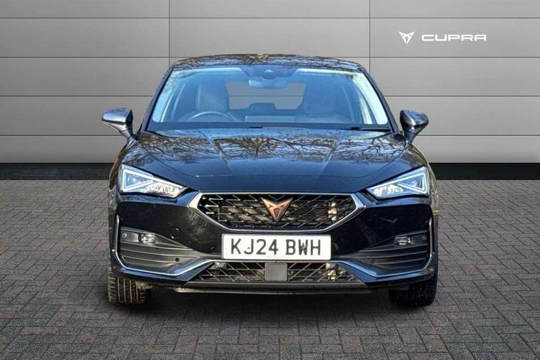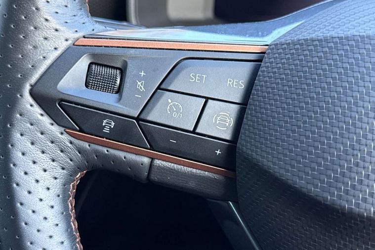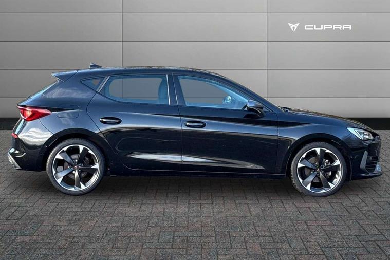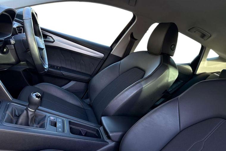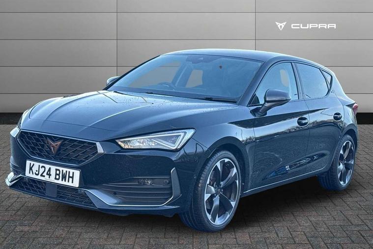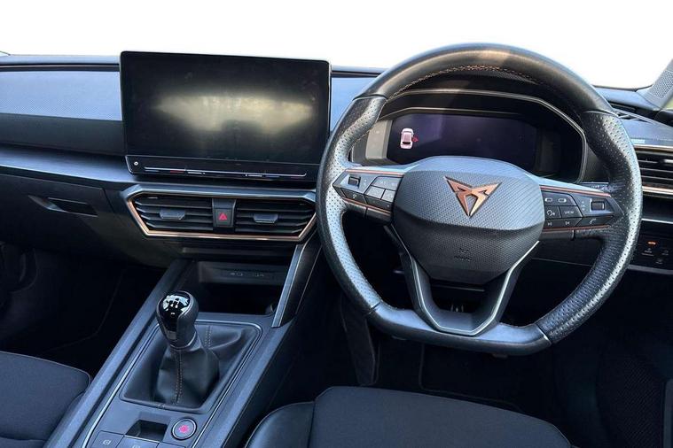 CUPRA drive profile selection with (Comfort/Sport/Individual), throttle response and gearshift mode, Digital cockpit, E-call, Electro mechanical speed sensitive power steering, Four x USB Type C ports (2 in front and 2 in rear), Front assist with forward collision warning braking reaction to vehicles, pedestrians and cyclists, Full link smartphone integration with Mirror Link, wireless Apple CarPlay and wired Google Android Auto, Lane assist, Lockable tailgate, Park assist (inc front/rear parking sensors), Rear view camera, RPM, trip computer, outside temp gauge, instrument light brightness, low fuel warning light, lights on reminder, gearshift indicator, Service interval indicator, Start/stop system with regenerative braking, Wireless phone charger, Sports suspension, Auxiliary input socket, Auto dimming rear view mirror, Body colour door handles, Body coloured bumpers, Cupra sports bumpers, Dark tinted rear windows, Electric front/rear windows, Electrically adjustable, heated and folding door mirrors, LED front fog lamps with cornering function, LED headlights with dynamic turn signals, tail lights, rear fog lights with rear coast to coast lighting, Rain sensing wipers, Rear diffuser with twin exhaust pipe on each side, Rear side wing doors, Rear wash/wipe, Separate daytime running light with automatic headlight control and coming home feature, Third brake light, 12v power supply in centre console, 3 seat bench in 2nd row, 5 headrests, 60/40 split rear bench seat with armrest, Ambient lighting with glovebox, footwell and single monocolour, Cupra Leather flat bottomed, perforated steering wheel, Driver/passenger manual seat height adjustment, Folding boot cover, Front and rear reading lights X 4, Front centre armrest, Front seats manual lumbar adjustment, Grey headlining, Height/reach adjust steering wheel, Illuminated interior front door sills, ISOFIX points in outer rear seats with top tether anchorage points, Jack and tool kit, PVC/Cloth upholstery with copper stitching, Single front passenger seat, Sports seats, Sunvisors with illuminated mirror, Three zone climate control, Media system plus with navigation pack - Leon Cupra, Safety and driving pack (M) - Cupra leon, 3 point seatbelts on all rear seats, ABS, Brake control system - ESC and brake booster, Child proof door locks, Cupra black brake calipers, Driver and front passenger airbags with front passenger airbag de-activation, front side and curtain airbags, Electronic parking brake, Extended safety system - seat belt tensioner, window closure and hazard lights, Hill hold control, Rear disc brakes, Seat belt reminder for front and rear seats, Tiredness recognition system, Tyre pressure monitoring system, Anti theft alarm system with interior monitoring in cab, backup horn and towing protection, KESSY Advanced - Keyless start, keyless entry, Locking wheel bolts, Chrome and copper interior detailing, 18" Machined sport black and silver alloy wheels with 92Y tyres,