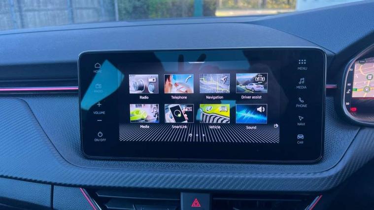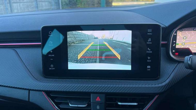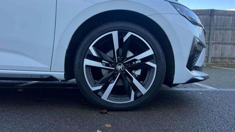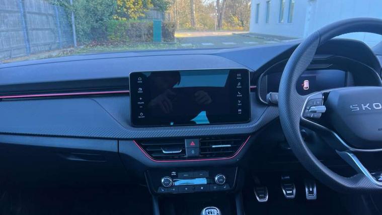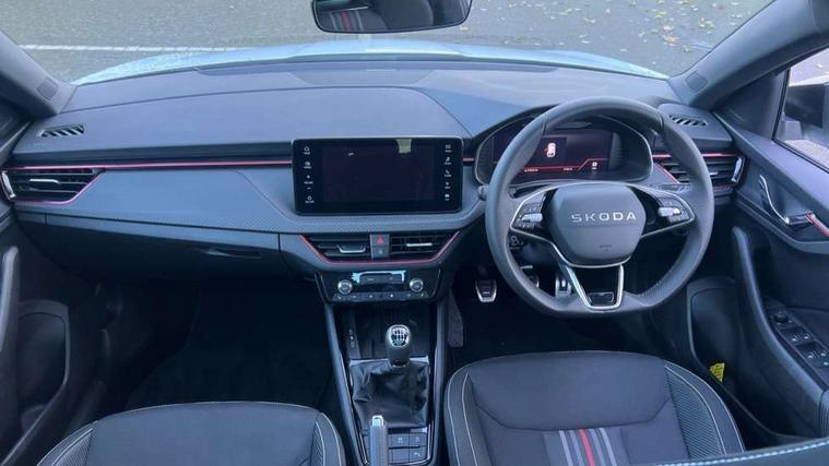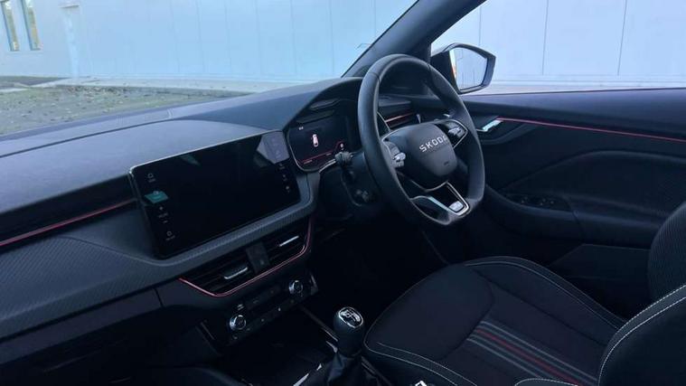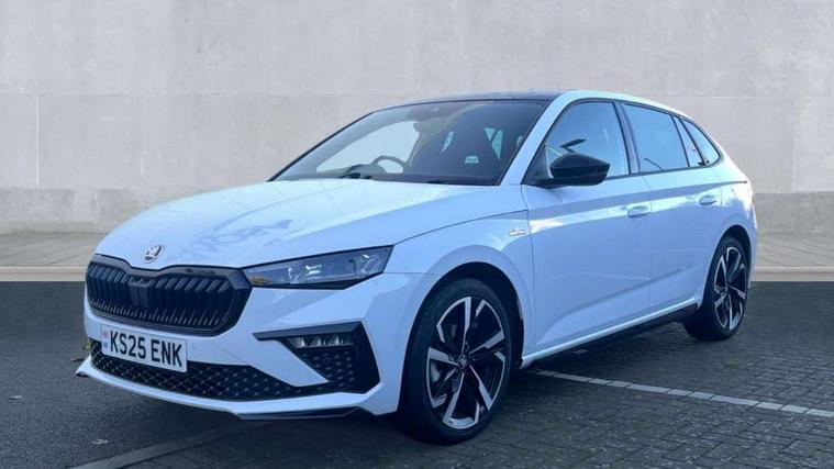Advanced driver attention and drowsiness monitor, Bluetooth, e-Call (emergency call), Front assist system, PAS, Rear parking sensors, Rear view camera, Speed limiter, Tailgate, Traffic sign recognition, Virtual Cockpit - 10.25" digital display, Voice control system, Wireless smartlink, 4 USB C ports, 8 Speakers, 9.2" Skoda navigation display, DAB radio, Auto dimming rear view mirror, Automatic headlamp activation with Coming home and Leaving home feature, Automatic high/low beam, Automatic intermittent wipers, Black door mirrors, Black lettering on boot lid, Black radiator grille, Black rear diffuser, Black roof spoiler, Body colour bumpers, Body colour door handles, Chrome moulding around grille, Extended tailgate glass, Front and rear electric windows, Heated rear window, LED 3rd brake light, LED brake lights, LED daytime running lights, LED high beam, LED low beam, Light sensors, Monte carlo plaque, Panoramic glass roof, Privacy glass, Rear LED fog light, Rear side wing doors, Rear wiper, Tinted windows, Unique dark chrome design logo on alloy wheels, 12V socket in luggage compartment, 3 seat bench in 2nd row, Aluminium pedals, Ambient lighting in white/red, Black / White armrest stitching, Black ceiling, Black roof headlining, Cargo elements, Chrome inner door handles, Door inserts in art.leather carbon, Driver and passenger sun visors with vanity mirror, Dual zone climate control, Front and rear roof lights, Front centre armrest, Front head restraints, Height adjustable driver seat, Height adjustable passenger seat, Ice scraper, Illuminated glove compartment, Inner circulation control with pollen filter, ISOFIX for front passenger seat, Isofix preparation for back seats, Leather gearknob and handbrake lever, Luggage net under rear parcel shelf, Manual lumbar support for front seats, Monte Carlo cloth upholstery, Net package and top tether hooks in boot space, Pocket on the back of both front seats, incl. mobile phone pockets, Rear centre armrest, Red hotstamping, Single front passenger seat, Skoda lettering on steering wheel, Sport seats, Textile floor mats, Third rear headrest, Ticket holder, Top tether for front passenger seat, Umbrella in driver's door, Light and view plus pack - Scala, 3x3 point rear seatbelts, ABS, Child locks, Curtain airbags and front side airbags, Disc brakes, Driver and front passenger airbags, ESP, Hill hold control, Manual leather parking brake, One tone horn, Passenger airbag switch off function, Seatbelt reminder for driver and front passenger, Tyre pressure monitoring system, Anti theft alarm system with interior monitoring, backup horn and towing protection, Anti-theft wheel bolts, Remote central locking with 2 remote folding keys, SAFE function for remote central locking, Carbon effect decorative inserts, 18" Ursa black diamond cut alloy wheels,