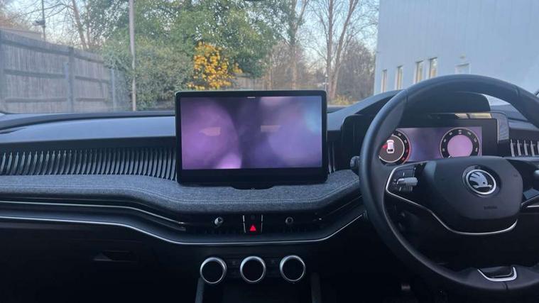 13" touchscreen display with satellite navigation, 4x USB-C ports (2x in front centre console and 2x in rear) (45W), Adaptive cruise control with speed assist, lane assist plus and traffic tram assist, Blind spot detection with door exit warning, Bluetooth system, CareConnect and Emergency Call, ChatGPT functionality, Driver fatigue sensor, Front assist with extended predictive pedestrian protection, Front cross traffic assist, PAS, Quick start all heating software functionality, Rear view camera with washer, Stop/start engine system, Traffic sign recognition, Turn assist with evasive assistance, Virtual Cockpit - 10.25" digital display, Voice control system, Wireless charging for one smartphone (15W) with cooling function, Wireless smartlink apple carplay, SmartLink+ android auto, 8 Speakers, DAB Digital radio, Display cleaner, FM radio connection, Web radio connection, Acoustic side windows and interior noise suppression, Backdrop lighting, Body colour door handles, Body coloured door mirrors, Chrome roof rails, Chrome window surround, Electrically adjustable, heated, folding and driver side auto-dimming door mirrors with integrated indicators and logo projection, Frameless auto-dimming rear view mirror with USB-C, Front windscreen with heat-insulating glass, Ice scraper in fuel tank cap, LED 3rd brake light, Light assist with High beam control, Light assistant (coming/leaving home/tunnel light), Privacy glass, Rear fog light (x1), Rear roof spoiler, Rear side wing doors, Rear windscreen wiper, Tow bar preparation, Unique dark chrome design logo on alloy wheels, Unique dark chrome grille surround with dark chrome rib elements, Windscreen wipers with rain sensor, 12V socket 1x centre console 1x boot, 12V socket and 2x cargo elements in boot, 2 spoke multifunction steering wheel with DSG paddles, 3 seat bench in 2nd row, 4x foldable bag hooks in boot, 60:40 Split folding rear seats, Bottle holders in the front doors 1.5 litre bottle and rear 1.5 litre bottle, Cup holder in front with easy open mat, Front and rear footwell illumination, Front armrest with storage box, Front comfort seats, Heated front seats, Height adjustable driver and front passenger seats with 2-way electric tilt, 4-way pneumatic lumbar support, and extendable thigh support, Height adjustable front and rear head restraints, Height adjustable front passenger seat, Illuminated glovebox, Interior lights with control switches, Isofix child seat fittings in outer rear and front passenger seats, LED front and rear reading lights, Massage function for front seats, Single front passenger seat, Skoda lettering on steering wheel, Storage pockets on back of front seats, Sun visors with illuminated vanity mirrors, Ticket holder on A Pillar, Tri zone climate control, Umbrella in driver's door, 3 rear seatbelts, 8 Airbags - Front driver and passenger, front side driver and passenger, centre, curtain front and rear, drivers knee, Crew protect assist, Driver and passenger seatbelts with warning light, Electronic parking brake, ESC including ABS, EBV, MSR, ASR, EDS, HBA, DSR, RBS, CBC, multi-collision brake (MKB) and Auto hold, Hill hold assist, Power operated child lock in rear doors, Alarm with interior monitoring tilt sensor and back up horn, Backrest remote release from trunk, Electronic engine immobiliser, Keyless start/stop, Remote central locking with SAFE system, Third key, Decorative front door sills,