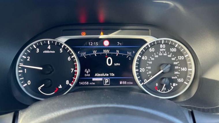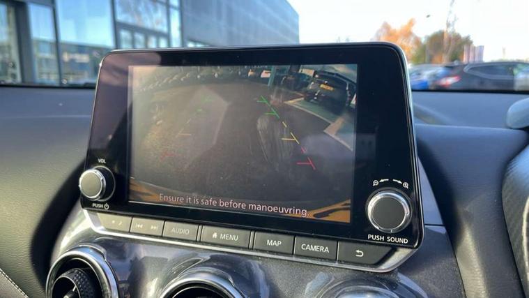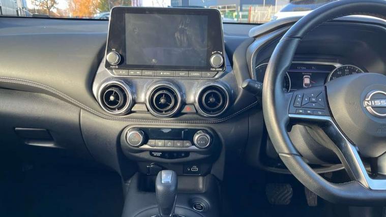 7" full colour TFT screen combimeter, Apple CarPlay and Google Android auto, Drive modes select (Eco, normal and sport), Emergency and breakdown call, Front parking sensor, Idle start/stop system, Intelligent lane intervention, Lane departure warning system, Nissan connect 8" touch screen entertainment system, Nissan connect nav with TomTom traffic, Nissan connect services and Wifi connection, Outside temperature sensor, Power Steering, Rear parking sensor, Traffic sign recognition, Trip computer, Voice recognition, Gasoline particulate filter, 6 speakers, Bluetooth system, USB, Aux-in and 12V socket, DAB Digital radio, Rear console USB port, Auto dimming interior rear view mirror, Auto headlights, Automatic hazard signal with emergency stop signal, Body colour bumpers, Body colour door handles, Electrically adjustable door mirrors with integrated indicators, Follow me home headlights, Front and rear electric window with one touch driver window, Heated and auto folding door mirrors, High beam assist, LED daytime running lights, LED headlamps, LED rear fog lamp, LED rear lamps, Rain sensor windscreen wipers, Rear privacy glass, Rear side wing doors, Rear wiper, Three blink turn signal, 3 height adjustable rear headrests, 3 seat bench in 2nd row, 60/40 split folding rear seat, Automatic climate control, Card holder on driver sunvisor, Cloth upholstery with black and metallic grey syntech leather inserts, Driver and passenger sliding and reclining seats, Driver side rear coat hanger, Driver/passenger sunvisors and vanity mirrors, Front and rear cabin lights, Front armrest, Front door pockets with bottle holders, Front head restraints, Front/rear passenger grab handles, Grey synthetic leather kneepad, Height adjustable driver's seat, Internal chrome door handles, Leather gearshift knob, Leather steering wheel, Luggage board, Luggage space lighting, Monoform sporty seats, Multifunction steering wheel, Rear door bottle holders, Single front passenger seat, Steering wheel mounted gearshift paddles, Telescopic steering wheel adjustment, Two cupholders in front centre console, Two rear isofix child seat anchorage points with top tether, Welcome light and console tray ambient lighting, ABS with EBD and brake assist, Active ride control, Active Trace Control, Driver and passenger airbags, Driver and passenger side airbags, Electric handbrake with auto hold function, Electronic Stability Programme (ESP), Front and rear curtain airbags, Height adjustable seatbelts, Hill start assist, Intelligent emergency braking with pedestrian and cyclist recognition, Rear door child safety locks, Seatbelt reminder for driver/front passenger and rear seats, Single tone horn, Three 3 point rear seatbelts, Traction control, Tyre pressure monitoring system, VDC Dynamic Vehicle Control, Ventilated rear brake discs, Alarm, Immobiliser, Intelligent key and start push button with walk away lock and approach unlock functions, Remote central locking,