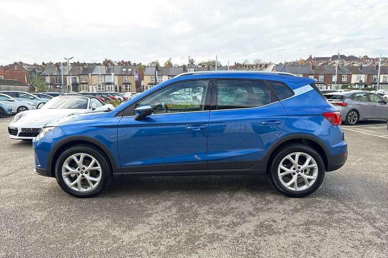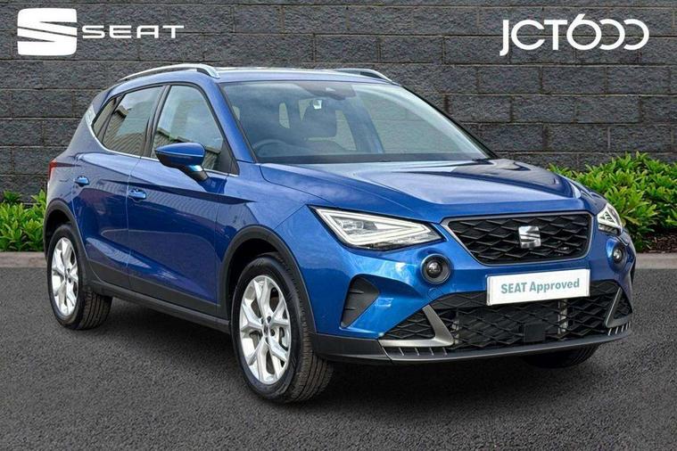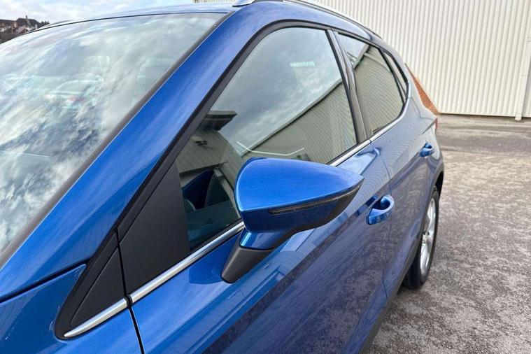 'Lights On' Reminder warning buzzer, 8" Digital cockpit, Digital clock, E-call, Electric speed sensitive power steering, Full link smartphone integration with mirror link, wireless apple carplay, Google android auto + USB Type C cable for apple and android devices, Lane keeping system, Low fuel warning light, Outside temperature display, RPM counter, SEAT Drive profile - Four different models normal-sport-eco-individual, steering response, throttle response and gear shifts mode, Trip computer, Wireless phone charger, 9.2" colour touchscreen with navigation system, voice control and USB port (type c), Bluetooth interface for hands free and audio streaming, DAB digital radio and AM/FM radio, Steering wheel mounted audio controls, Anti theft roof antenna, Auto dimming interior rear view mirror, Automatic activation of hazard warning lights, Body coloured bumpers, Body coloured door handle inserts, Chrome roof rails and window surrounds, Dark tinted rear windows, Electric front/rear windows, Electrically adjustable, heated and folding door mirrors, Front fog lights with cornering function and rear fog light, FULL LED automatic headlights with dynamic headlight range control, coming and leaving home, LED daytime running lights, LED rear tail lights and licence plate lights, Protective side mouldings, Rain sensing wipers, Rear side wing doors, Rear spoiler, Rear window wash/wipe, Roof colour door mirrors, Third brake light, Twin exhaust pipe styling hidden exhaust pipe, Visible VIN plate, 2 cupholders, 3 seat bench in 2nd row, 60/40 split folding rear seat, Aircare filter, Black interior roof, Cloth upholstery, Double boot floor, Driver sunvisor with covered mirror + card holder, Dual zone climate control, Front courtesy light with front reading lights, Gear shift indicator, Height adjustable front seats, Height/reach adjustable steering column, Illuminated air vent surrounds, Illuminated boot, Instrument lighting with brightness control, Interior ambient lighting, Interior light in footwell, central console and door panel, ISOFIX points in outer rear seats with top tether anchorage points, Passenger sunvisor with vanity mirror, Perforated flat bottomed leather steering wheel/gear knob/handbrake with red stitching and FR logo, Potentiometer, Single front passenger seat, Steering wheel mounted gearshift paddles, Two front and three rear height adjustable headrests, Interior chrome pack - Arona, Safe and driving pack (S) - Arona, 3 point seatbelts on all rear seats, ABS, Active front headrests, Child locks on rear doors, Driver and front passenger airbags with front passenger airbag de activation, front side and curtain airbags, Emergency Brake Assist (EBA) and front assist, Front and rear seatbelt reminder, Hill hold control, Multi-Collision braking, Tiredness recognition system, Traction control, Tyre pressure monitoring system, Alarm with back up horn with tow away protection, Deadlock, Electronic engine immobiliser, Locking wheel bolts, Remote central locking, Titan black dashboard, 17" Dynamic alloy wheels,
