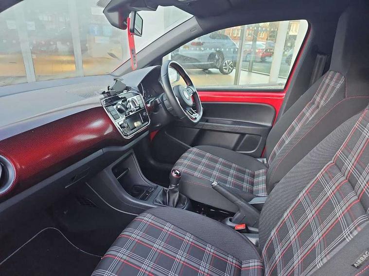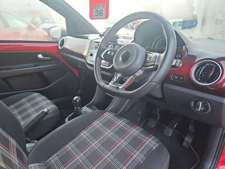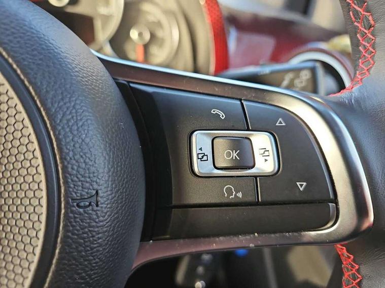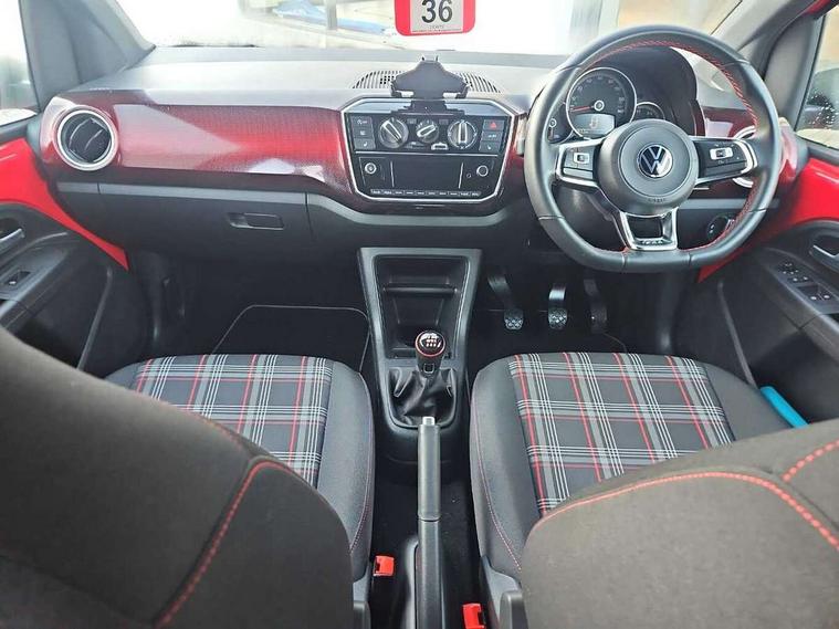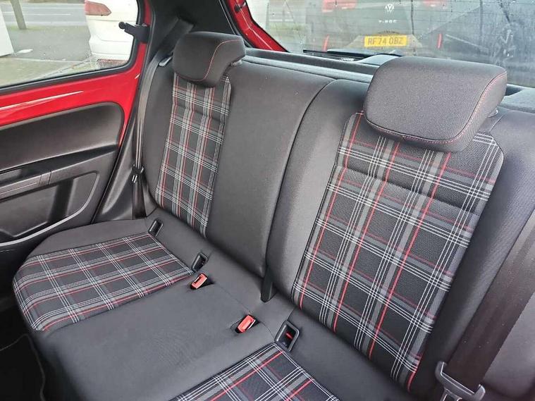 Digital clock, Lane assist, Multifunction computer, One touch indicators, Rev counter, Speed sensitive power steering, Speedometer, electronic odometer and fuel gauge, Volkswagen connect, Body lowered sports suspension, Galvanished body, Start/stop function with battery regeneration, Composition colour system with 5" screen, DAB, AUX in socket, SD card, MP3/WMA/AAC, 4 X 20W, bluetooth, audio connection and USB connectivity, Smartphone answering button on multifunction steering wheel with audio over the vehicle speaker system, Smartphone interface navigation system, Antenna, Black decals above door sill, Black radiator grille, Body colour door handles, Body coloured bumpers, Chrome trimmed surround on light, Door sill protectors in stainless steel with black honeycomb pattern inset and GTI logo, Electric front windows, GTI badge, Halogen clear headlights with integrated indicators and range adjustable, Heated rear window, High level 3rd brake light, LED daytime running lights, LED rear number plate lights, Left side chrome exhaust tailpipe, Manually dimming rear view mirror, Rear fog lights, Rear tailgate spoiler in gloss black, Rear tinted glass from B pillar backwards, approx 65% tinted, Rear wash/wipe, Red Stripe on lower tailgate, Red stripe with chrome detailing on lower radiator grille, Unique GTI badging on front wings, rear tailgate and front radiator grille, Windscreen wipers intermittent wipe, 12V accessory power point in centre console, 2 cup holders in the front and rear centre console, Ambient lighting red below upper dashpad, Black roof lining, Cooled glovebox, Driver seat height adjust, Drivers and front passengers easy entry sliding seat with memory function, Drivers and front passengers sun visors with vanity mirrors, Folding front seat backrest release on front passenger seat, Front and rear carpet mats with contrast stitching in red and grey, Front head restraints, Front sports seats, GTI logo and red contrast stitching on steering wheel, Heating/ventilation unit with 4 speed fan, Height adjustable rear seat head restraints with red contrast stitching (x2), Height adjustable steering wheel, Interior light delay, Isofix Preparation 2 Rear child seats, Jacara red cloth upholstery, Jack and tool kit, Luggage compartment cover, Luggage compartment lighting, Multifunction leather trimmed three-spoke steering wheel, gear knob and handbrake grip, Storage compartment in front doors, Two rear seats with 60/40 split folding rear seat backrest, Variable boot floor, GTI styling pack - Up, Winter pack - Up, 3 point front seatbelts with pre-tensioners, Anti-lock braking system with EDL, EBD + TCS, Curtain airbags for front and rear passengers, Driver and front passenger airbag with front passenger airbag deactivation, Driver/front passenger side airbags, Engine drag torque control, Front disc brakes, High tone horn, Hill hold control, Hydraulic Brake Assist (HBA), Rear drum brakes, Red brake calipers, Two 3 point rear seatbelts, Tyre pressure loss indicator, Volkswagen roadside assistance, Warning buzzer and light for front and rear seat belts if unfastened, Electronic engine immobiliser, Locking fuel filler cap, Remote central locking with 2 remote folding keys, Chrome surrounds to the air vents, radio controls and air conditioning, Matt chrome trim on interior door handles, infotainment system + instrument cluster, Red pixels dash pad, 17" Oswald alloy wheels with anti theft wheel bolts, Tyre mobility system,