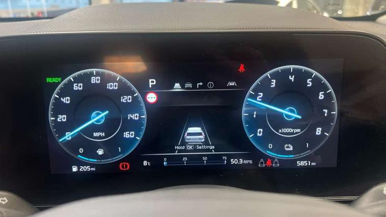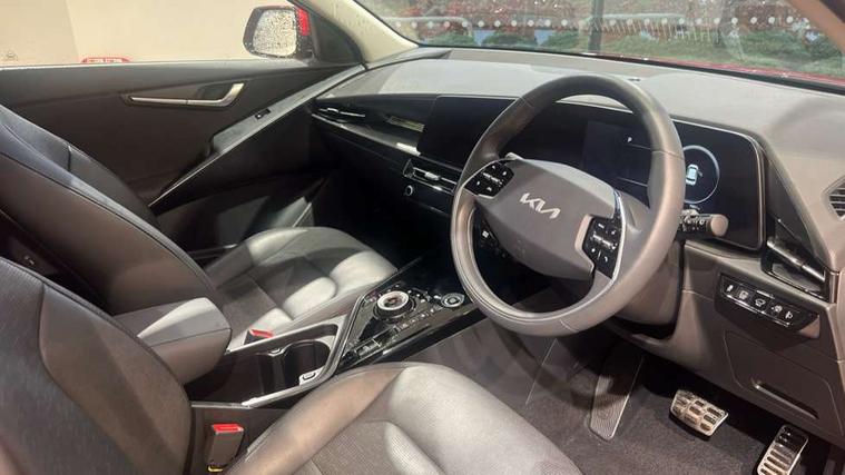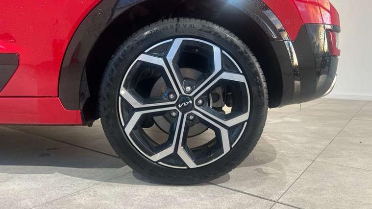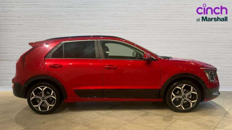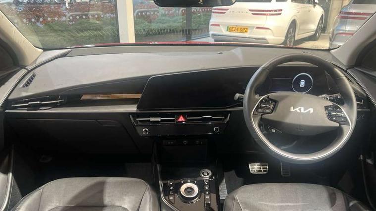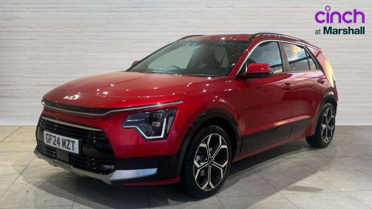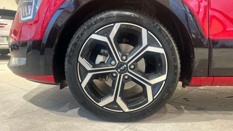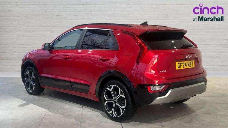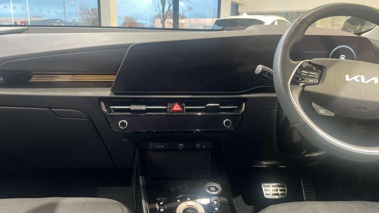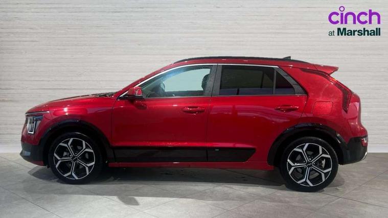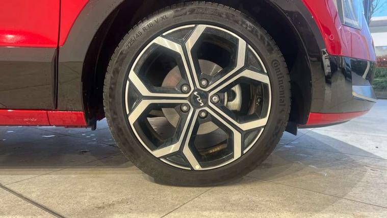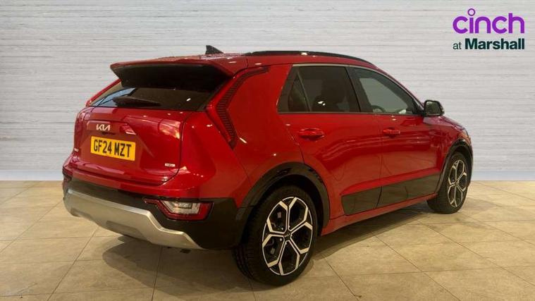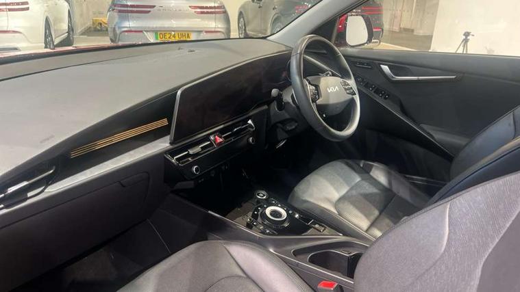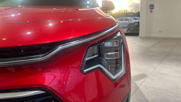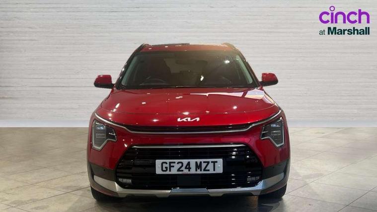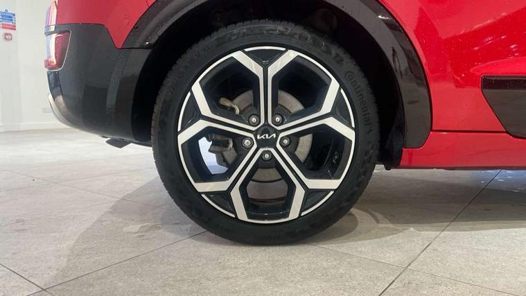 10.25" Supervision colour cluster display, 10.25" touchscreen satellite navigation, Adaptive smart cruise control function (SCC) with stop and go, Apple car play/Android Auto with voice control, Blind spot collision avoidance assist, Drive mode select (Eco, sport), E-call, Emergency stop signalling system, Forward Collision-Avoidance Assist (FCA) 1.5 - City/Pedestrian/Cyclist/Junction turning, Front parking sensors, Head up Display, Highway Driving Assist (HDA), Kia Connect (UVO), Lane Following Assist (LFA), Lane keep assist, Motor driven power steering, Parking collision avoidance assist (PCA), Power opening/closing tailgate, Rear cross traffic alert, Rear parking sensors, Remote smart parking assist, Reversing camera with dynamic guide lines, Safe exit warning (SEW), Speed limit assist, Trip computer with distance/fuel consumption/average speed, Wireless Smartphone charger, 220v AC Inverter, 'Shark fin' mobile antenna, 2 Front USB Charge port (one for C-type/one for USB), 2 type C USB ports on front seats, 6 speakers, Bluetooth with music streaming, DAB Digital radio, Steering wheel mounted controls, Acoustic windshield, All round electric windows with drivers and front passenger auto up/down and safety function, Auto dimming rear view mirror, Automatic defog system, Automatic headlight control system, Black grille with chrome surround, Body colour bumpers, Body colour exterior door handles, Deluxe door scuff plates, Dual LED headlights (low and high projection), Electric heated door mirrors, Electrically folding door mirrors, Front and rear chrome skid plates, Front fog lights, Heated rear window with timer, High gloss black cladding, High gloss black door mirrors, LED daytime running lights, LED rear combination lights, LED third brake light, One touch single tilting/sliding power sunroof, Privacy glass - Rear windows and tailgate, Rain sensing front wipers, Rear fog lights, Rear side wing doors, Rear spoiler, Rear wiper, Roof rails, Solar glass windscreen, Welcome and follow-me home light functionality, Windscreen Washer Level Warning, 12V socket in front, 12V socket in luggage compartment, 3 seat bench in 2nd row, 60:40 split remote folding rear seats, All-round height adjustable headrests, Aluminium pedals, Artificial leather centre console storage box, Artificial leather steering wheel, Centre console cupholder, Chrome coating interior door handles, Driver and front passenger power adjusted seat, Driver power adjusted memory seat, Driver/passenger sunvisors with illuminated vanity mirrors, Drivers seat power lumbar support, Dual zone automatic air conditioning, Front and rear door storage, Heated front seats, Heated outer rear seats, Heated steering wheel, Illuminated glovebox, Interior door lock/unlock function, ISOFIX Child seat top tethers and anchor fixings, LED overhead console, 2nd row and luggage lamp, Luggage area load cover, Luggage board, Paddle shifts, Passenger premium relaxation seat, Power adjustable lumbar support on front passenger seat, Rear armrest, Seatback pocket - driver, Seatback pocket - front passenger, Shift by wire SBW, Single front passenger seat, Tilt/telescopic adjustable steering wheel, Vegan leather upholstery, Ventilated front seats, Ventiliation ducts to rear compartment, Towing pack - Niro, 3 point seatbelts on all seats, ABS, Automatic unlocking of doors in case of impact, Centre side front airbags, Curtain and side airbags, Drivers knee airbag, Dual shell horn, Electric parking brake with auto hold function, Electronic stability control, Front passenger airbag deactivation, Height adjustable front seatbelts, Hill start assist control (HAC), Manual rear child locks, Rear seat alert system, Traction control, Tyre pressure monitoring system, Alarm system and engine immobiliser, Deadlocks, Engine Start/Stop Button with Smart Entry System, Locking wheel nuts, Visible vehicle identification number, Warranty - 7 Years/ 100, 000 miles, Centre fascia chopped carbon, 18" Alloy wheels, Tyre mobility kit,