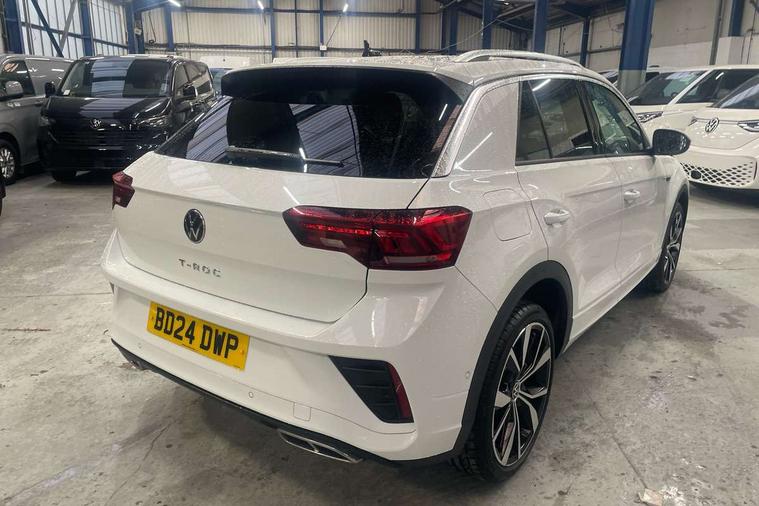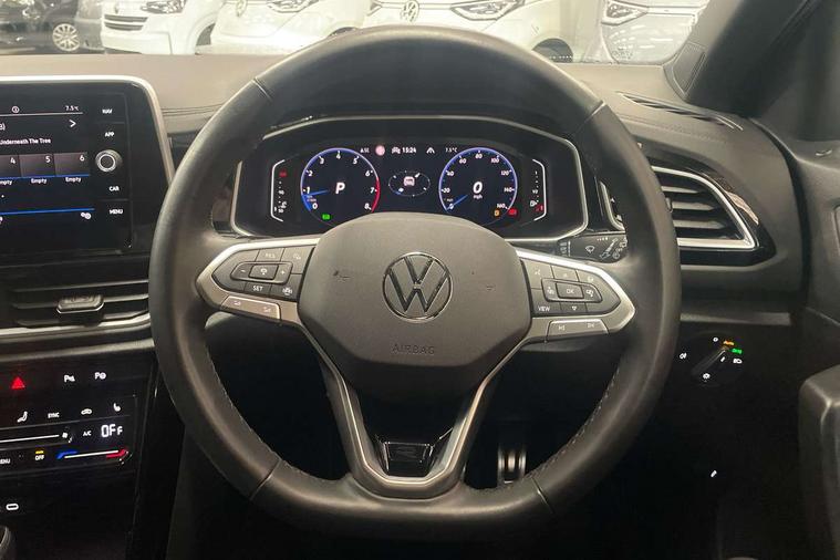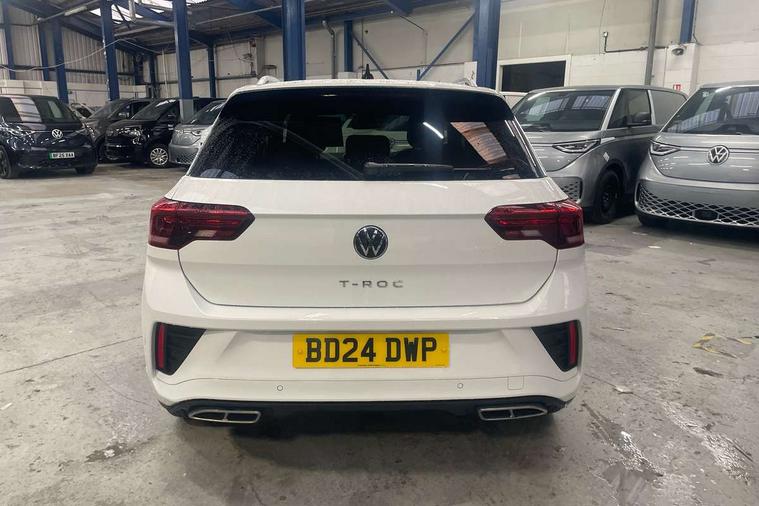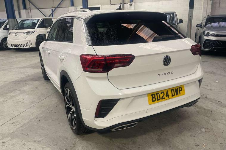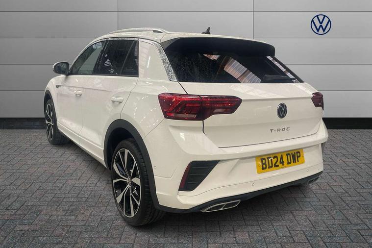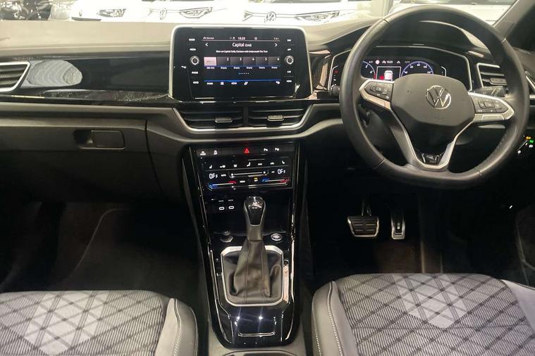 10.25" Digital cockpit pro, Advanced driver attention and drowsiness monitor, Bluetooth mobile phone interface, Emergency call service, Lane keeping system Lane Assist, Modified key software - reduce switch off time for key status change to Long no motion, Online services, Park assist including front and rear parking sensors, Service interval indicator, Tailgate/trunk lid release from outside, Think blue trainer driver tips and journey analysis, Warning sound and light for front seatbelts unfastened, Wireless app connect, Battery regeneration during braking, Start/stop function with battery regeneration, Diversity antenna for FM reception, Music playback - MP3, WMA and AAC files, Premium USB cable in choice of either Apple or Android smartphone compatibility, SD card slot, Simultaneous pairing of 2 compatible mobile devices, Title and cover art display, We Connect and We Connect Plus functionality, 3rd brake light, Auto dimming interior rear view mirror, Automatic hazard lights activation under emergency braking, Automatic headlight control with LED separate daytime running lights with coming/leaving home function, Electrically adjustable and heated door mirrors, Extended roof spoiler, Exterior mirrors aspherical on driver side, convex on front passenger side, External USB type C socket and charging sockets, Front windscreen wiper with intermittent wipe and 4 position delay, Heated rear window, LED rear combination lamps, LED rear number plate lights, Power windows with comfort operation and circuit breaker, R-Line design body coloured bumpers, Rain sensor, Rear exhaust tailpipe, Rear fog light on one side and reversing lights on both sides, Rear side wing doors, Rear wash/wipe with intermittent wipe setting, Remote electrically foldable door mirrors, puddle lights and reverse activated passenger's door mirror, 12V power socket in centre console, 3 rear head restraints, 3 seat bench in 2nd row, 4 load lashing points in luggage compartment, Air care climatronic air conditoning system with active combination filter and 2-zone temperature control, Black roof lining, Chrome plated radiator grille inserts, air vent surrounds and light switch surrounds, Door and side trim panel with leatherette insert, Front + rear carpet mats, Front centre armrest, Front cupholders x 2, Front footwell illumination, Front reading light, Front scuff plates with R Line logo, Front seat back storage pockets, Glove compartment door with light, Instrument lighting, white adjustable panel illumination, Interior ambient lighting and surround lighting, Interior light delay, Isofix child seat preparation, Leather gearshift handle, Load-through provision with cup holder when folded down ('Unsplit rear seat bench, split folding backrest, with centre armrest), Luggage compartment lighting, Single front passenger seat, Stainless steel pedals, Storage compartment in left and right luggage area, Storage compartment in rear doors, Storage compartments in driver and front passenger doors, Sunvisors with illuminated vanity mirrors, Variable boot floor, height adjustable and removable, Driver assistance pack without proactive passenger protection - T-Roc, 3 point height adj front seatbelts + pretensioners, 3 point seatbelts in outer rear with ECE label, ABS, Child locks on rear doors, City emergency braking and pedestrian monitoring, Driver and front passenger airbag with front passenger airbag deactivation, Driver and front passenger safety-optimised head restraints, Drivers seatbelt reminder, Electronic parking brake, Electronic Stability Control (ESC) inc EDL (Electronic Differential Lock) and ASR (Traction Control), Front and rear passengers curtain airbag system including front side airbags, Hill start assist, Predictive pedestrian protection, Rear disc brakes, Two tone horn, Tyre pressure loss indicator, Volkswagen roadside assistance, Anti-theft alarm system with interior monitoring, backup horn, and towing protection, Remote central locking with SAFELOCK, radio remote control with 2 remote control folding keys, Trims for alloy wheels,