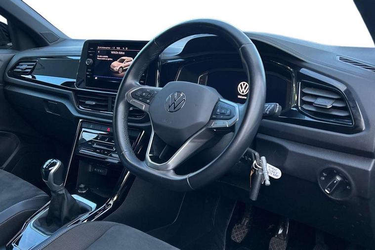 10.25" Digital cockpit pro, Bluetooth mobile phone interface, Driver alert system with fatigue detection, Driver tips and journey analysis, Emergency call service, Lane keeping system Lane Assist, Modified key software - reduce switch off time for key status change to Long no motion, Online services, Park assist including front and rear parking sensors, Service interval indicator, Tailgate/trunk lid release from outside, Think blue trainer driver tips and journey analysis, Warning sound and light for front seatbelts unfastened, Wireless app connect, Battery regeneration during braking, Start/stop function with battery regeneration, Diversity antenna for FM reception, Front and rear 6 speakers, Music playback - MP3, WMA and AAC files, Premium USB cable in choice of either Apple or Android smartphone compatibility, SD card slot, Simultaneous pairing of 2 compatible mobile devices, Title and cover art display, We Connect and We Connect Plus functionality, 3rd brake light, Auto dimming interior rear view mirror, Automatic hazard lights activation under emergency braking, Automatic headlight control with LED separate daytime running lights with coming/leaving home function, Body colour sports bumpers with silver metallic underbody fascia, Dynamic headlight range control with self adjusting whilst driving, Extended roof spoiler, Exterior mirrors aspherical on driver side, convex on front passenger side, External USB type C socket and charging sockets, Front windscreen wiper with intermittent wipe and 4 position delay, Heated rear window, LED Plus headlamps, LED rear combination lamps, LED rear number plate lights, LED tail lamp rear comination lamps, Light mode for poor weather, rain, fog or snow, Power windows with comfort operation and circuit breaker, Rain sensor, Rear exhaust tailpipe, Rear fog light on one side and reversing lights on both sides, Rear side wing doors, Rear wash/wipe with intermittent wipe setting, Remote electrically foldable door mirrors, puddle lights and reverse activated passenger's door mirror, 12V power socket in centre console, 3 rear head restraints, 3 seat bench in 2nd row, 4 load lashing points in luggage compartment, Air care climatronic air conditoning system with active combination filter and 2-zone temperature control, Chrome plated radiator grille inserts, air vent surrounds and light switch surrounds, Door and side trim panel with leatherette insert, Drawer under drivers seat, Front + rear carpet mats, Front centre armrest, Front comfort sports seats, Front cupholders x 2, Front footwell illumination, Instrument lighting, white adjustable panel illumination, Interior ambient lighting and surround lighting, Interior light delay, Isofix child seat preparation, Leather gearshift handle, LED interior light with switch off delay/dimmer and 2 front/rear LED reading lights, Load-through provision with cup holder when folded down ('Unsplit rear seat bench, split folding backrest, with centre armrest), Luggage compartment lighting, Non-folding front passenger seat backrest, Single front passenger seat, Storage compartment in left and right luggage area, Storage compartment in rear doors, Storage compartments in driver and front passenger doors, Sunvisors with illuminated vanity mirrors, Variable boot floor, height adjustable and removable, Driver assistance pack without proactive passenger protection - T-Roc, 3 point height adj front seatbelts + pretensioners, 3 point seatbelts in outer rear with ECE label, ABS, Child locks on rear doors, Driver and front passenger airbag with front passenger airbag deactivation, Driver and front passenger safety-optimised head restraints, Drivers seatbelt reminder, Electronic parking brake, Electronic Stability Control (ESC) inc EDL (Electronic Differential Lock) and ASR (Traction Control), Front and rear passengers curtain airbag system including front side airbags, Front assist with city emergency braking and pedestrian monitoring, Front seat side impact airbags, Predictive pedestrian protection, Rear disc brakes, Single tone horn, Tyre pressure loss indicator, Volkswagen roadside assistance, Alarm with interior protection, Anti-theft alarm system with interior monitoring, backup horn, and towing protection, Remote central locking with SAFELOCK, radio remote control with 2 remote control folding keys, Trims for alloy wheels,
