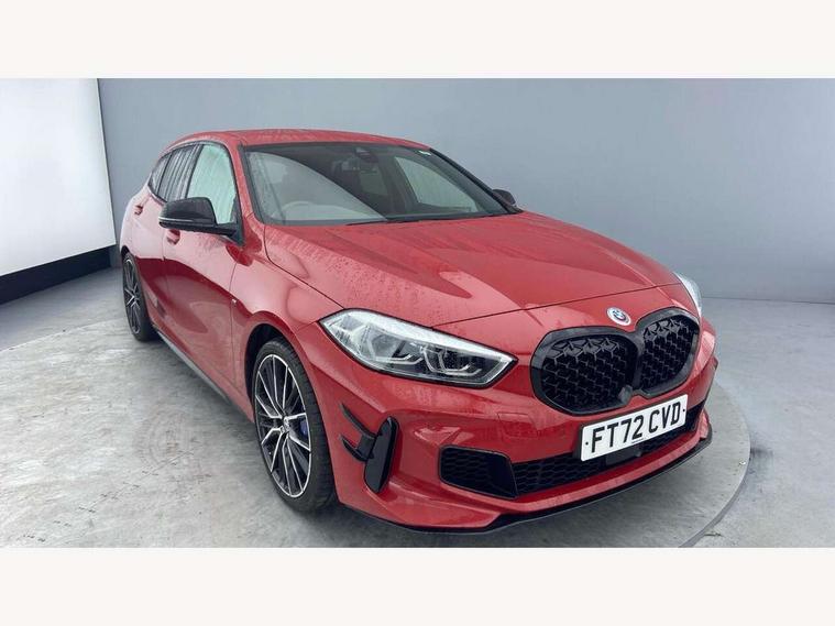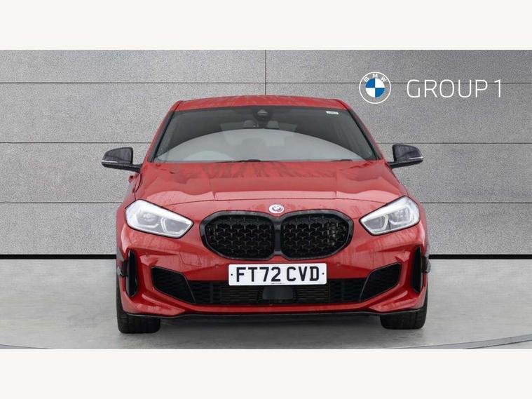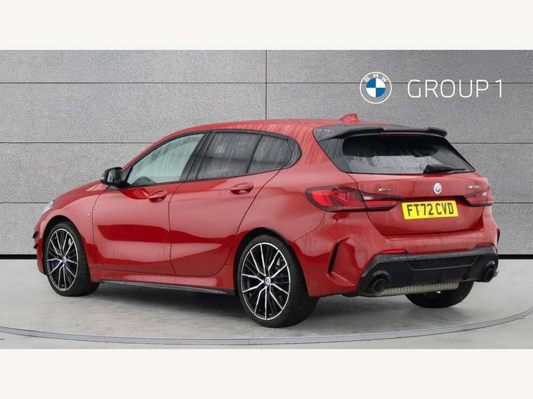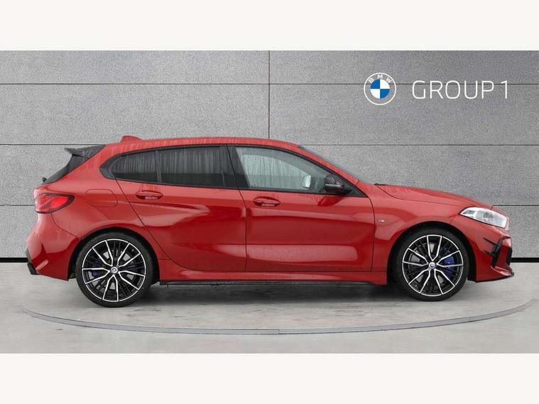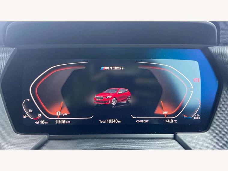 Active guard plus, Attentiveness assist, BMW ConnectedDrive online services, BMW Teleservices, Check Control warning system for monitoring of lights and door/luggage compartment open warning, Cruise control with speed limiter, Eco pro mode, Electric power steering, Electro hydraulically controlled multi-plate clutch transfers drive to rear axle and with power take-off device located on the front differential., Energy efficient operating strategy, Front axle single joint with specific axle kinematics to minimise drive influences on steering + provide increased rigidity agile driving behaviour, Gearshift time display in manual mode, Integrated owners handbook, Lane departure warning system, M Sports steering with M135i xDrive specific settings, Oil sensor for level and grade, On board computer, Optimum shift indicator, Personal Profile, Pull away assistant, Rigidly mounted rear subframe - Multi link construction with separate spring / damper configuration and excellent driving characteristics, Speed limit Info including no-overtaking indicator, Sporty fast gear shifting in sport mode, Aluminium lightweight construction, Anti roll bar front and rear, Balancer shaft, Double VANOS, Drive Performance Control, Eight speed sport automatic transmission with gearshift paddle switches, Electronic differential lock, Electronic selector lever, Engine cover with M performance designation, High precision injection, Larger fuel tank capacity (50 litres), Launch control, M135i specific heavily de-throttled engine intake air guide, M135i specific high-performance cooling package, M135i specific larger turbocharger with integrated divert-air valve, Petrol Particulate Filter, Twin tube gas filled shock absorbers with degressive characteristic curve, VALVETRONIC engine management, Variable, stepless and infinitely adjustable distribution of drive torque between the front and rear axles, xDrive intelligent all wheel drive with M135i specific reinforced components, DAB Digital radio, Auto dimming rear view mirror, Automatic headlight beam throw control, Automatic windscreen wipers and automatic headlight, Body colour door handles, Body colour roof trims, Cerium grey exterior mirror caps, Direction indicator side lights in exterior mirrors, Electrically adjustable exterior mirror with mirror adjustment switch on drivers armrest and aspheric on driver side, convex on passenger side, Exhaust tailpipe, Cerium Grey with bevelled finish - twin, round 100mm, left and right split, Fading support, Folding side mirrors with auto dimming/folding wing mirrors with auto dimming, Follow me home headlights, Front and rear bumper system with replaceable deformation elements, Front and rear electric windows with open and close fingertip control, anti trap facility and comfort closing, Front door sill finishers with M135i designation, Green tinted heat protection glazing, High gloss shadowline window frame, Recess cover mirror frames and B/C pillar embelisher trim, High level third brake light, Integrated front windscreen with washer jets, Kidney grille frame in Cerium Grey with Mesh design, LED daytime running lights, LED eyebrow turn indicators, LED front fog lights, Lightweight engineering, M logo designation side in cerium grey, M Performance exhaust system with valve control and minimised exhaust back pressure, M Performance specific setup, M Sport spoiler, Matt black air guide grilles, Matt black wheel arch trim, Model designation on electric bootlid includes xDrive designation for M135i xDrive, Nearside reverse light in rear light cluster, Preparation for high beam assistant, Rear fog lights, Rear side wing doors, Rear window wiper, Reinforced crank drive, new pistons and adapted con rods, Shark fin antenna, Trailer stabilisation logic, Visible VIN plate, Welcome lighting, 12V power socket in front centre console with blanking plug, 3 rear seat head restraints, 3 seat bench in 2nd row, 3 spoke sports leather steering wheel with black leather and stitching, pearl chrome decorative finish, specific M Badge, Anthracite headlining, Black boot net with lashing eyes, Cargo function on 2nd seat row, Child seat ISOFIX attachment for two outer rear seats and front passenger seat with anchorage points, Conditioned based service, Driver and front passenger backrest net on rear, Driver and front passenger seat heating, Driver side folding compartment in instrument panel, Folding rear clothes hook, Four grab handles integrated in roof lining, Front and rear door pockets with bottle holders, Front and rear side armrest integrated into door trim, Front armrest, Front M sports seats, Glove compartment, Height adjustable front head restraints, Luggage compartment for bag hooks on left and right, foldable luggage compartment liner and four lashing eyelets, Manual adjust steering wheel, Multi-function controls for steering wheel, Single front passenger seat, Storage compartment in centre console, Storage compartment in luggage compartment, Stowage of the parcel shelf in luggage compartment trim, Sun visors with vanity mirrors and insert tab, Two front centre console cupholders, Two zone automatic air conditioning, Type C two USB ports in rear centre console, Velour floor mats, Additional interior lighting pack - 1 Series M135i, BMW live cockpit professional pack- 1 Series, Connected pack professional - 1 Series, Interior lights pack - 1 Series, M Sport exterior styling aerodynamics pack - 1 Series 135i, 2 tone horn, 3 point seatbelts on all seats, front pyrotechnic belt tensioners, stopper and belt force limiters, rear coded belt buckles, Airbags - Front driver/passenger, front and rear curtain head protection, front side, manual deactivation of front passenger airbag, Anti lock braking system (ABS) with brake assist, BMW emergency call, Brake drying, Braking readiness, Child proof locking system in rear door, City braking function, Comfort modes, Cornering brake control, Crash sensor activating of airbags, Unlocking doors, hazard warning 