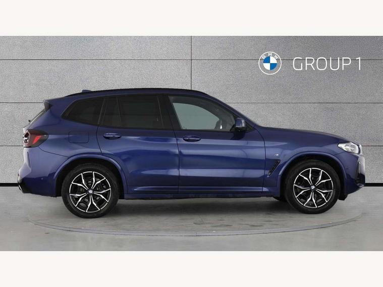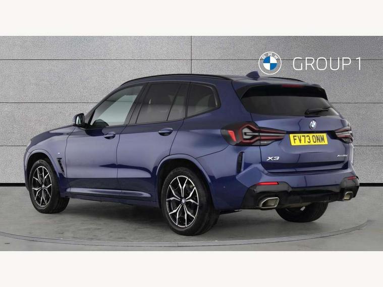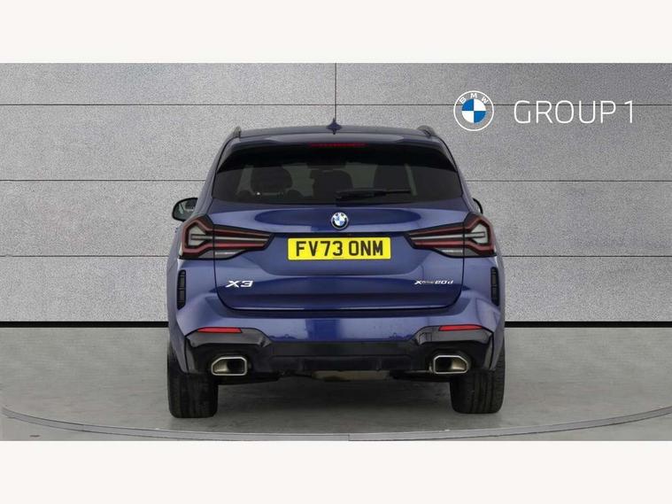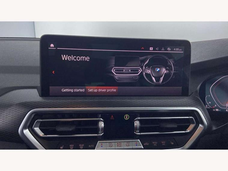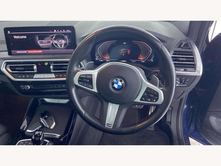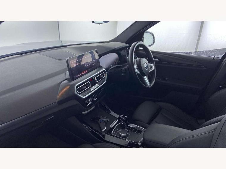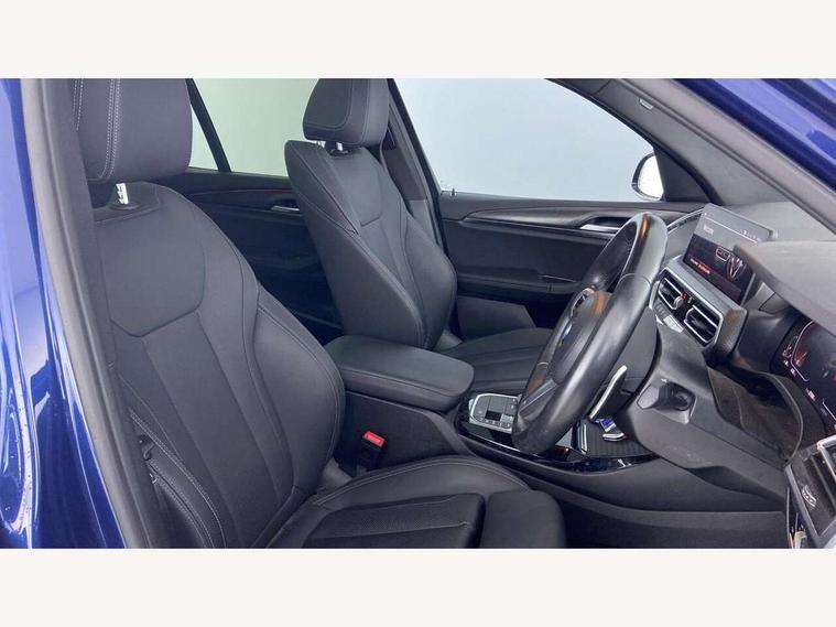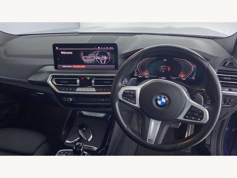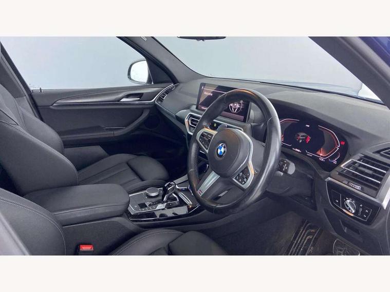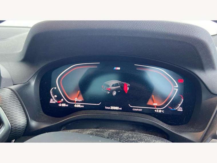 Active Guard, Attentiveness assist, BMW Live Cockpit Professional nav system including 12.3" instrument display + 12.3 high resolution control display, BMW Online services, BMW Teleservices, Brake pad wear indicator in front and rear, Check Control warning system for monitoring of lights and door/luggage compartment open warning, Condition based service - BMW service history, electronic service booklet, integrated owner's handbook, Connected drive services, Electric boot lid, Front/rear Parking distance control, iDrive touch controller with 8 favourite buttons, Instrument cluster with speedometer with mph readout, tachometer, fuel gauge and oil temperature gauge, Lights on warning by audio warning signal when ignition is switched off, Oil sensor for level and grade, warning by check control system, On board computer - average speed+fuel consumption, service interval, clock/date, odometer/trip meter, outside temperature display and ice warning, Optimum shift indicator, Personal Profile - automatic lock when driving away selectable, Run flat indicator, Stop/start system, Variable sports power steering with drive performance control Sport+ mode, Automatic transmission with gearshift paddles, Diesel particulate filter, Incorrect fuelling protection, Larger capacity fuel tank, M sport suspension, Multi-link rear suspension, BMW professional radio/CD/MP3, DAB tuner, Acoustic glazing, Automatic windscreen wipers and automatic headlight, Black finish on B pillars, Body colour door handles, Body colour electric adjust heated aspherical door mirrors, Body colour roof mouldings, Body coloured bumpers, Direction indicator, side repeaters, integrated in exterior mirrors, Dynamic brake lights, Exhaust tailpipes - dual, round, split left and right with chrome finisher, Fingertip control / anti-trap function on electric window, Folding wing mirrors with auto dimming, Follow me home headlights, Front and rear bumper system with replaceable deformation elements, Front and rear electric windows, Gloss chrome tailpipes finishers, Green tinted heat insulating glass, Heated windscreen washer jets, High beam assistant, High gloss black shadow line roof rails, High gloss shadowline exterior trim in decorative moulding side frame/recess cover/guide rail/B, C pillars/mirror frame and triangle with mirror base, High level 3rd brake light incorporating LED Technology, Interior rear view electrochromatic mirror with automatic anti dazzle function, LED tail lights, Lightweight engineering, M aerodynamic bodystyling, M Sport entry door sill strips, Model designation, Rain sensor, Rear side wing doors, Rear wing door, Rear wiper, Shark fin antenna, Side exterior M designation badges, Visible VIN plate, Welcome lighting, Windscreen wipers with adjustable interval, 12V power point in luggage area, 12V power socket in front centre console, 2 x USB Type C ports for charging and data transmission (front centre console) and 2 x USB Type C ports for charging (rear centre console), 3 rear headrests, 3 seat bench in 2nd row, 3 zone automatic air conditioning, 4 lashing points to secure luggage, 40:20:40 split folding rear seat with loading system, Ambient lighting, Anthracite headlining, Automatic interior light when door is opened/ignition switched off or via remote key, Floor mats in velour, Foldable storage floor with compartment, Four grab handles integrated in roof lining, Front and rear bottle holders integrated into door trim storage compartments, Front and rear side armrests integrated into door trim, Front centre armrest with storage compartment, Front footwell lights, Front head restraints, Front passenger seat, Front sports seats, Front/rear courtesy lights with soft on/off dimming, Front/rear reading lights, Heated front seats, Isofix rear child seat preparation, Leather gear knob, Lockable glove compartment, Luggage area underfloor compartment, Luggage compartment lighting, M sport leather steering wheel, Multifunction steering wheel, Parcel shelf removeable and storable under boot floor, Reach and rake adjustable steering column, Rear centre armrest with 2 cupholders, Removable / retractable luggage cover, Slope adjustable rear seats, Storage compartment in rear centre console and front/rear door trims, Sun visors with vanity mirrors and ticket pocket, Toolkit located in luggage compartment, Two front cupholders with removable oddments tray/lid, Connected pro pack - X3, ADB - Automatic Differential Brake, Anti-lock braking system (ABS) with brake assist, Automatic Stability Control (ASC), Battery safety cut-off, BMW emergency call, Brake drying, Brake energy regeneration, Braking pre-tensioning, Child locks on rear doors, Cornering brake control (CBC), Crash Sensor - activation of central locking release, hazard warning light and interior lighting, Deactivation of fuel pump in the event of a crash, Driver and front passenger front and side airbags with passenger deactivation and ITS front and rear head airbags, Driver and front passenger knee airbag, DSC+, Dynamic brake control, Dynamic Traction Control - DTC, Electromechanical parking brake, Hill descent control, Hill start assist, Seatbelt security check for front seats, Side impact protection, Three point seatbelts to all seats with front and outer rear pyrotechnic belt tensioners and seat belt force limiters, Two tone horn, Tyre pressure sensor, Ventilated front and rear disc brakes, Warning triangle and first aid kit, Central locking switch for all doors, fuel filler cap and luggage compartment, Electronic engine immobiliser, Locking wheel nuts, Remote control including two integrated key - one button for open/close all lockable content, windows and separate button for open luggage compartment, Remote control Thatcham category 1 alarm, Start/stop button with Comfort Go keyless engine start and auto Start/stop deactivation button, Low rolling resistance tyres,
