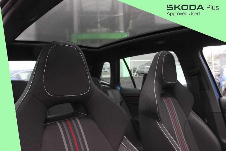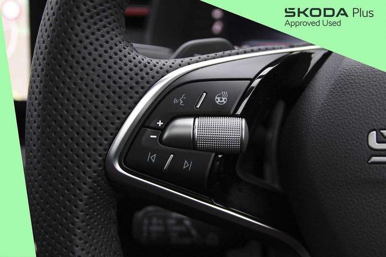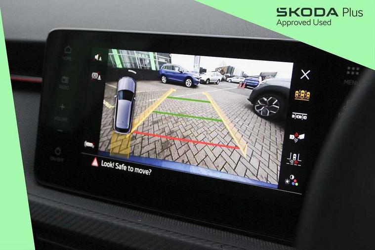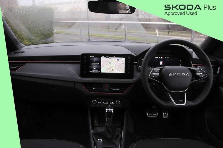 Advanced driver attention and drowsiness monitor, Bluetooth system, E-call, Front assist system, PAS, Rear parking sensors, Rear view camera, Service indicator, Speed limiter, Traffic sign recognition, Virtual cockpit with 10.25" display, Voice control system, Wireless smartlink, 4 USB C ports, 8 Speakers, 9.2" Skoda navigation display, DAB Digital radio, Auto dimming rear view mirror, Automatic headlight control with coming home and leaving home feature, Black door mirrors, Black radiator grille, Black rear diffuser, Black roof spoiler, Body colour bumpers, Body colour door handles, Boot lettering in black, Extended tailgate glass, Fixed panoramic sunroof with black roof rails, Front and rear electric windows, Heated rear window, LED daytime running lights, LED high beam, LED low beam, LED third brake light, Light sensors, Monte carlo plaque, Privacy glass, Rear side wing doors, Rear wiper, Ticket holder inside windscreen, 12V socket in luggage compartment, 3 seat bench in 2nd row, Aluminium pedals, Ambient lighting in white/red, Art leather carbon decor inserts, Art leather carbon door inserts, Black roof lining, Cargo elements, Chrome inner door handles, Driver and passenger sun visors with vanity mirror, Dual zone climate control, Front and rear roof lights, Front centre armrest, Front head restraints, Glove compartment with illumination, Height adjustable driver seat, Height adjustable front passenger seat, Ice scraper, Inner circulation control with pollen filter, ISOFIX on front passenger seat, Isofix preparation for back seats, Leather gearknob and handbrake lever, Manual lumbar support for front seats, Monte Carlo cloth upholstery, Net package and top tether hooks in boot space, Net under rear shelf, Pocket on the back of both front seats include mobile phone pockets, Rake/reach adjustable steering wheel, Reading lights, Rear centre armrests, Red hotstamping, Single front passenger seat, Sports seats, Textile floor mats, Third rear headrest, Top tether for front passenger seat, Umbrella in driver's door, Light and view plus package - Kamiq, 3x3 point rear seatbelts, Airbags - driver and front passenger, Disc brakes, ESP, Extended and predictive pedestrian/cyclist protection, Front passenger airbag deactivation switch, Front side airbags with curtain airbags, Hill hold control, Manual leather parking brake, Manual rear child locks, One tone horn, Seatbelt reminder for driver an co-driver, Traction control, Tyre pressure monitor, Anti-theft alarm system with interior monitoring, backup horn, towing protection and remote central locking with SAFE system, Anti-theft wheel bolts, Electronic engine immobilizer, 18" Ursa black diamond cut alloy wheels,
