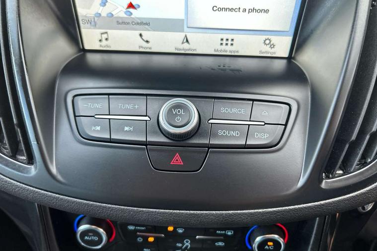 Bluetooth system, EPAS, Rear parking sensor, SYNC Emergency Assistance, Trip computer, Auxiliary socket for external device, Remote audio controls on steering wheel, USB connection, Auto dimming rear view mirror, Automatic headlights, Body colour bumpers, Body colour rear spoiler, Electric folding mirrors, Electrically heated door mirrors, Front scuff plate, Halogen headlights, LED daytime running lights, Power front and rear windows, Quickclear heated windscreen, Rain sensor windscreen wipers, Rear diffuser, Tailgate wash/wipe, Twin exhaust pipes, 6 way manually adjustable passenger seat, 60/40 split/folding rear back and cushion, Auxiliary power socket in luggage area, Centre console with stowage tray/bottle holder/CD stowage/front and rear 12V power point, Cloth/Salerno leather upholstery, Driver seat lumbar adjustment, Driver/passenger front seatback pockets, Dual electronic automatic temperature control, Folding rear centre armrest, Footwell courtesy lights front and rear, Front floor mats, Front head restraints, Front overhead courtesy lights with theatre style dimming and delay, Front/rear reading lights, Isofix system on outer rear seats, Leather gearknob, Leather steering wheel, Memory for drivers seat/door mirrors, Multi-colour ambient interior lighting, Passenger lumbar support, Reach + rake adjustable steering column, Rear floor mats, Rear head restraints, Sports style front seats, Stowage unit in upper instrument panel, Tie down hooks, Tonneau cover, Variable intensity instrument illumination, 3 point seatbelts on all 3 rear seats, ABS/EBD, Driver and passenger airbags, Driver and passenger side airbags, Electric traction assist system, Electronic parking brake, ESP+EBA, Front and rear curtain airbags, Hill start assist, Intelligent Protection System (IPS), Tyre pressure monitoring system, Immobiliser, Keyless entry, Keyless Start, Locking wheel nuts, Remote central locking, Thatcham Cat.1 alarm, Mini steel spare wheel,