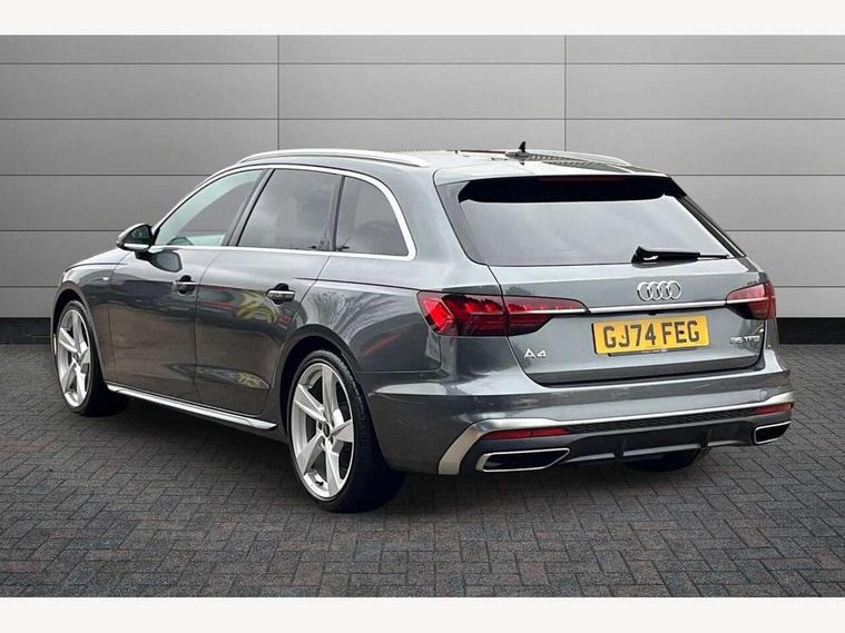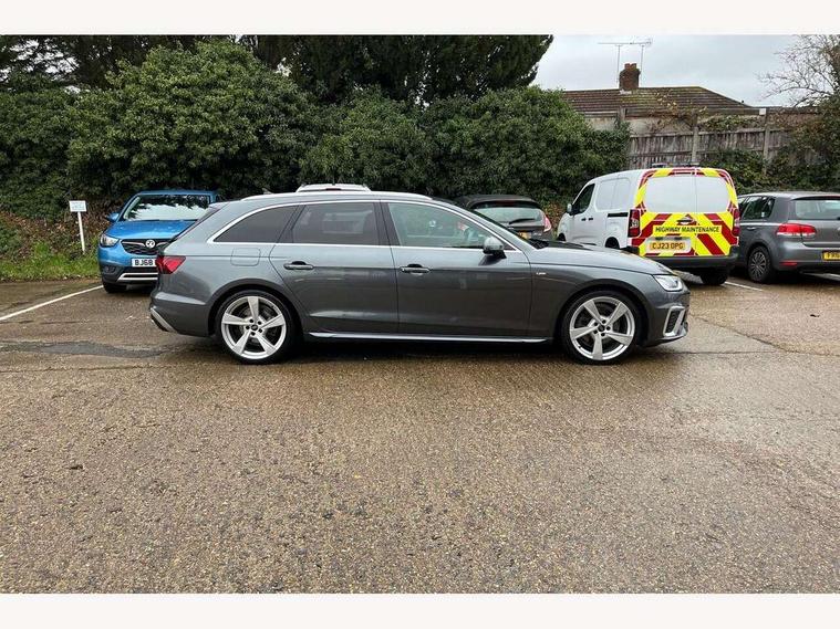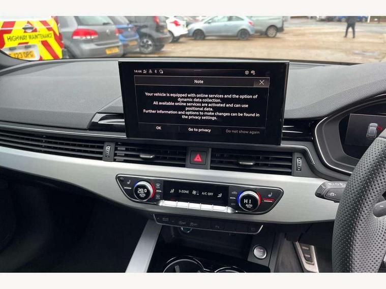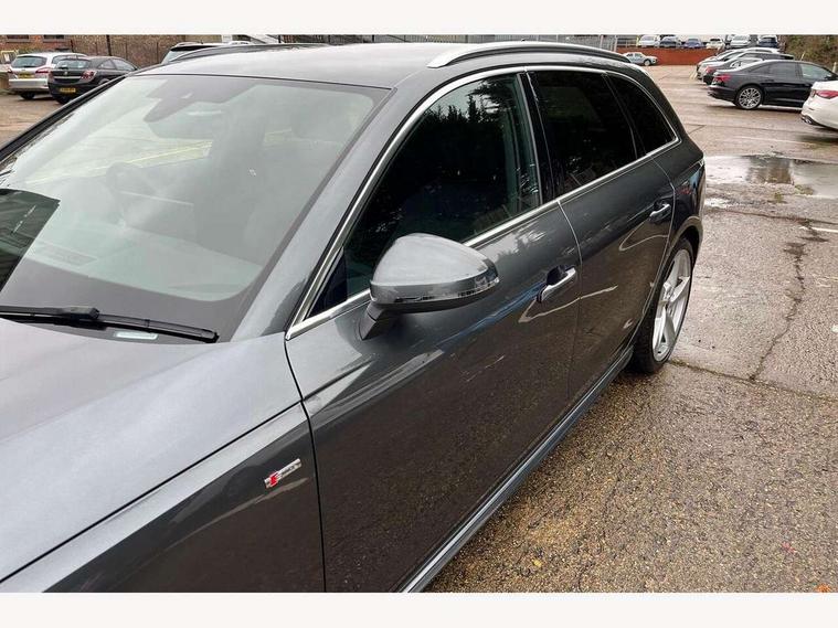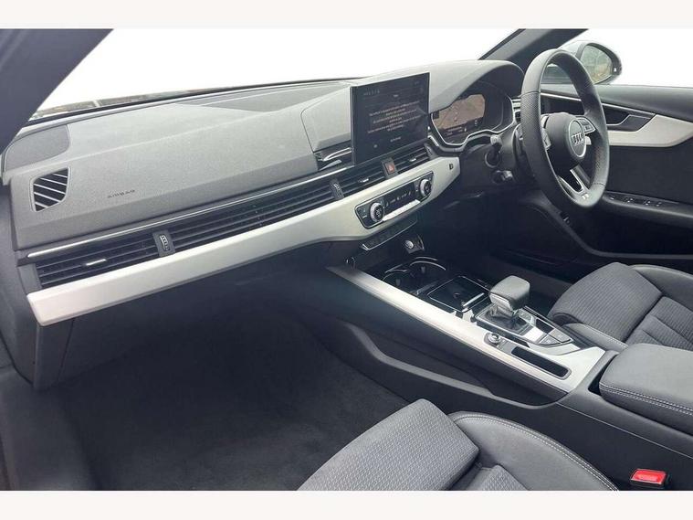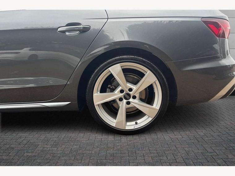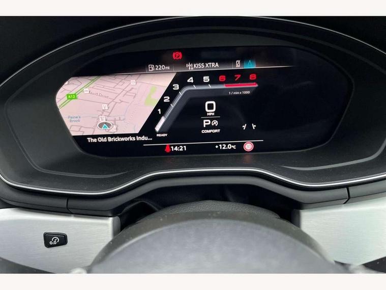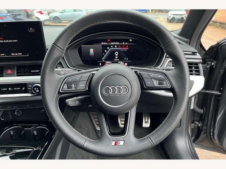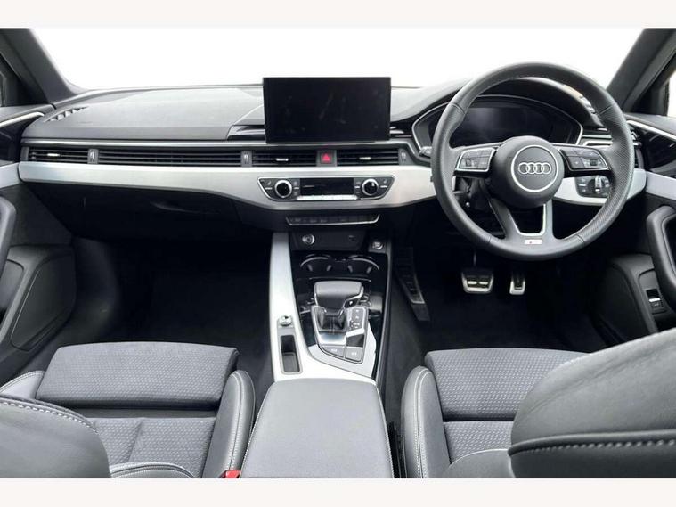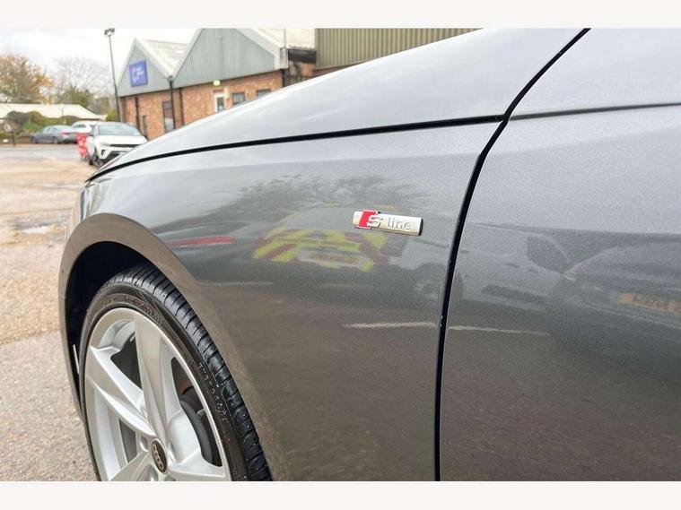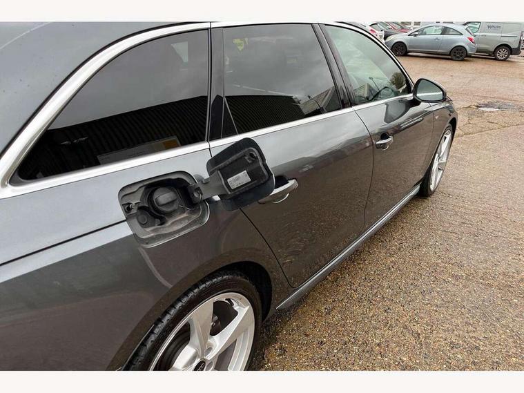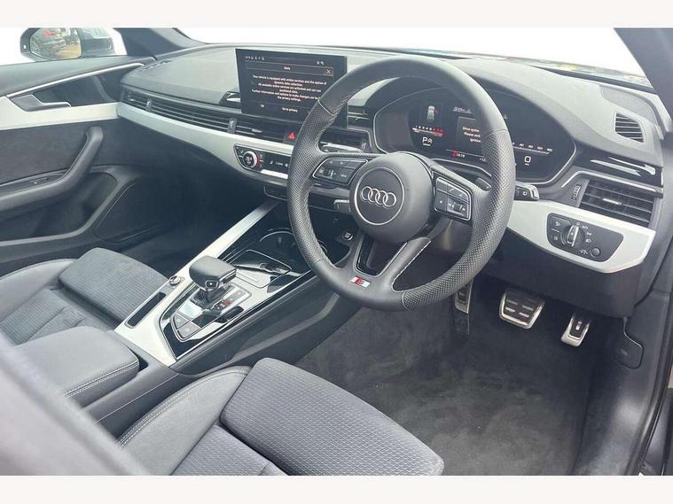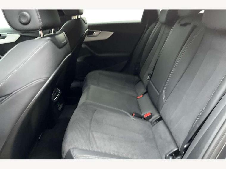 Audi connect safety and service (e-call), Audi drive select, Audi smartphone interface, Audi virtual cockpit, Automatic start-stop system with coasting functionality and efficiency programme, Bluetooth interface, Camera based traffic sign recognition, Electromechanical power steering, Email, calendar and text messages displayed via MMI, Front and rear parking sensors, Lane departure warning, MMI Navigation plus with MMI touch includes 10.1" high resolution colour MMI display, 3D map, Power operated tailgate, Rear view camera, Voice control system, 54 litre fuel tank, Sports suspension lowered by 23mm, 2 USB charging ports, 8 passive loudspeakers, DAB digital radio reception, Aluminium roof rails, Auto dimming rear view mirror, Body colour door handles, Body colour front spoiler lip, Body colour side sill trim, Body coloured door mirrors, Electric adjustable/heated/folding door mirrors with auto dimming, Grained matt black side air inlets with matt aluminium silver inlay, High beam assistant, Honeycomb structure radiator grille in grained matt black, LED headlights with LED rear lights + dynamic rear indicators + headlight adjustment and high beam, turning light + LED daytime running lights, LED third brake light, Matt aluminium silver tailpipe trim, Privacy glass, Rain and light sensors, Rear side wing doors, Rear wiper, S Line badges on the front wings, S line front and rear bumpers with side skirts, S Line rear diffuser in matt anthracite black with trim strip in matt aluminium silver, S Line roof edge spoiler, Variable intermittent front wash/wipe, Windscreen with acoustic glazing, 3 spoke high multi-function sports leather steering wheel grips in perforated leather with S badging including paddle shift, 4 way electric lumbar support for driver and front passenger, 40/20/40 split folding 3 rear seat bench in 3 parts with rear centre armrest, Black carpets, Black cloth headlining, Black perforated leather gearknob, Contrast stitching on seats, steering wheel and gear lever gaiter, Deluxe 3 zone electronic climate control, Electric load area cover, Front and rear head restraints, Front centre armrest, Heated front seats, Illuminated door sill trims with S logo, ISOFIX child seat mounting and top tether, Manual seat adjustment, Single front passenger seat, Stainless steel pedals and foot rest, High gloss package - A4, LED Interior light pack - A4/S4, 3 rear seatbelts, 6 airbags - Driver, front passenger, curtain and side windows, Attention and drowsiness assist, Electronic Stabilisation Control (ESC) including ABS, ASR and EDL, Hill hold assist, Multi collision brake assist, Pop-up bonnet for pedestrian protection, Pre sense city, Rear door child safety locks, Seatbelt monitoring, Warning triangle and first aid kit, Anti theft alarm, Anti theft wheel bolts, Central locking, Keyless Go, Matt brushed aluminium inlays, Tool kit, Tyre repair kit,