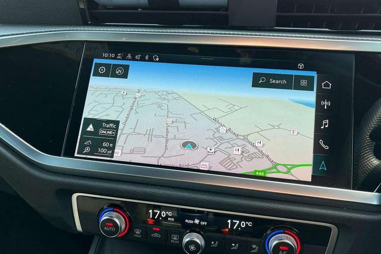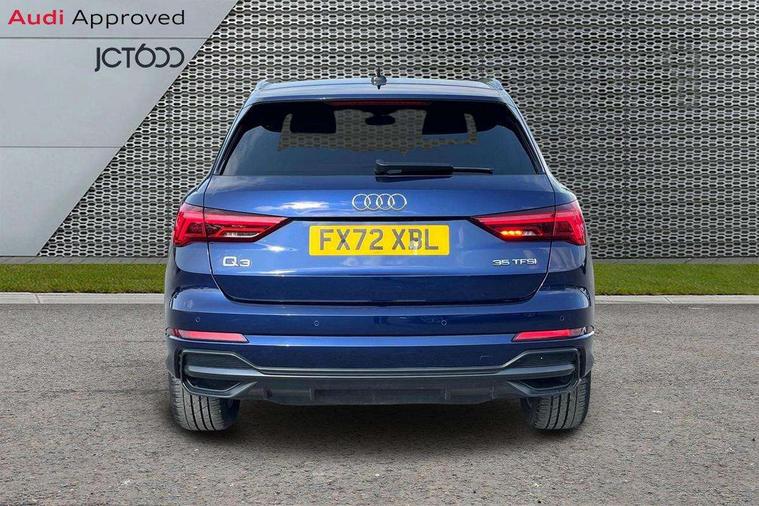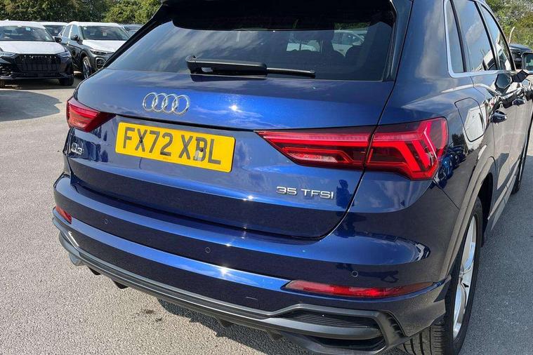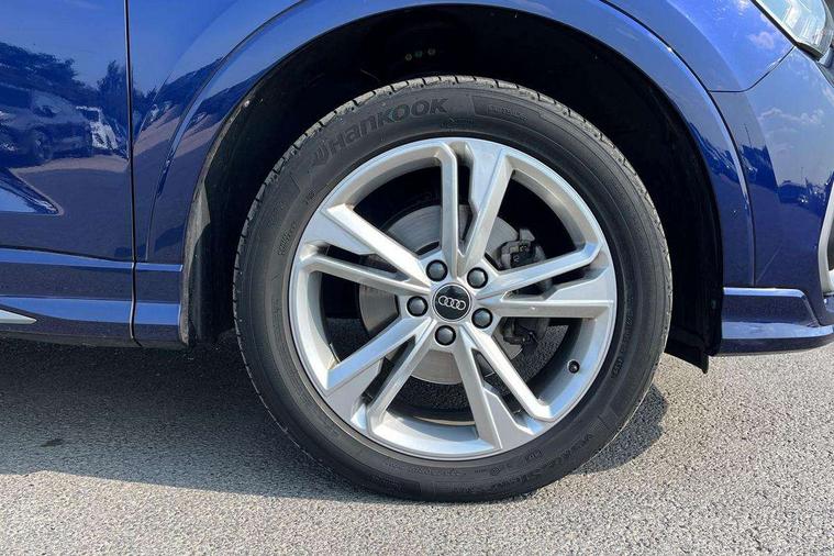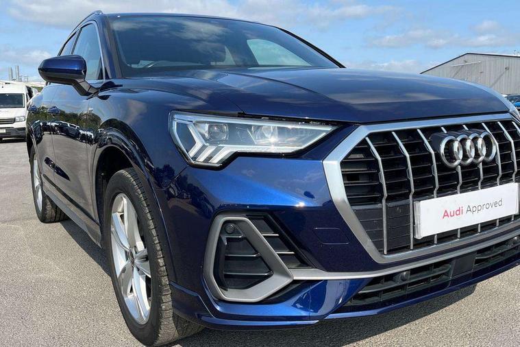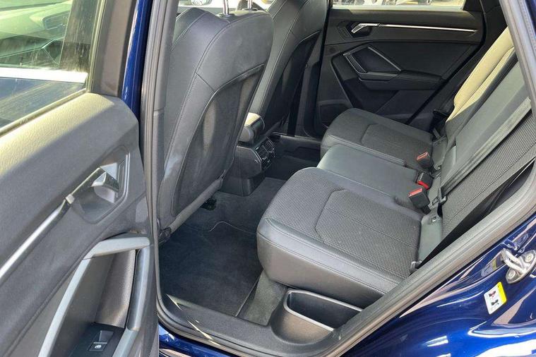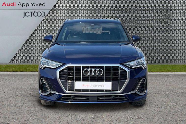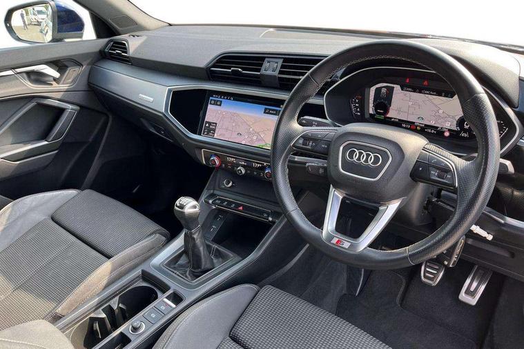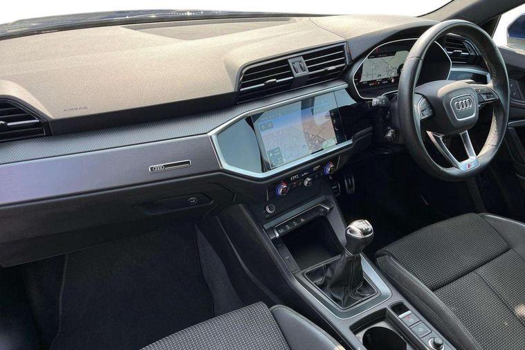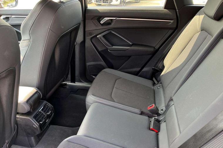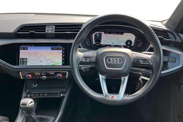 Amazon alexa Integration, Audi drive select, Audi lane departure warning, Audi smartphone interface includes wireless Apple carplay/Android Auto, Audi Virtual Cockpit - 10.25" display, Bluetooth interface, Camera based traffic sign recognition, Cruise control + speed limiter, Legal emergency call, MMI Navigation Plus with high resolution 10.1 inch touchscreen colour display, Power operated tailgate, Progressive steering, Rear parking sensors, Service interval indicator, Start stop system with recuperation, Voice control system with natural language interaction, Sports suspension, 2 USB-C ports with charge and data functions, 6 passive loudspeakers, DAB digital radio module, Acoustic windscreen, Aluminium roof rails, Aluminium window trim, Auto dimming frameless rear view mirror, Body colour front spoiler blade, Body coloured bumpers, Electrically folding, adjustable and heated door mirrors with integrated LED side indicators and kerb view function for passenger side, Front and rear electric windows, Front fog lights, Front side air inlets in matt platinum grey, Grille vertical bars in aluminium silver/Matt, High gloss black finish B and C pillars, LED headlights with LED daytime running lights, LED rear lights, LED third brake light, Privacy glass dark tinted rear and rear-side windows (from B-pillar backwards), Rain and light sensors, Rear diffuser grille in grained matt black, Rear diffuser strip in matt titanium black, Rear side wing doors, Rear wiper, S line badges on front wings, S Line front and rear bumpers, Side skirt insert in matt Platinium grey, Titanium black radiator grille, Variable front intermittent wipers, 12V socket in rear centre console, 3 seat bench in 2nd row, 40:20:40 folding with manual adjustment for 60:40 forwards/backwards position and backrest angle, Adjustable rear seat bench/backrest with centre armrest and cupholder, Black cloth headlining, Dual zone electronic climate control, Front and rear black floor mats with contrast stitching in rock grey, Front and rear headrests, Front and rear roof module including reading lights, Front centre armrest, Glove compartment lighting, Height and reach adjustable steering wheel, Illuminated door sill trims with S logo, ISOFIX child seat mounting for front passenger with airbag deactivation and outer rear seat including top tether attachment point for outer rear seats, Luggage compartment light, Manual front seats with height adjustment, Perforated leather gearknob, Single front passenger seat, Stainless steel luggage compartment sill finisher, Stainless steel pedals, Non smoking pack - Q3, 3x3 point rear seatbelts, 6 airbags - Driver, front passenger, curtain and side windows, Audi pre-sense front with pedestrain and cyclist recognition, Electromechanical parking brake, Electronic stabilisation control including ABS, ASR and EDL, Front seatbelt reminder, Hill descent control, Hill hold assist, Manual child lock in rear doors, Pre sense basic, Seatbelt monitoring, Tyre pressure warning, Warning triangle and first aid kit, Anti theft alarm, Anti theft wheel bolts, Immobiliser, Remote central locking, Dark matt brushed aluminium inlay, Detail dashboard around MMI touch colour display in glass look, black with surround in aluminium look, Leatherette door armrest,