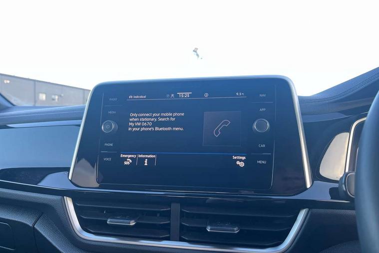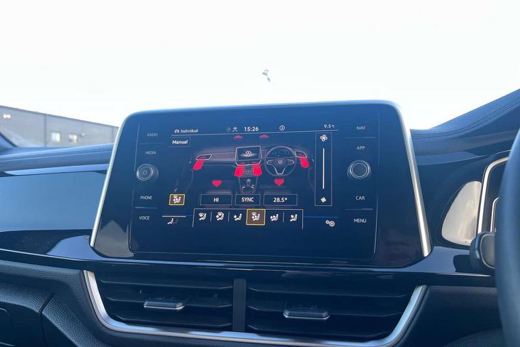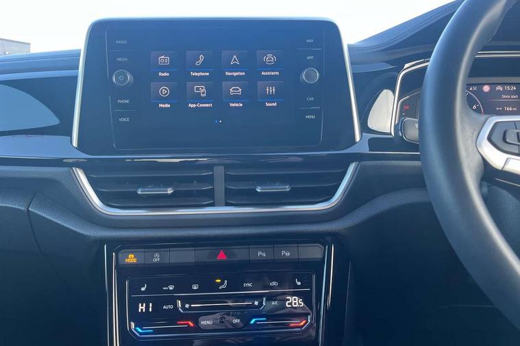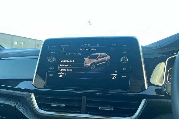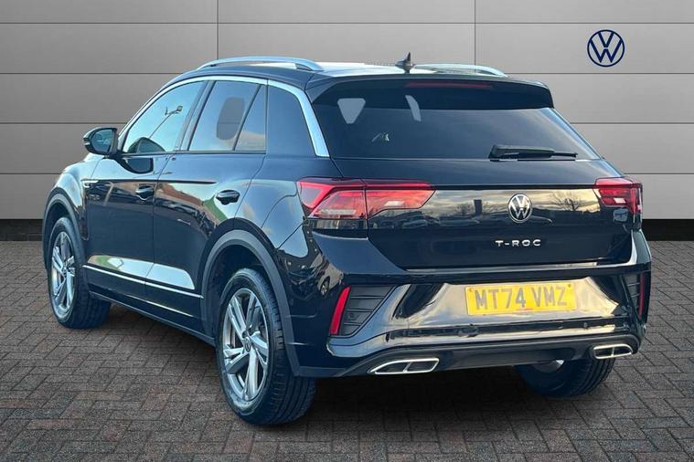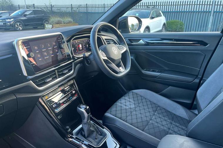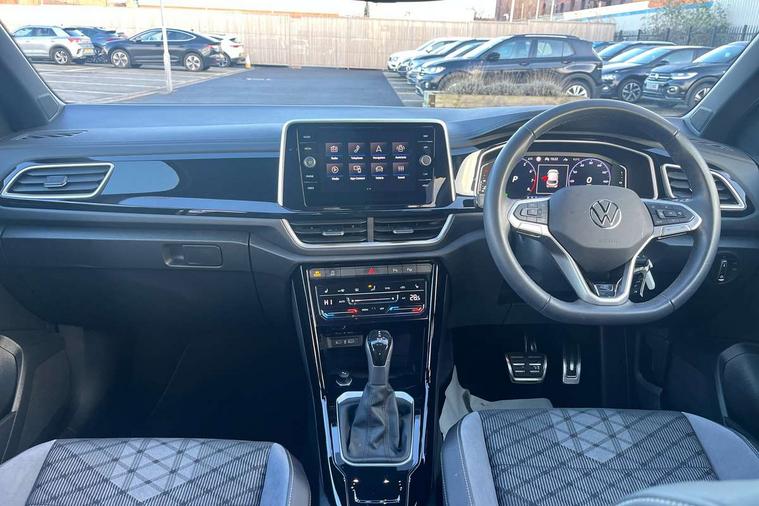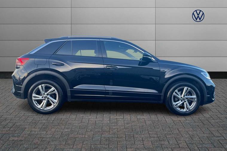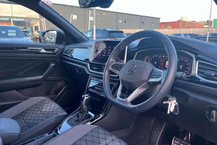 10.25" Digital cockpit pro, Advanced driver attention and drowsiness monitor, Emergency call service, Lane keeping system Lane Assist, Mobile phone interface, Modified key software - reduce switch off time for key status change to Long no motion, Online services, Park assist including front and rear parking sensors, Service interval indicator, Tailgate/trunk lid release from outside, Think blue trainer driver tips and journey analysis, Warning sound and light for front seatbelts unfastened, Wireless app connect, Wireless Smartphone charger, Battery regeneration during braking, Start/stop function with battery regeneration, DAB Digital radio, Diversity antenna for FM reception, Front and rear 6 speakers, Music playback - MP3, WMA and AAC files, Premium USB cable in choice of either Apple or Android smartphone compatibility, SD card slot, Simultaneous pairing of 2 compatible mobile devices, Title and cover art display, We Connect and We Connect Plus functionality, Auto dimming interior rear view mirror, Automatic hazard lights activation under emergency braking, Automatic headlight control with LED separate daytime running lights with coming/leaving home function, Electrically adjustable and heated door mirrors, Extended roof spoiler, Exterior mirrors aspherical on driver side, convex on front passenger side, External USB type C socket and charging sockets, Front windscreen wiper with intermittent wipe and 4 position delay, Heated rear window, LED 3rd brake light, LED rear combination lamps, LED rear number plate lights, Power windows with comfort operation and circuit breaker, R-Line design body coloured bumpers, Rain sensor, Rear exhaust tailpipe, Rear fog light on one side and reversing lights on both sides, Rear side wing doors, Rear wash/wipe with intermittent wipe setting, Remote electrically foldable door mirrors, puddle lights and reverse activated passenger's door mirror, 12V power socket in centre console, 3 rear head restraints, 3 seat bench in 2nd row, 4 load lashing points in luggage compartment, Air care climatronic air conditoning system with active combination filter and 2-zone temperature control, Black roof lining, Chrome plated radiator grille inserts, air vent surrounds and light switch surrounds, Door and side trim panel with leatherette insert, Front + rear carpet mats, Front centre armrest, Front cupholders x 2, Front footwell illumination, Front reading light, Front scuff plates with R Line logo, Front seat back storage pockets, Glove compartment door with light, Instrument lighting, white adjustable panel illumination, Interior ambient lighting and surround lighting, Interior light delay, Isofix child seat preparation, Leather gearshift handle, Load-through provision with cup holder when folded down ('Unsplit rear seat bench, split folding backrest, with centre armrest), Luggage compartment lighting, Single front passenger seat, Stainless steel pedals, Storage compartment in left and right luggage area, Storage compartment in rear doors, Storage compartments in driver and front passenger doors, Sunvisors with illuminated vanity mirrors, Variable boot floor, height adjustable and removable, Driver assistance pack without proactive passenger protection - T-Roc, 3 point height adj front seatbelts + pretensioners, 3 point seatbelts in outer rear with ECE label, ABS, Child locks on rear doors, City emergency braking and pedestrian monitoring, Driver and front passenger airbag with front passenger airbag deactivation, Driver and front passenger safety-optimised head restraints, Drivers seatbelt reminder, Electronic parking brake, Electronic Stability Control (ESC) inc EDL (Electronic Differential Lock) and ASR (Traction Control), Front and rear passengers curtain airbag system including front side airbags, Hill start assist, Predictive pedestrian protection, Rear disc brakes, Two tone horn, Tyre pressure loss indicator, Volkswagen roadside assistance, Trims for alloy wheels,