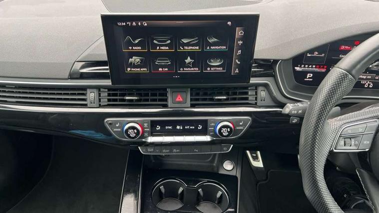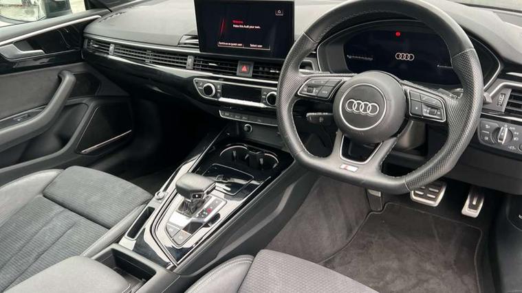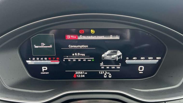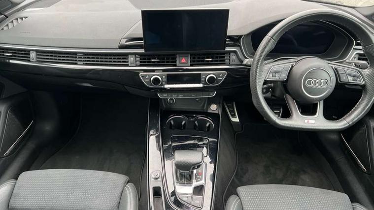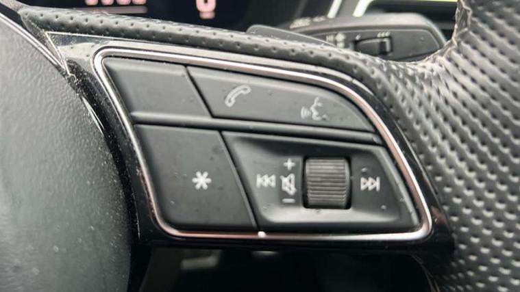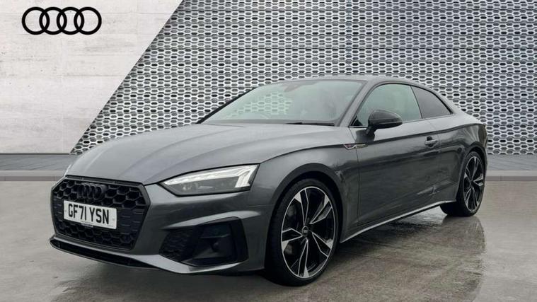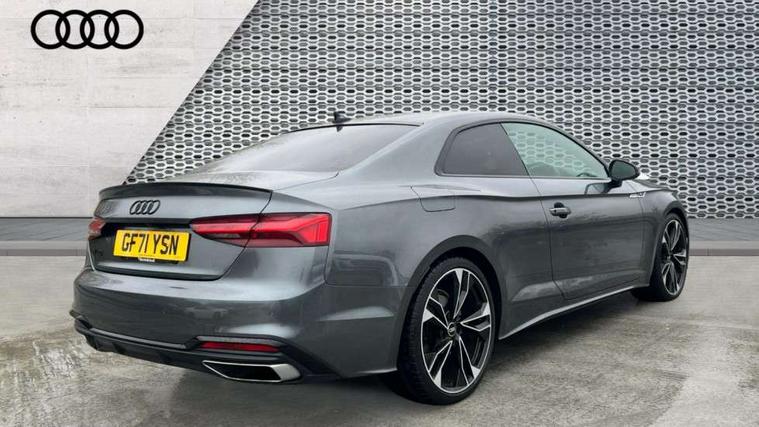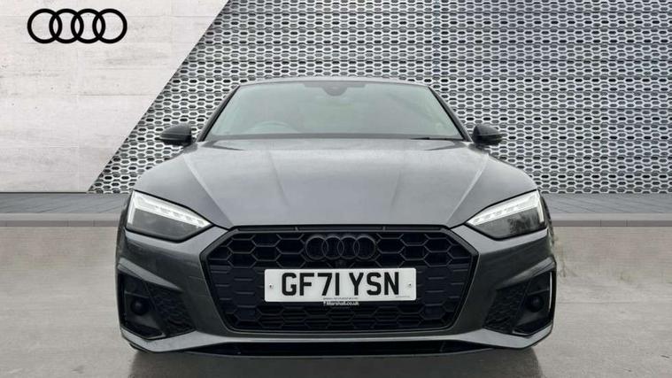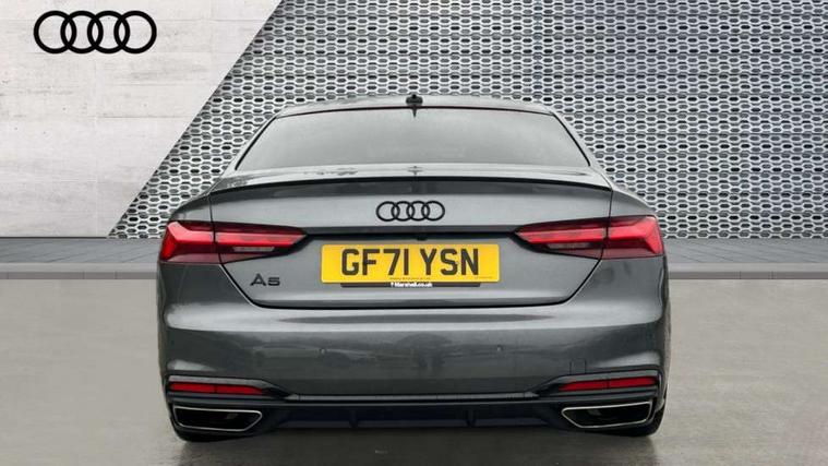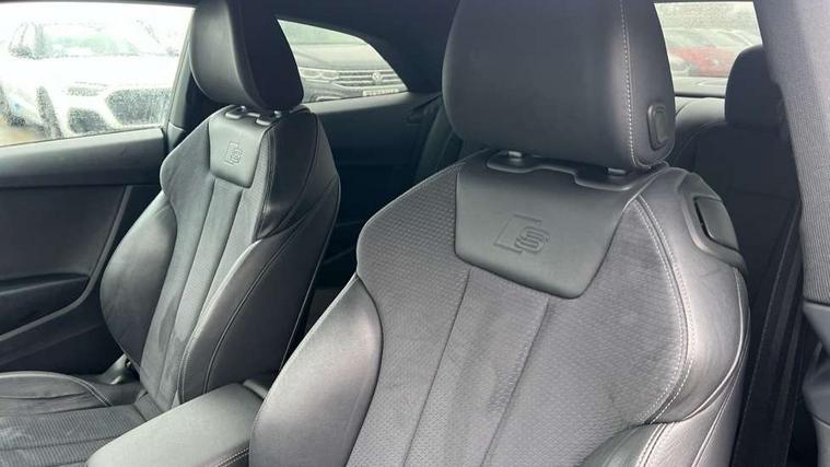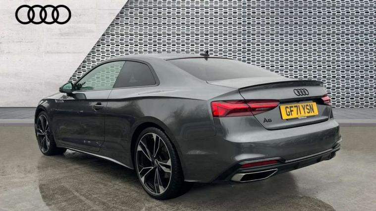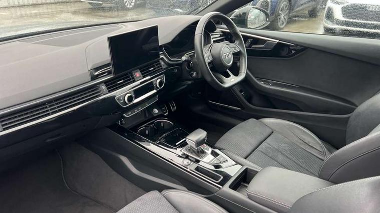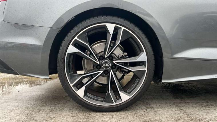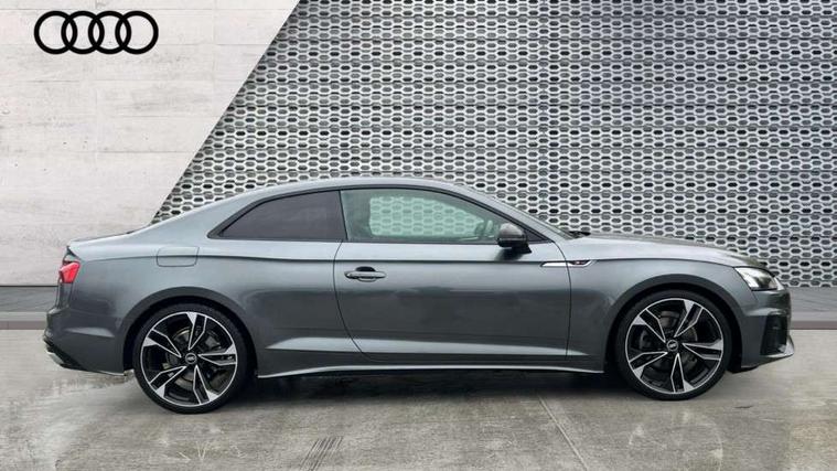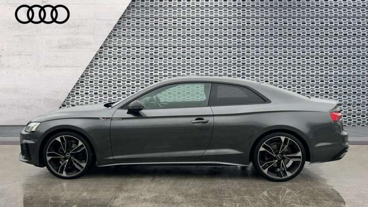 Piano black finish inlay, Black styling pack - A5 Coupe/Sportback, LED interior light pack - A5/RS5, 20" 5 twin spoke polygon design alloy wheels in gloss anthracite black and gloss turned finish, Tyre repair kit, Anti theft alarm system, Anti theft wheel bolts, Immobiliser, Keyless Go, Remote central locking, 8 passive loudspeakers, CD player, DAB digital radio reception, Two additional USB ports for rear passenger in rear centre console, Two SDXC card slots, 2 x 3-point rear seat belts, 6 airbags - Driver, front passenger, curtain and side airbags, Electromechanical parking brake, Electronic Stabilisation Control (ESC) including ABS, ASR and EDL, Front passenger airbag deactivation, Height adjustable front seatbelts, Hill hold assist, Multi collision brake assist, Pop-up bonnet for pedestrian protection, Pre sense city, Seatbelt monitoring, Tyre pressure warning, Variable restraint system, Warning triangle and first aid kit, Audi matrix LED headlights with LED rear lights + dynamic front and rear indicators, Auto dimming rear view mirror, Black audi rings decal above rear sills, Black door mirror housings, Body colour door handles, Body colour front spoiler lip, Body colour side sill trim, Electric adjustable heated door mirrors, Electric folding door mirrors, Electric front windows, Front fog lights, Honeycomb structure radiator grille in grained matt black, LED daytime running lights, Matt aluminium silver tailpipe trim, Privacy glass, Rain and light sensors, Rear diffuser in matt titanium black with trim strip in matt aluminium silver, S model rear spoiler in black, Side air inlets in grained matt black with matt aluminium silver inlay, Sport front and rear bumpers with side skirts, Windscreen with acoustic glazing, 3 Spoke flat bottom high multi-function leather steering wheels with shift paddles, 4 way electric lumbar support for driver and front passenger, 40/20/40 split folding 2 seater rear seat bench with rear centre armrest, Adjustable steering column, Black cloth headlining, Black perforated leather gearknob, Contrast stitching on seats, steering wheel and gear lever gaiter, Deluxe 3 zone electronic climate control, Front centre armrest, Front head restraints, Front/rear floor mats, Heated front seats, Illuminated door sill trim with S logo, ISOFIX child seat mounting and top tether, Luggage compartment mat, Manual seat adjustment, Rear headrests, Stainless steel pedals, Sunvisors with vanity mirrors, Tool kit, Audi connect safety and service (e-call), Audi connect with Amazon Alexa Integration, Audi drive select (Auto, Comfort, Dynamic and Individual), Audi parking system plus with front and rear sensors, Audi smartphone interface, Audi virtual cockpit - 12.3" full colour digital instrument cluster, vehicle/engine speed, 3D navi map, Radio/media information+Driver assistance systems, Automatic start-stop system with coasting functionality and efficiency programme, Bluetooth interface, Electric boot lid release, Electro-mechanical power steering, Email, calendar and text messages displayed via MMI, MMI nav+ with MMI touch - 10.1" high resolution MMI display, touch sensitive, 3D map, route/country info, dynamic route guide, personal route assist, Rear view camera, Service interval indicator, Voice control system, Sports suspension lowered by 23mm,